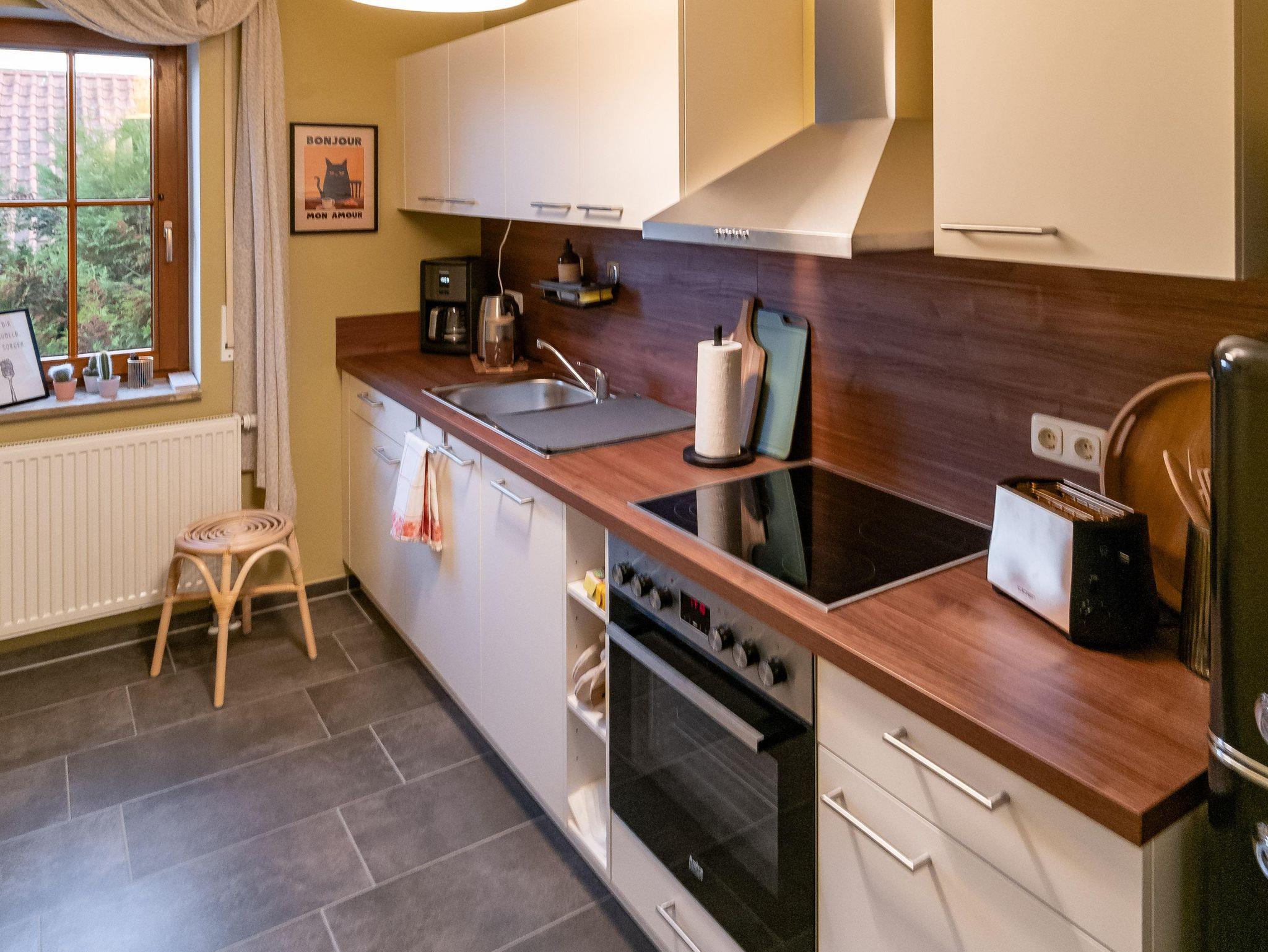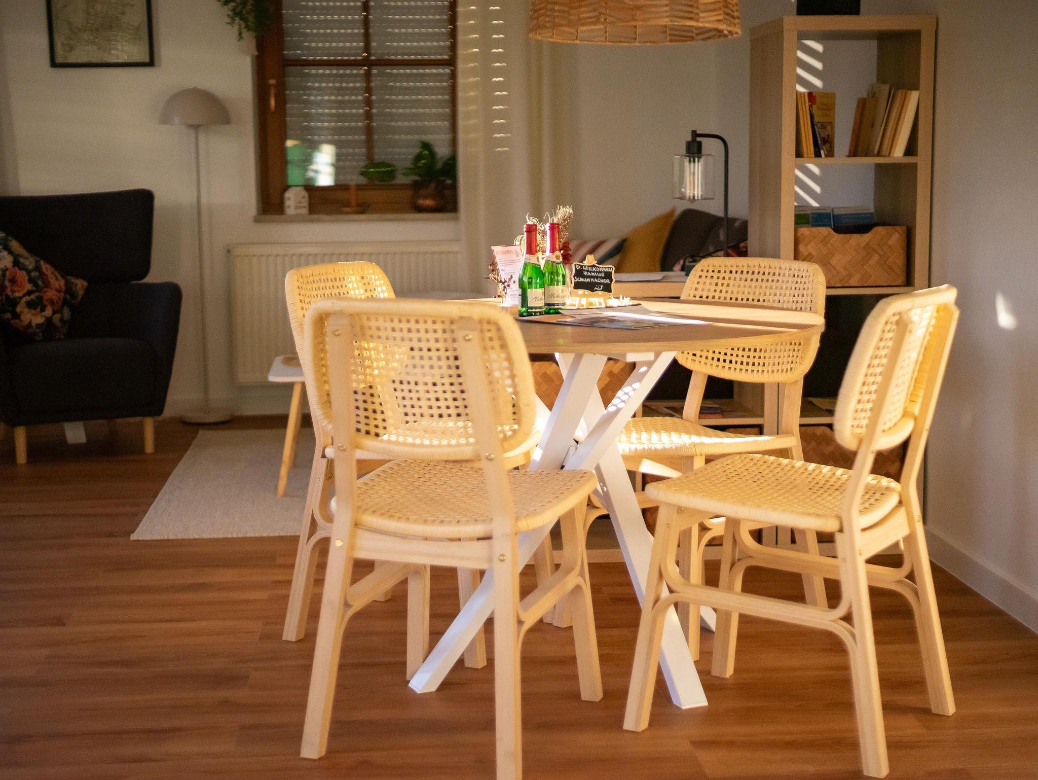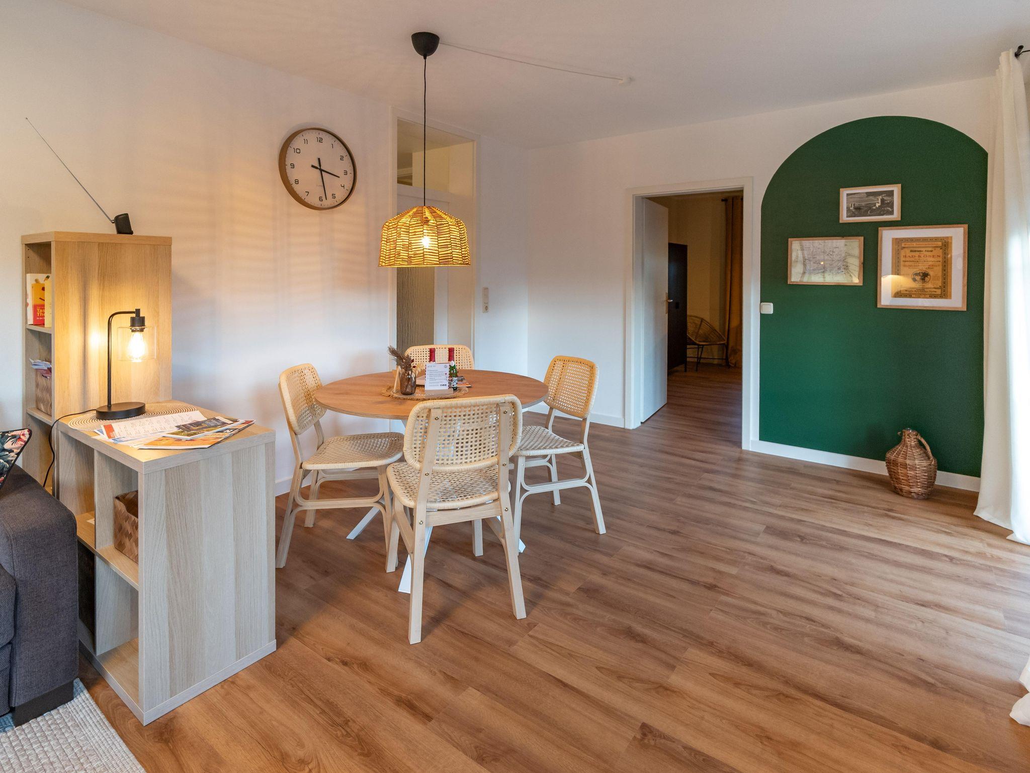 Geräumige, modern ausgestattete Fewo für 2 Personen in ruhiger Wohngegend im Saale-Unstrut Weinanbaugebiet. Großzügiges lichtdurchflutetes Wohnzimmer, gemütliches Schlafzimmer, komplett eingerichtete Küche, großer Flur und Bad mit Dusche und WC, Balkon, WLAN + TV (Telekom-Magenta) und Carportstellplatz. Abstellmöglichkeit für Fahrräder im abschließbaren Fahrradcontainer direkt hinterm Haus. Die Endreiningung ist im Preis inkludiert. Einkaufsmöglichkeiten (Edeka ca. 500m), Stadtkern, Kurkliniken, Gradierwerk und Wanderwege sind fußläufig erreichbar. Zum Saale-Rad-Wanderweg bzw. Startpunkt der Saale-Weinmeile sind es ca. 1000 m.