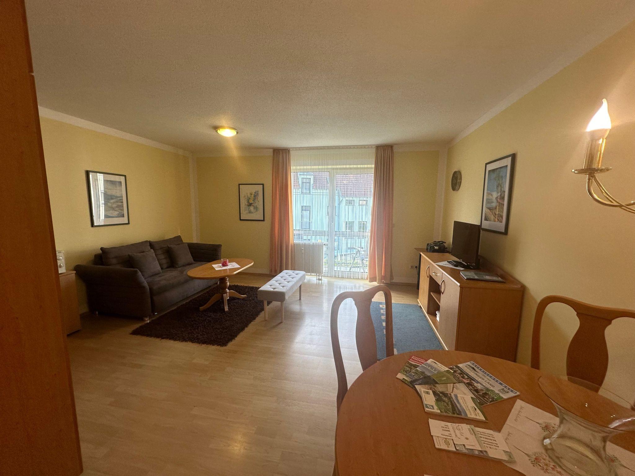 Well-kept flat in an apartment complex - close to the centre and yet in the countryside, idyllically situated on a romantic bend in the river. 2-room flat for 1-2 persons with balcony (one on the rainy side, one on the inside) or terrace. Our highlight: Daily 3 hours free entry to the complete AQACUR wellness and bathing world 200 metres from the flats, including giant tyre slide (departure day is not included, in March and September there are revision dates, the AQACUR is then closed for 5 days). Our service: underground car park with bicycle storage, washing machine and tumble dryer for a fee, breakfast and half-board can be booked within a 5-minute walk, pets welcome for a fee, free cot and high chair on request, free use of bus and train, WiFi The flat has a separate bedroom, a bathroom and a living room with a fully equipped kitchen