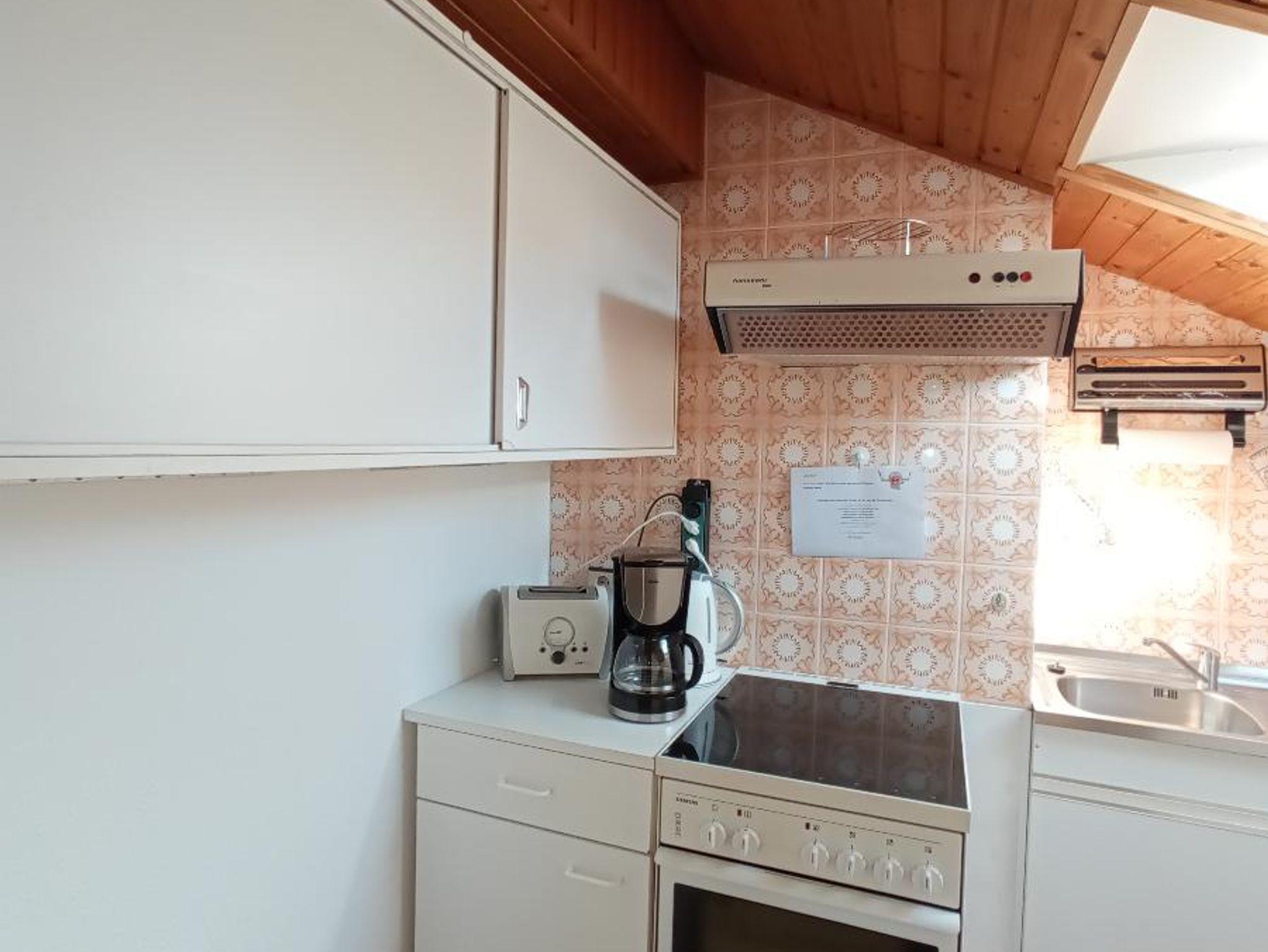 Küche: 4-Platten-E-Herd mit Backrohr, Kühlschrank,