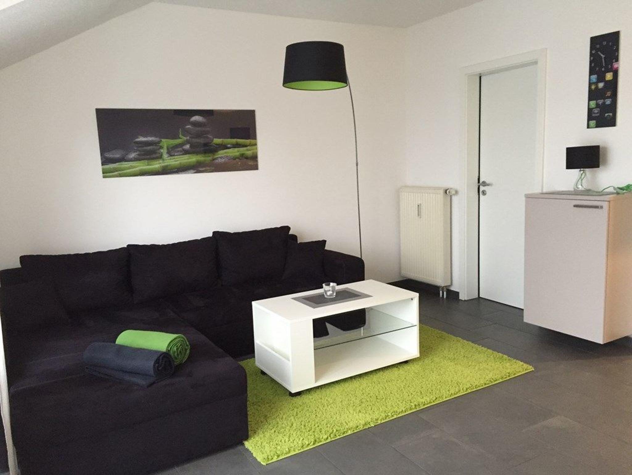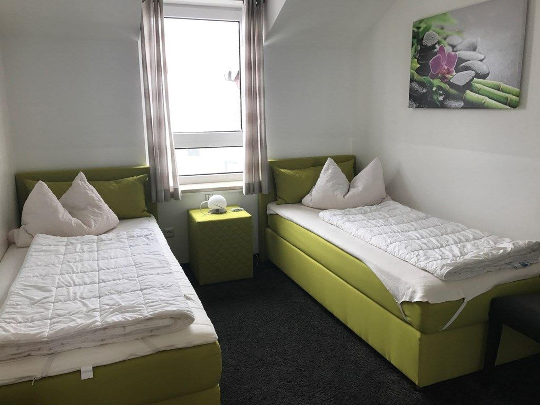 Komfortables Wohlfühlappartement grün-schwarz ausgestattet mit zwei sep. Schlafräumen mit jeweils zwei Boxspringbetten, neue Küche mit Spülmaschine und neu ausgestattetes Badezimmer, Wohnküche mit großzügigem Sofa und kleiner Essecke, Sat-TV und Balkon Richtung Regenseite, freier Eintritt für 2 Personen in die Bade- und Saunawelt AQACUR, ca. 3-4 Gehminuten entfernt, die 3. und 4. Person erhalten mit der Gästekarte Nachlass auf den Eintritt ins AQACUR