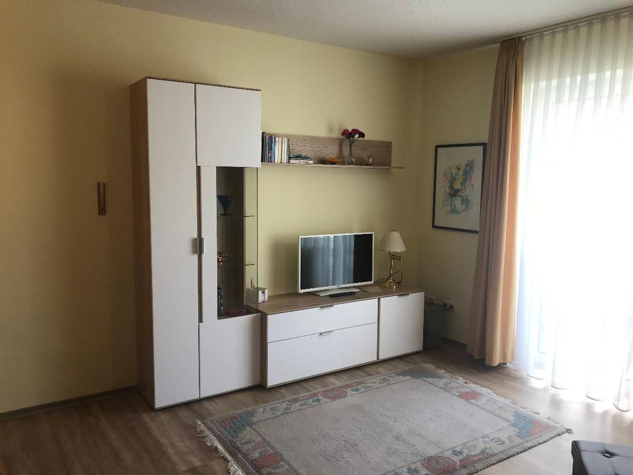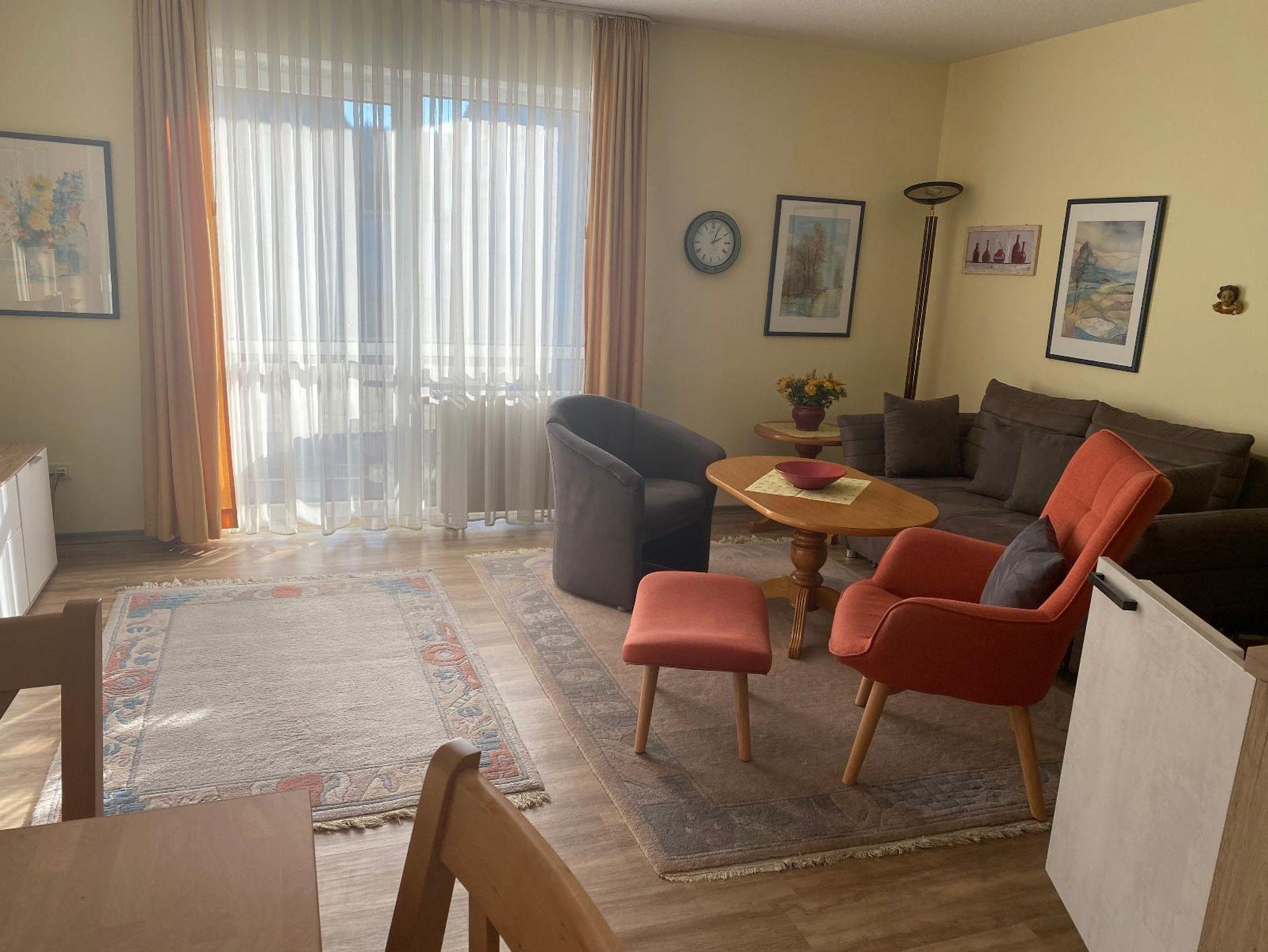 großzügigem Sofa und kleiner Essecke, Sat-TV und Balkon Richtung