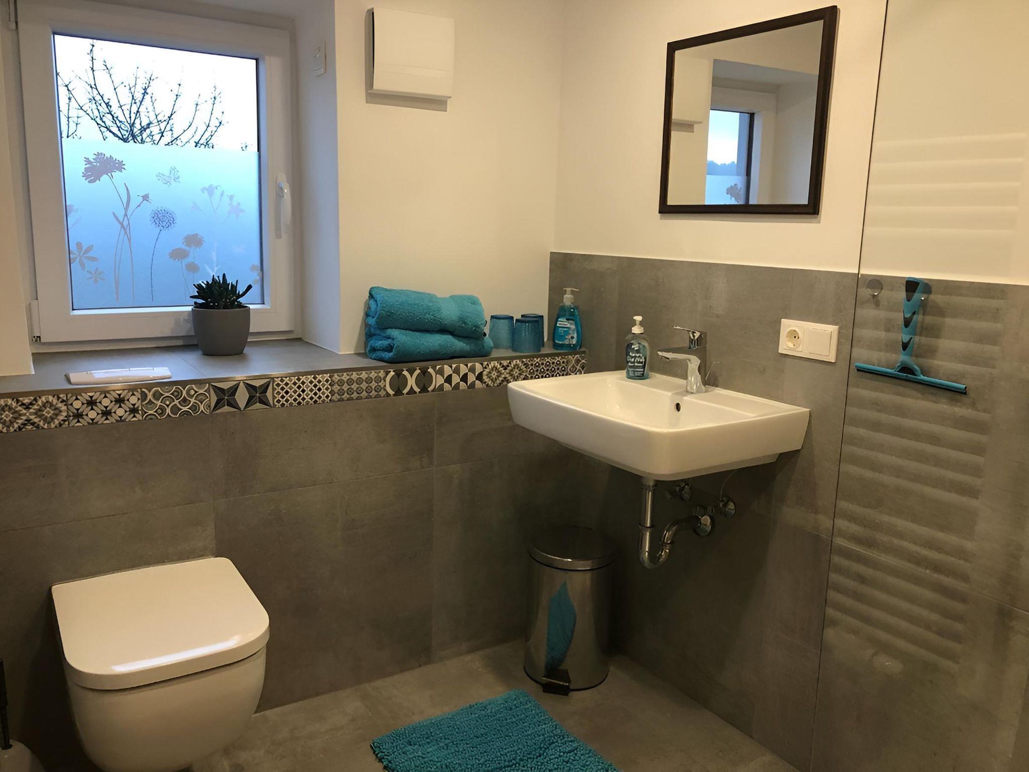 Zwei voll ausgestattete Badezimmern mit Dusche/WC sowie ein zusätzliches WC ermöglichen einen entspannten Tagesablauf ohne Wartezeiten.