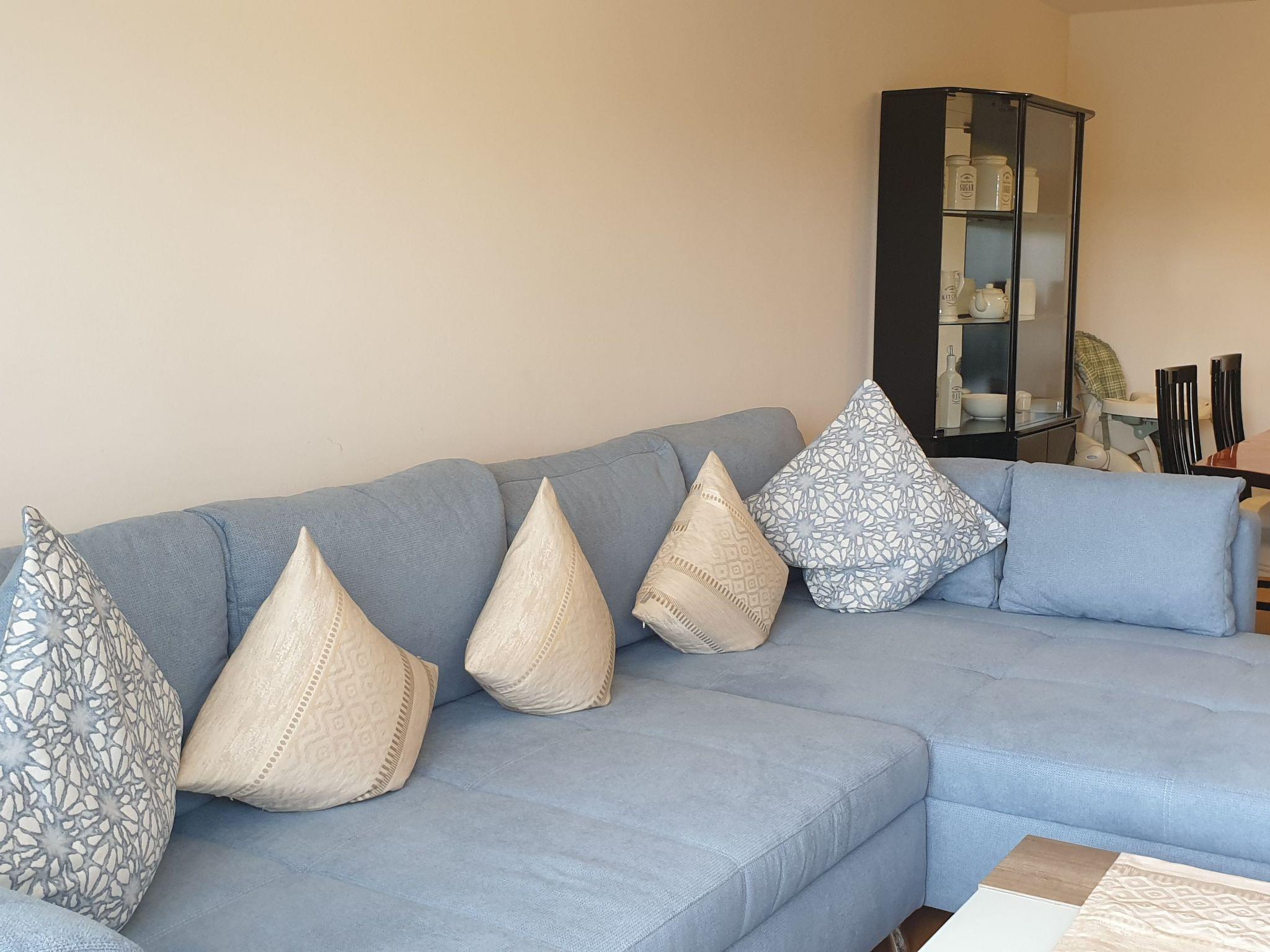 Inside, our 71 m² apartment is thoughtfully furnished to ensure your stay is as comfortable as possible. Suitable for up to three guests or a family with two children, the living quarters comprise a bedroom with a cozy double bed and a mirrored wardrobe closet for all your storage needs. Additional sleeping arrangements can be made with a sofa bed and foldable bed in the welcoming living room. The living space is paired with a modern dining area, making it ideal for meals and family time. Our separate, fully-equipped kitchen comes with a stove, oven, refrigerator, coffee machine, microwave, and dishwasher, catering to all your culinary needs. The bathroom adds to the comfort with its shower, raised toilet, and the convenience of a washing machine and dryer.
