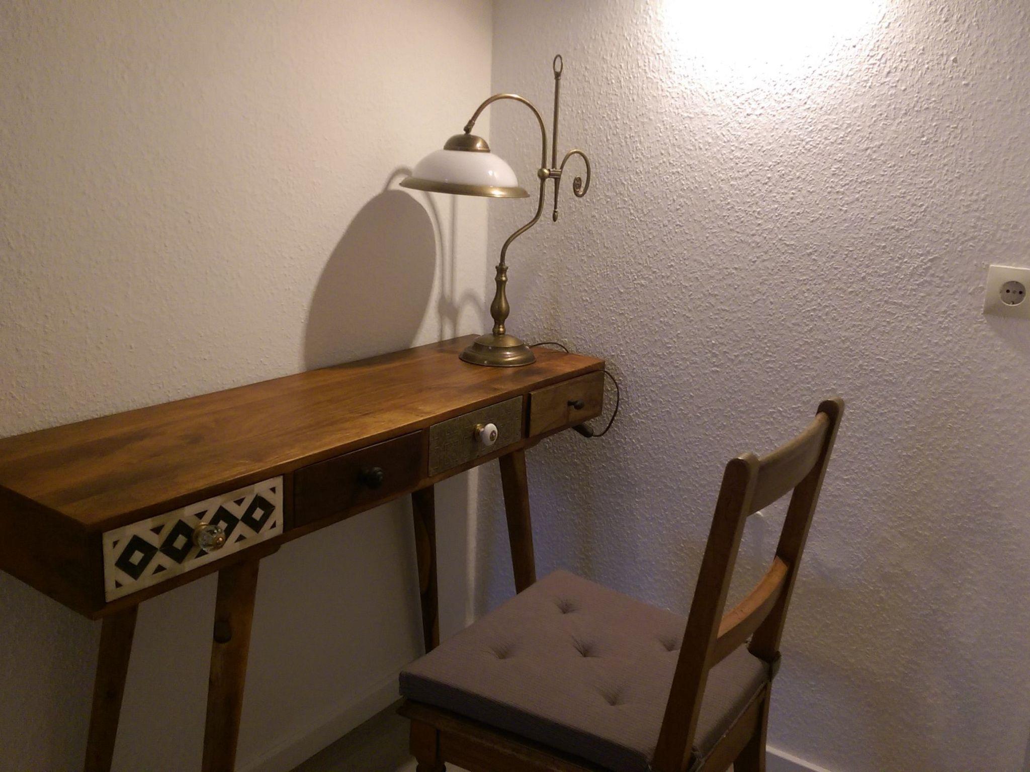 The apartment has a little outdoor sitting area for use from April to October, accessed along garden stairs. There is a parking space in front of the house.