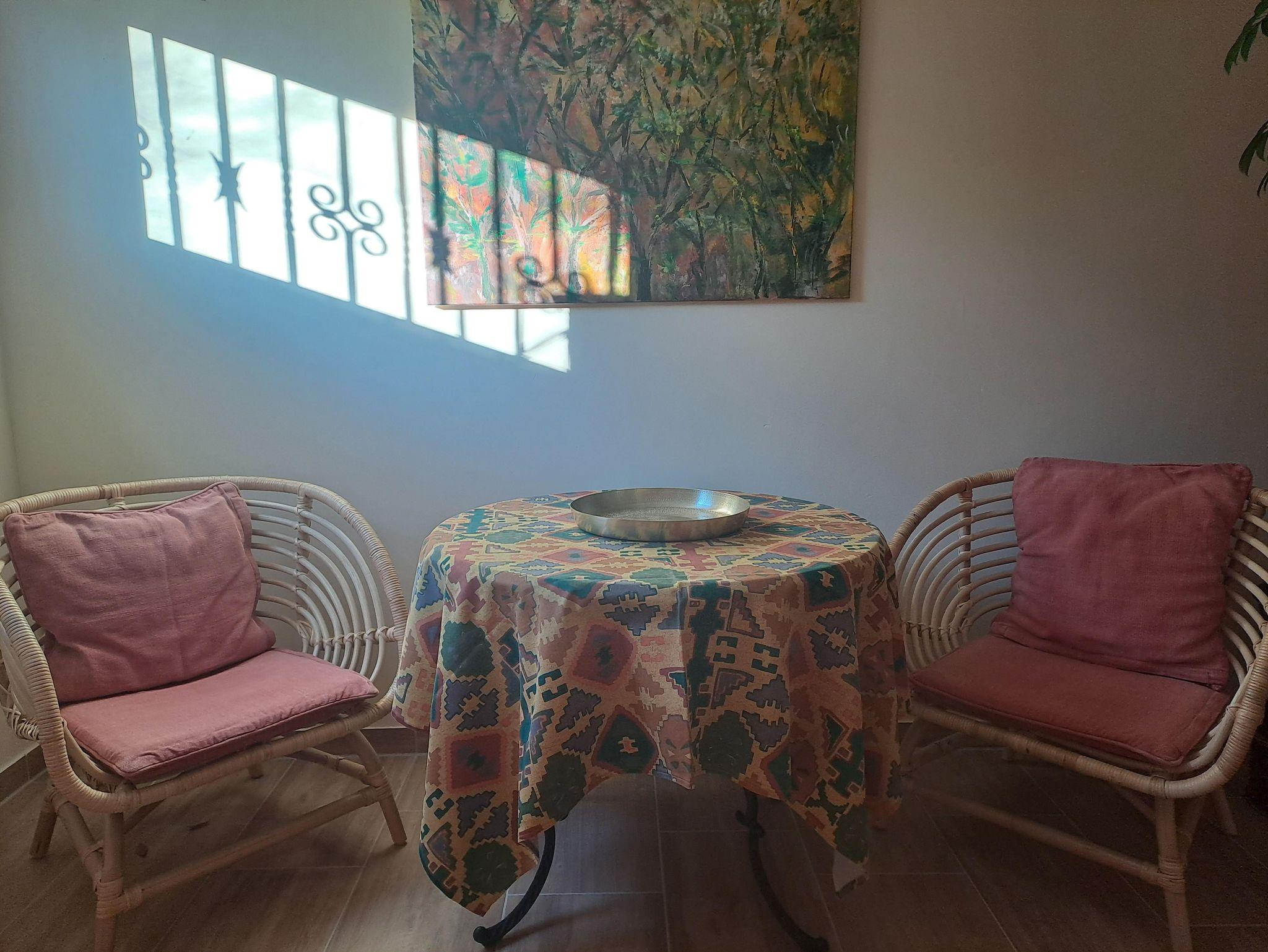 Rundtisch und 2 Stühle, Couchtisch und 1 Stuhl,