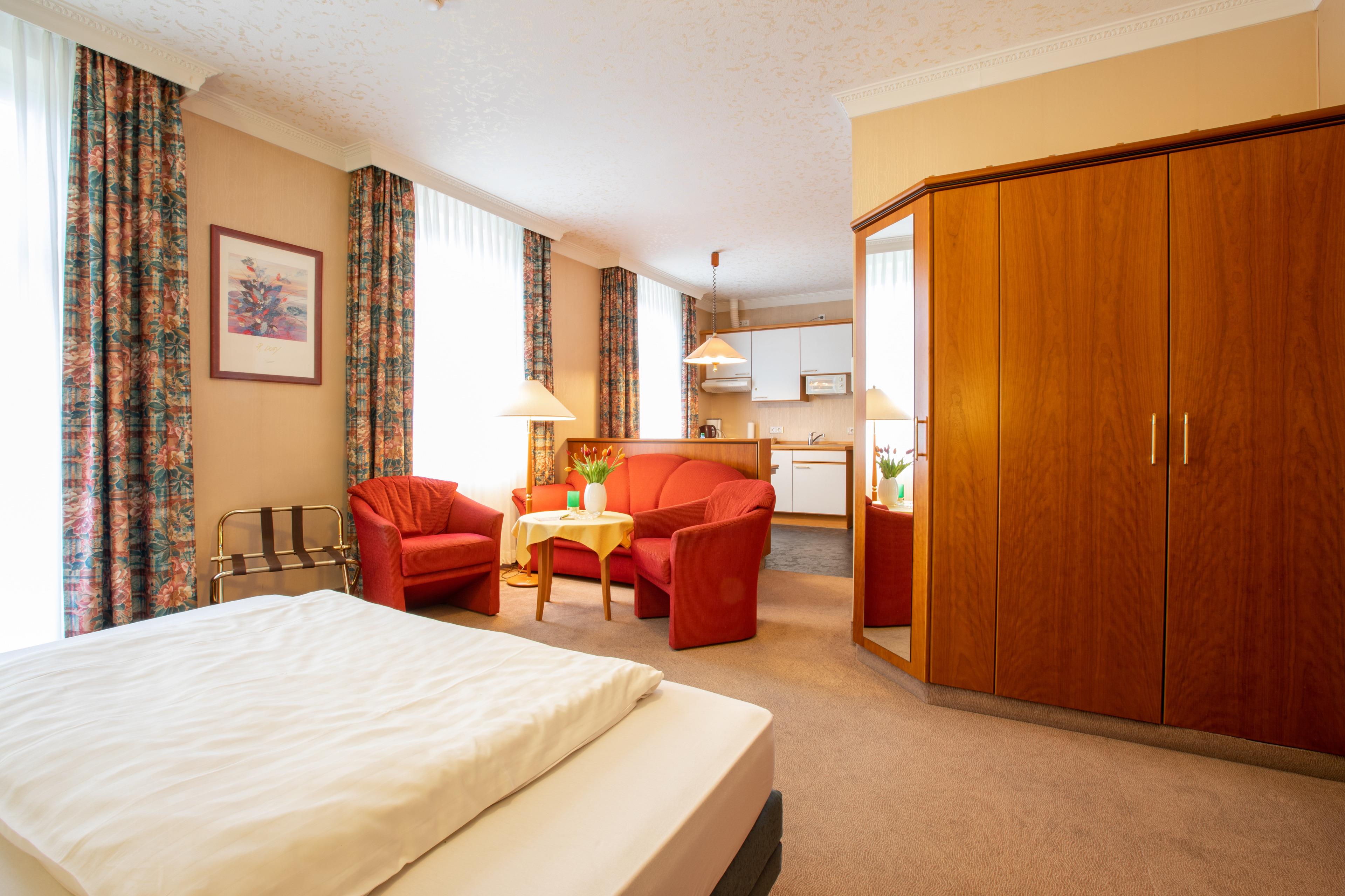 Komplett eingerichtete Küchenzeile oder kleine Küche | Bad mit Dusche | WC & Dusche; teilweise zusätzlich Badewanne | Flachbild-TV | Zimmersafe | Durchwahltelefon | W-LAN