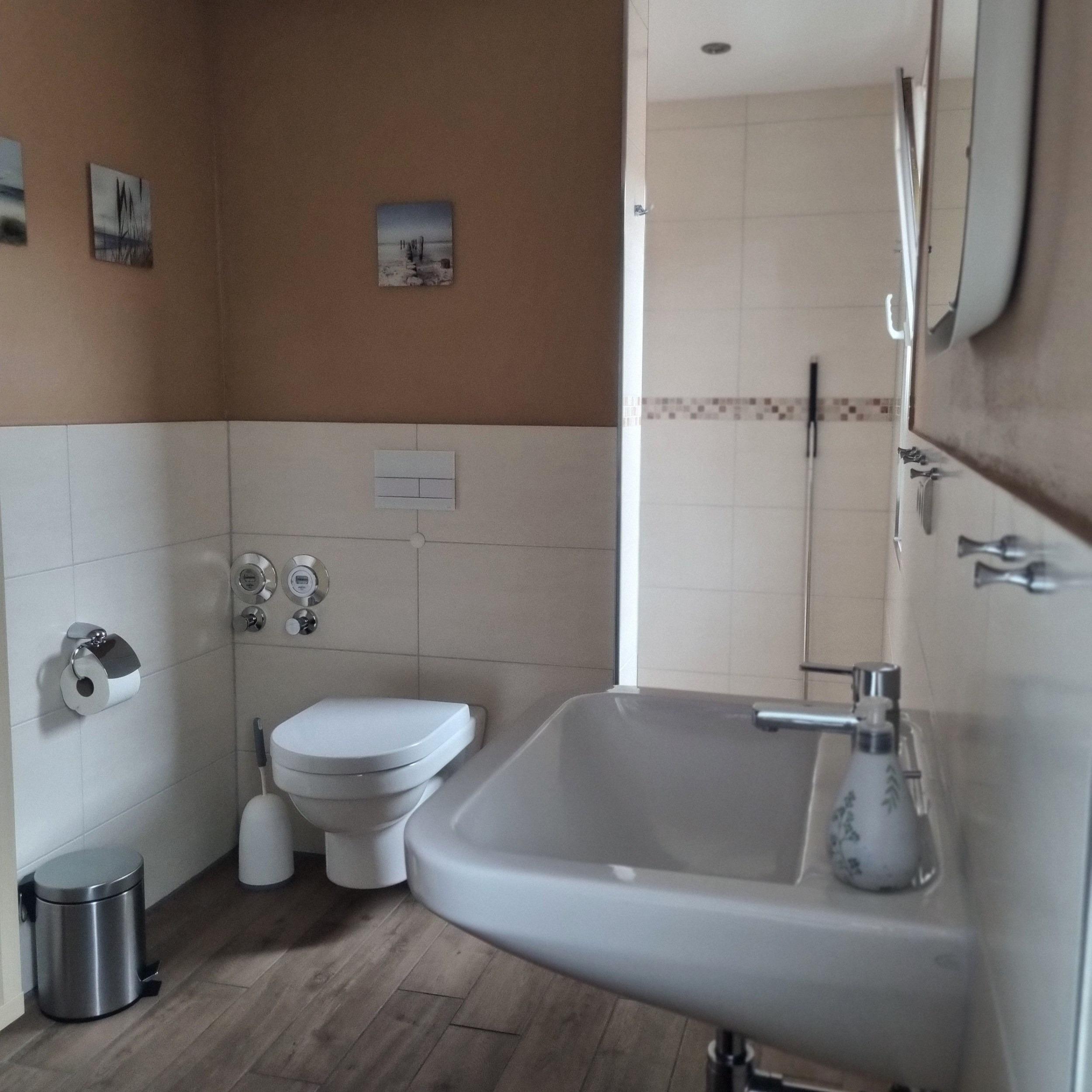 Im Erdgeschoss unseres Hauses befindet sich unsere moderne geräumige 60 m² Ferienwohnung (barrierefrei, Nichtraucherwohnung, keine Haustiere) mit gemütlicher Frühstücksterrasse. Sie besteht aus zwei getrennten Schlafzimmern mit je 2 bequemen Einzelbetten (0,90 x 2,00 m), einem Badezimmer mit Dusche, einer voll ausgestatteter Küche, sowie einem Wohnzimmer mit gemütlicher Couch, Flat-TV, Radio und Essplatz. Vom Wohnzimmer aus, haben Sie Zugang zur möblierten Terrasse (Tisch mit Stühlen und Auflagen, Sonnenschirm und Grill). Die Ferienwohnung hat eine Fußbodenheizung.