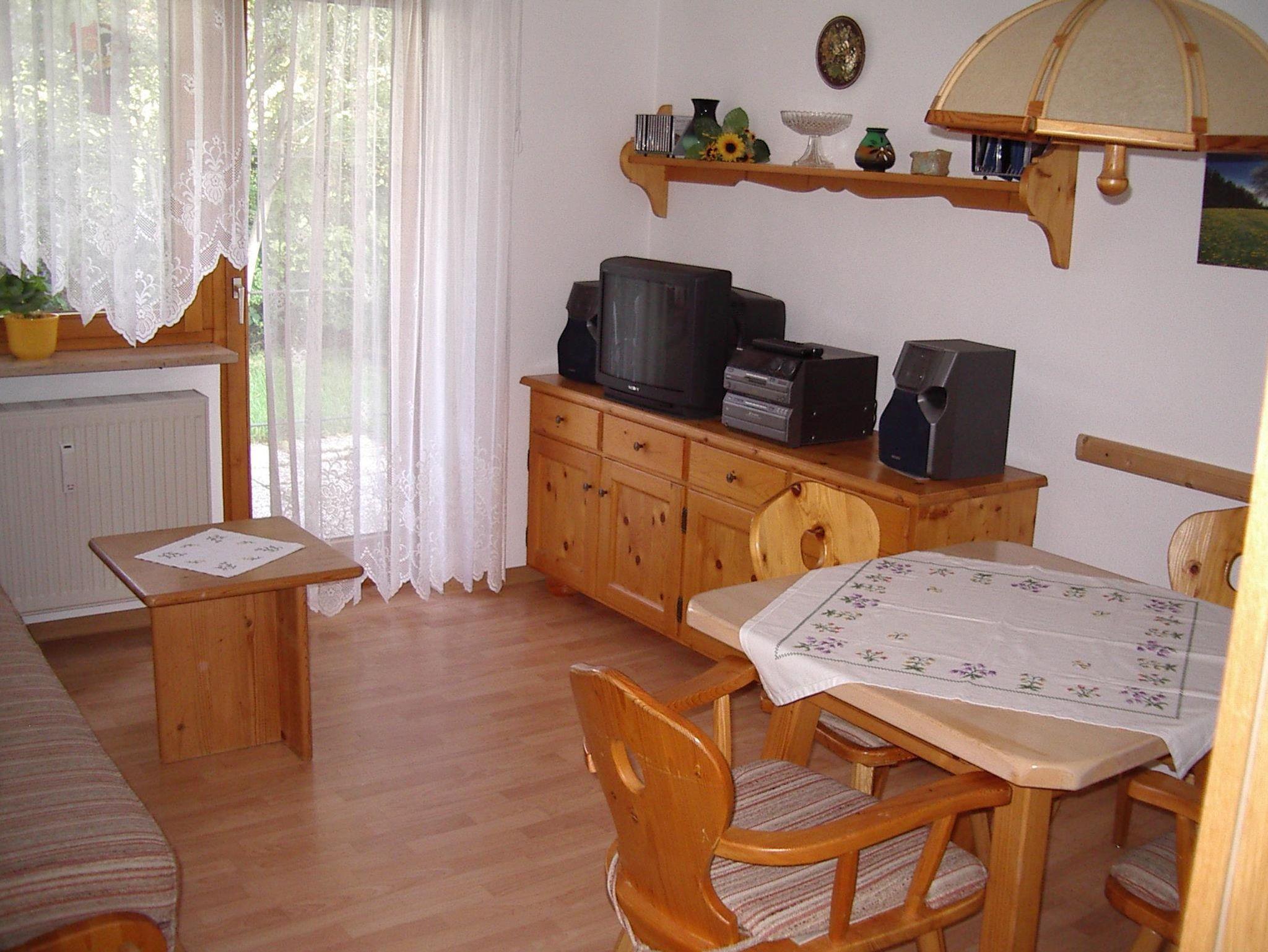 Das Haus befindet sich oberhalb des Ortskerns in der Nähe des Kurbades Zeitgeist. Es hat 2 Geschosse, die Wohnung befindet sich im Erdgeschoß und ist über eine vierstufige Aussentreppe erreichbar. Die Wohnung kann feucht gereinigt werden und hat somit keinen Teppichboden. Die Wohnung hat Dusche/WC, ein Schlafzimmer mit Einbauschrank, Küche mit Kühlschrank, Mikrowellenherd und Heißluftherd, Wohnzimmer mit Zugang zur Terrasse (Westausrichtung), alle Räume haben ein Fenster und werden durch eine Diele erschlossen. Die Wohnung bietet WLAN.