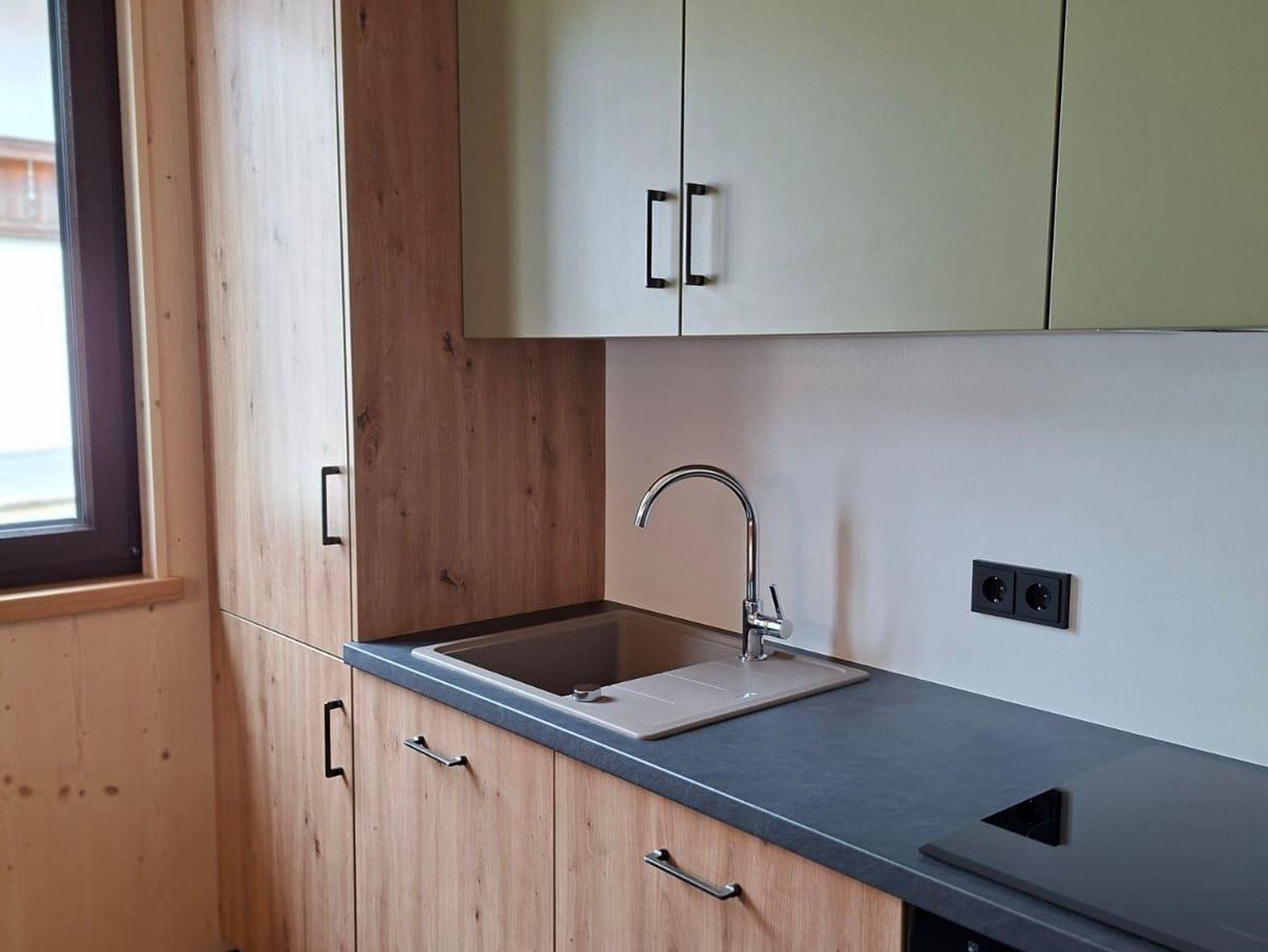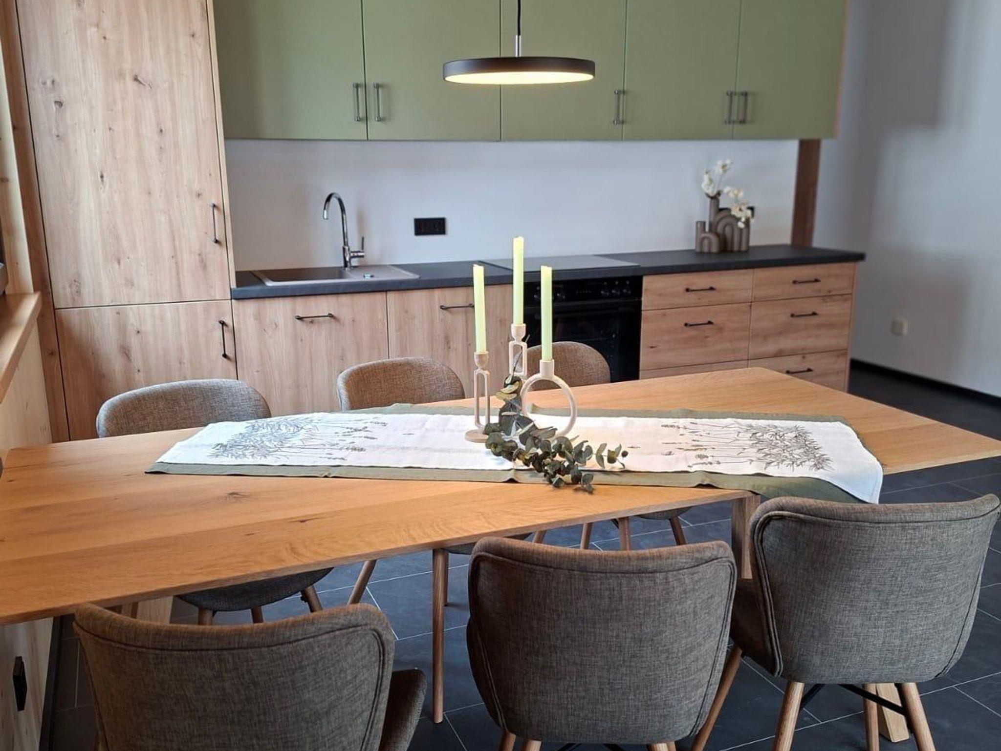 einer komplett ausgestatteten Wohnküche inkl. Spülmaschine bestückt.