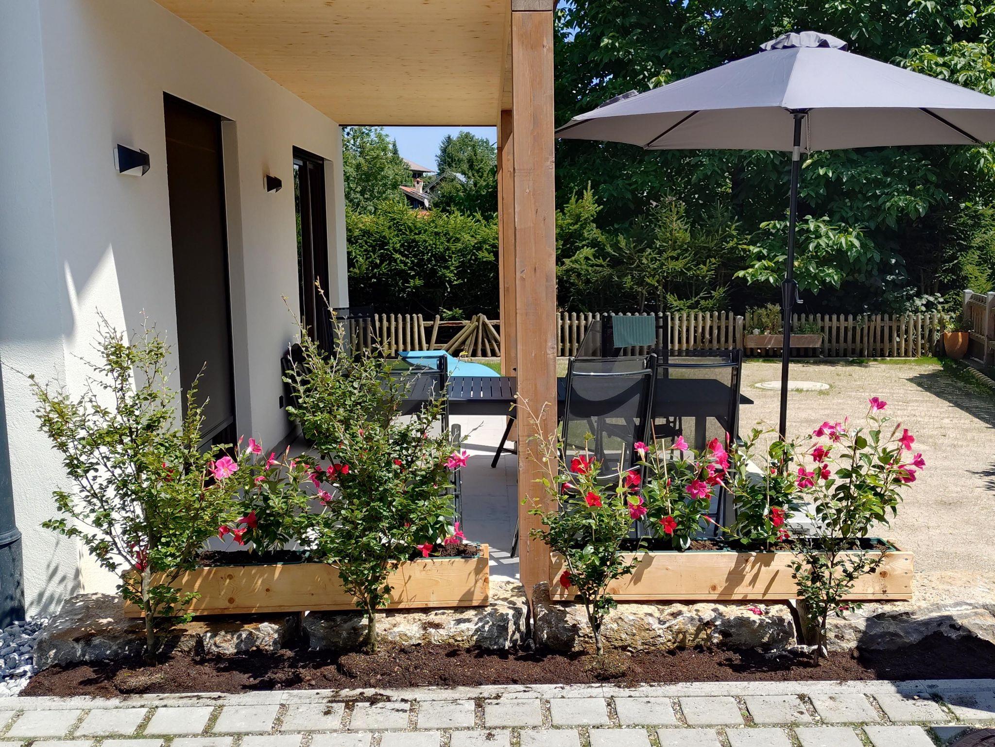 Von der Wohnküche gelangen Sie auf die überdachte möblierten Süd Terrasse.