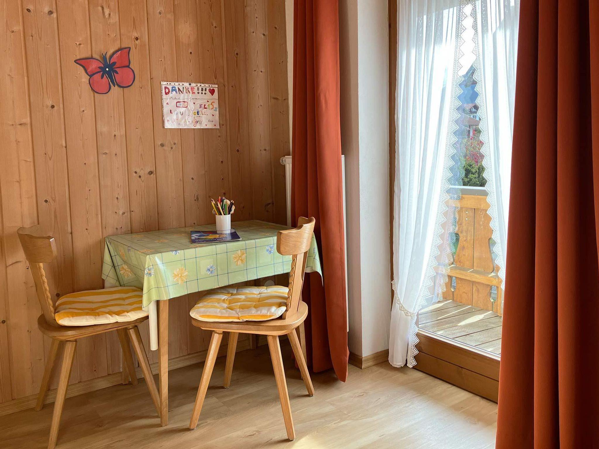 Unsere gemütlich eingerichtete Ferienwohnung verfügt über 2 Schlafzimmer, begehbarer Kleiderschrank, 1 Kinderzimmer mit Stockbett, Wohnzimmer mit gemütlicher Essecke und Couch, Radio mit CD Player, 2 Bäder, Fön, Abstellraum. Der große Südbalkon mit Bergblick lädt zum Erholen ein. Im Garten finden Sie eine kleine Kräuterecke, Grillplatz und einen kleinen Kinderspielplatz.