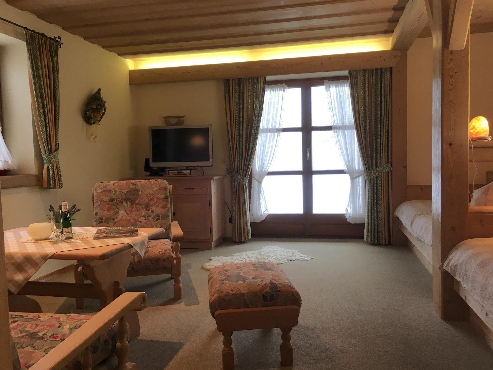 Appartment 35 qm gemütlicher Wohnschlafraum, 2 feststehende einzelne Betten, Ausziehsofasofa und Sessel Sat.Flachbildfernseher Stereo Radio.sep.Küchegut augestattet 2 Ceranplatten, Mikrowelle mit Grillfunktion kleine Essecke, Dusche/WC,Fön. Sonnige Terrasse mit Bergblick. Für Einzelpersonen geeignet. Für Familien mit größeren Kindern können beide App.zusammen gebucht werden. Preis auf Anfrage.