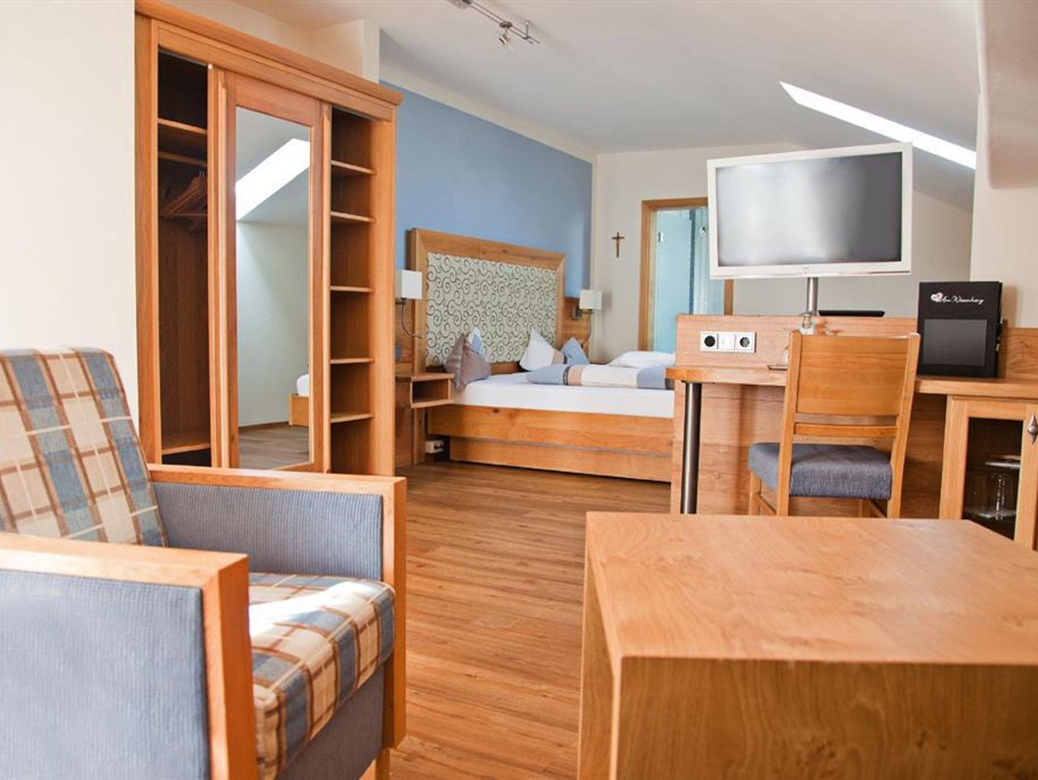 Inklusivleistung: Frühstücksbuffet mir regionalen Produkten, Dusche/WC, Pflegeprodukte, Fön, Balkon oder Terrasse, Flachbild-TV, Radio Wecker, Parkplatz, Nutung des Saunabereichs, Saunatücher, Bademantel, Minibar (gegen Gebühr).