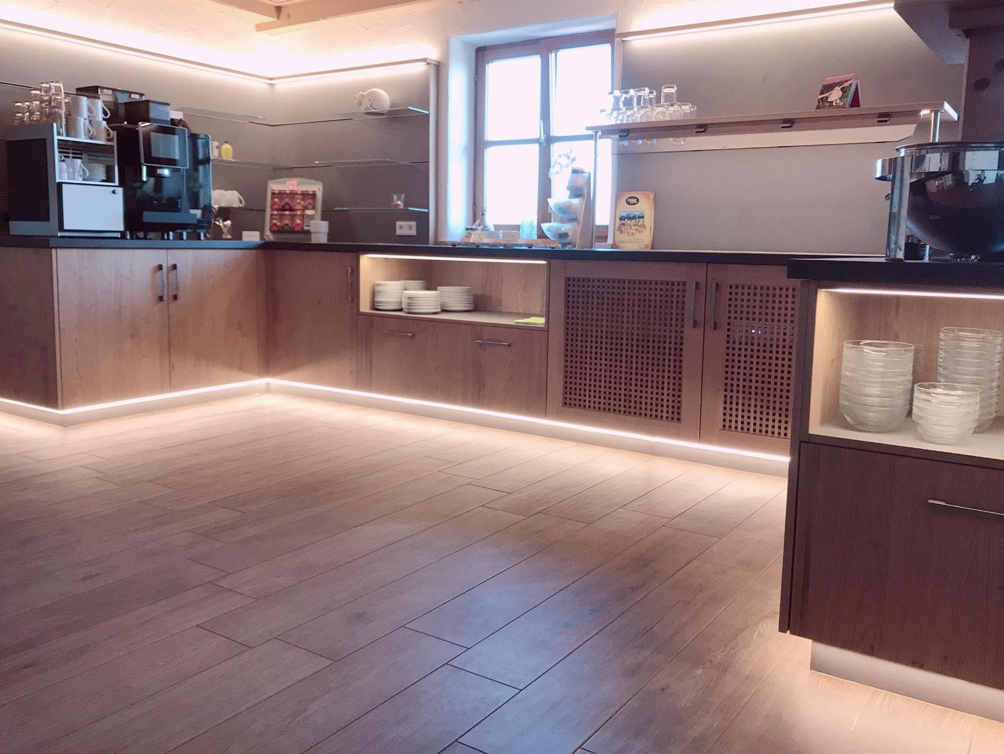 Die Gäste in den Fewos erhalten jeden morgen frische Semmeln an die Türe, spontane Teilnahme am Frühstücksbuffet ist jederzeit zubuchbar (gegen Gebühr).