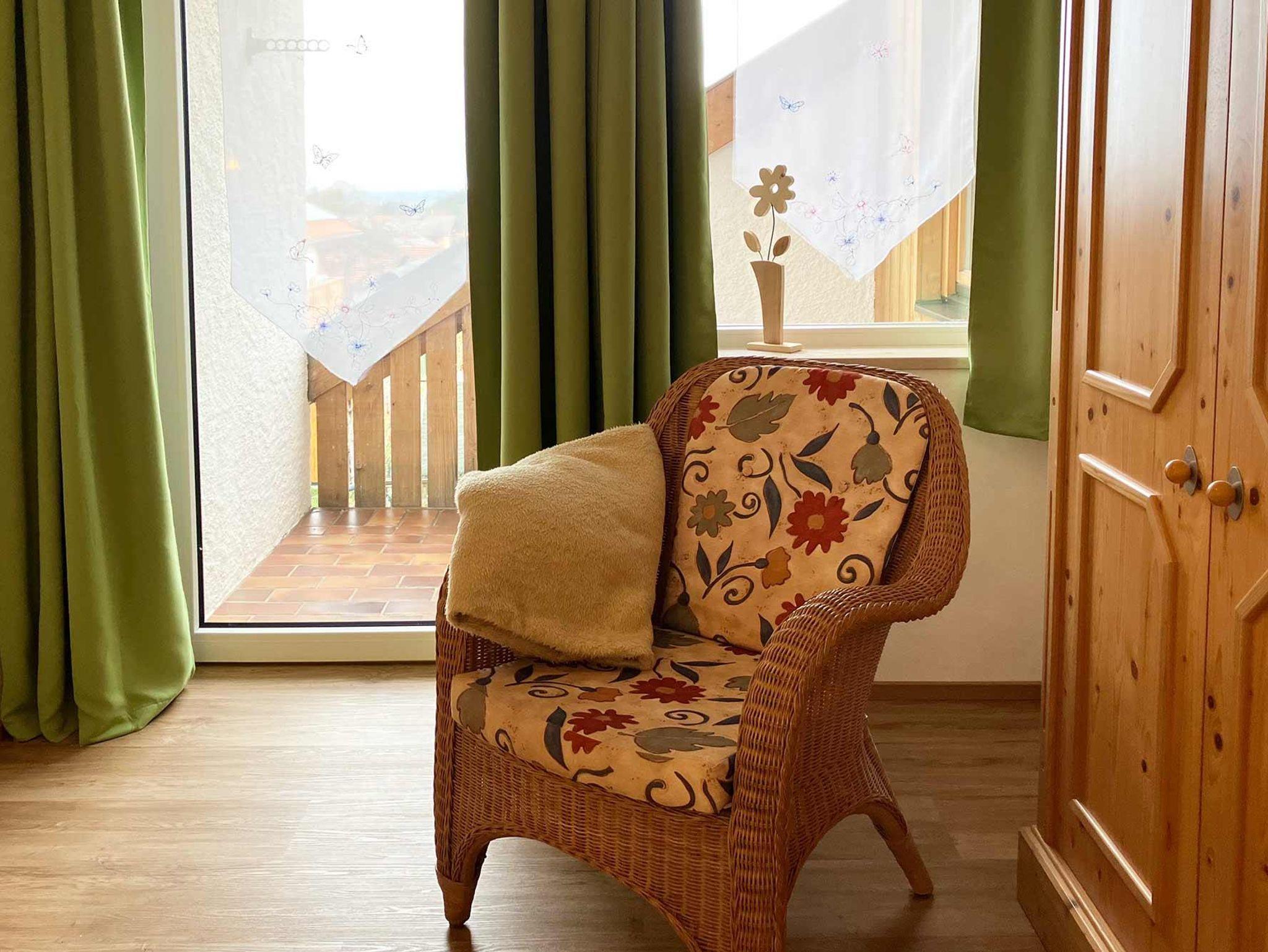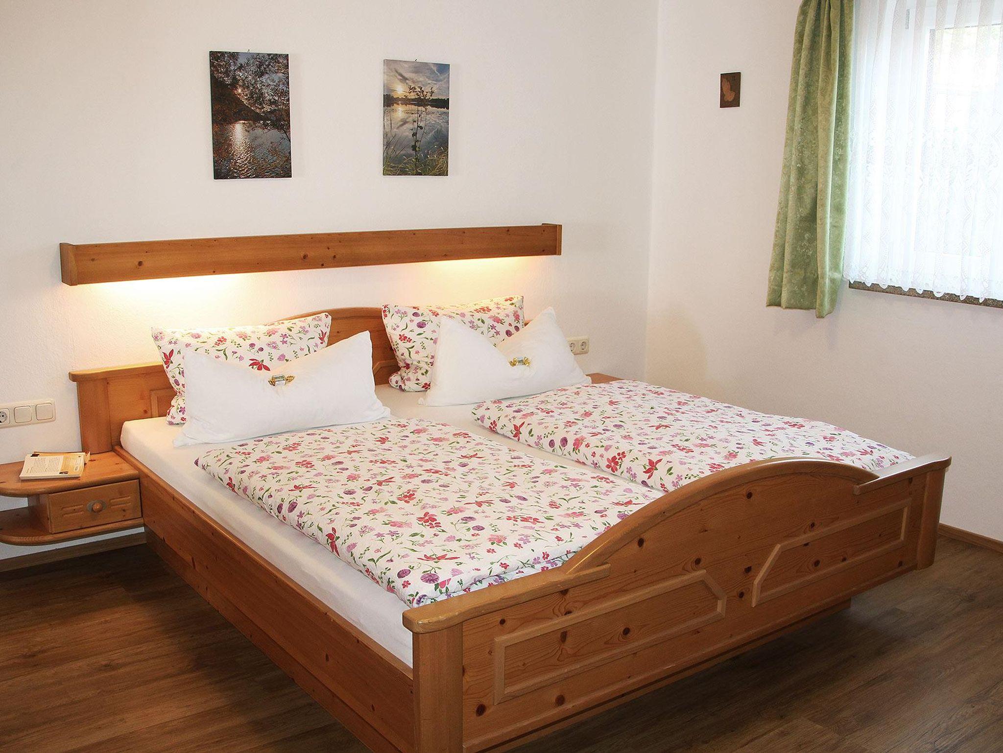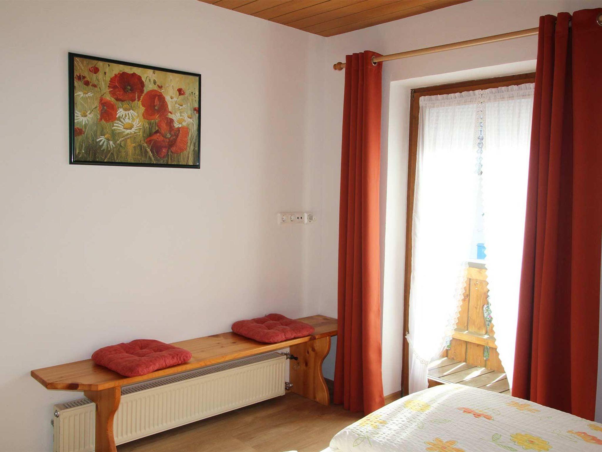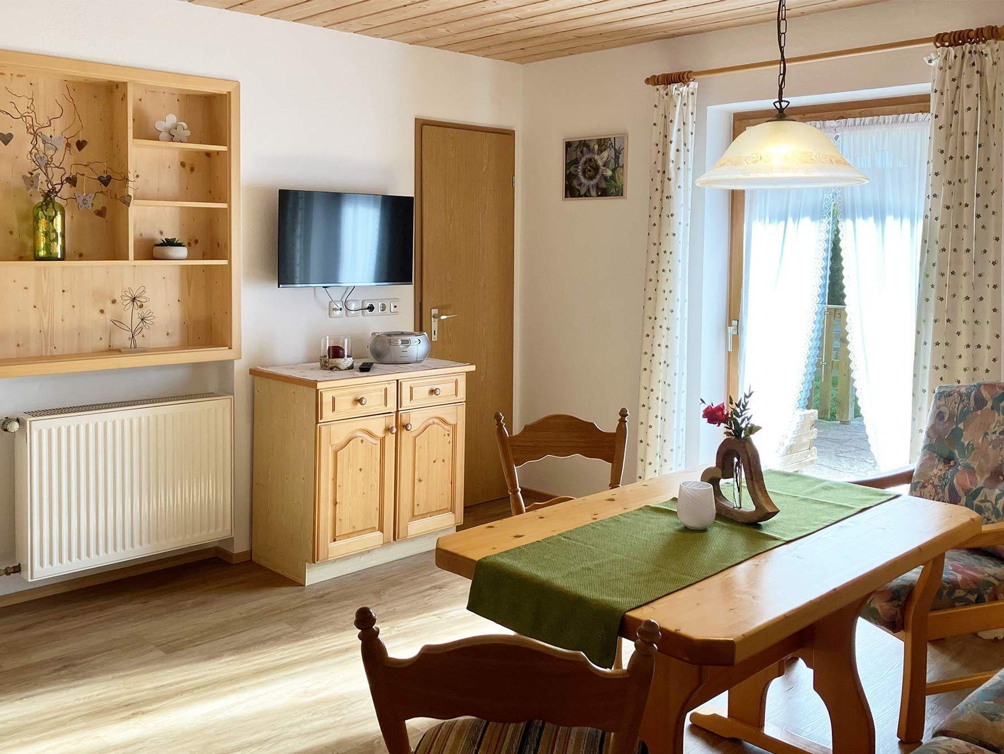 Unsere gemütlich eingerichtete Ferienwohnung verfügt über 2 Schlafzimmer, begehbarer Kleiderschrank, 1 Kinderzimmer mit Stockbett, Wohnzimmer mit gemütlicher Essecke und Couch, Radio mit CD Player, 2 Bäder, Fön, Abstellraum. Der große Südbalkon mit Bergblick lädt zum Erholen ein. Im Garten finden Sie eine kleine Kräuterecke, Grillplatz und einen kleinen Kinderspielplatz.
