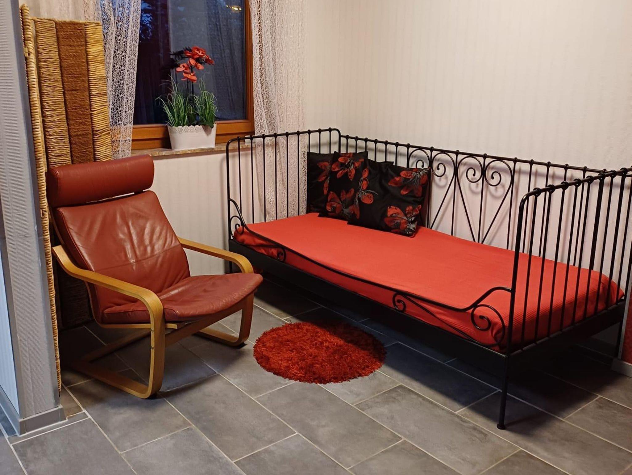 Der helle Wohnbereich lädt mit einer gemütlichen Sitzgruppe, Sat-TV, einer kleinen Stereoanlage sowie einer charmanten Leseecke zum Verweilen ein.