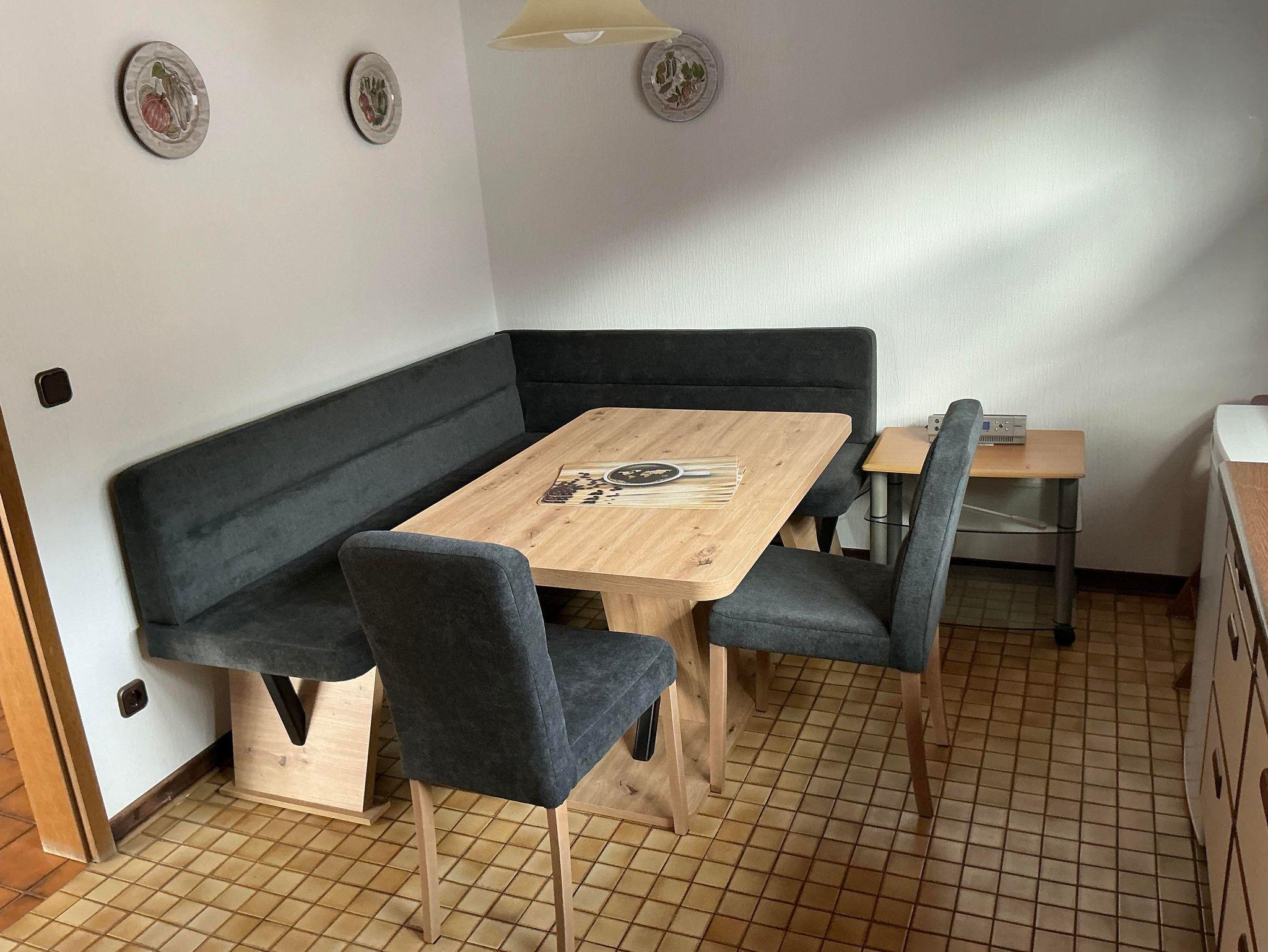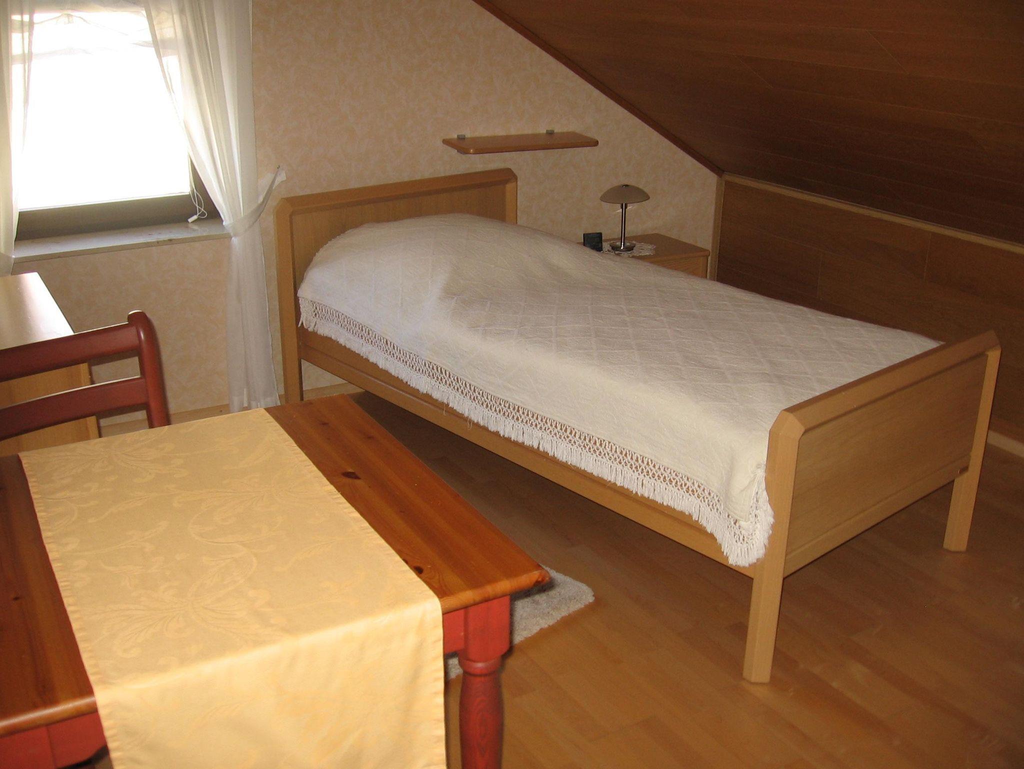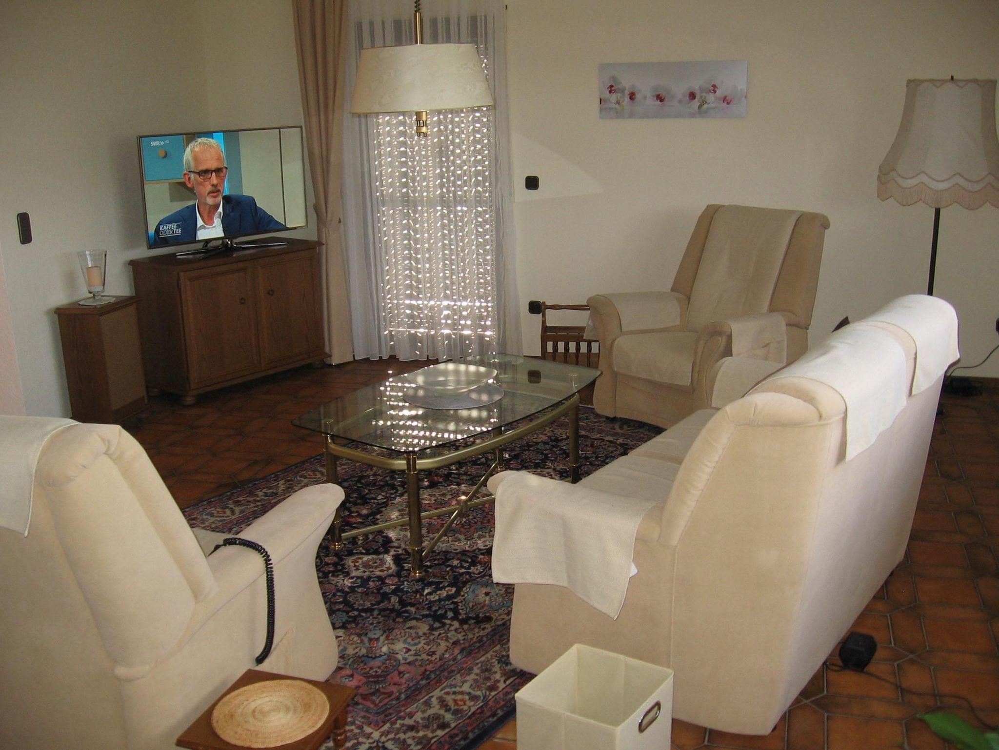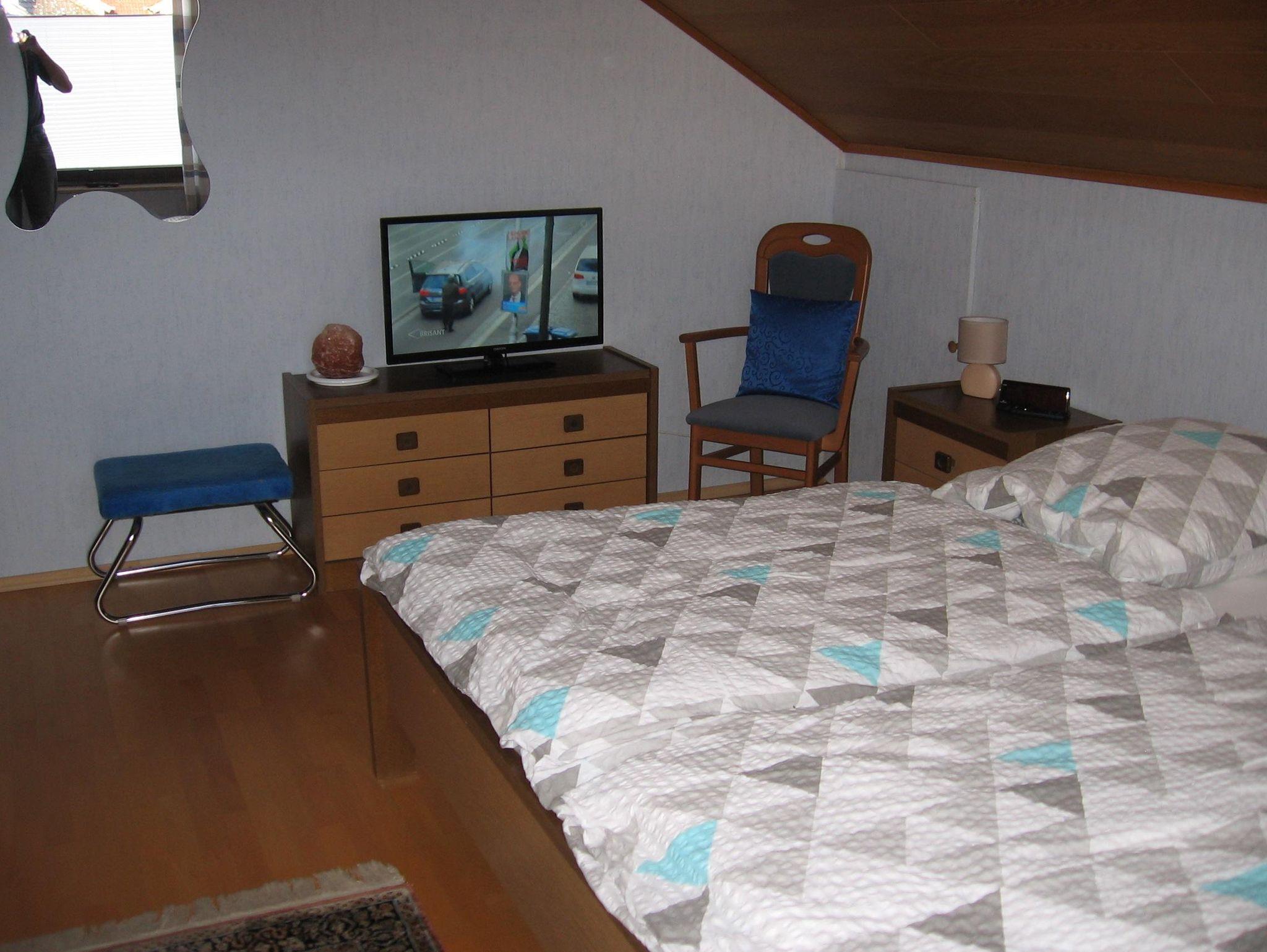 Ruhig gelegene Ferienwohnung mit großem Balkon im 1. Obergeschoss eines Zweifamilienhauses. 3 ZKB, Fußbodenheizung. SAT-TV im Wohn- und in einem Schlafzimmer. Eßzimmer (Eckbankgruppe) im großzügigen Dielenbereich und zusätzliche Eßbankgruppe in der Küche. Kinderhochstuhl und Kinderreisebett sind vorhanden. Badezimmer mit Wanne und separater Dusche und WC. Getrenntes Gäste-WC. 2 getrennte Schlafzimmer, eines mit Doppelbett und eines mit einem Einzelbett. WLAN, Nichtraucherwohnung.