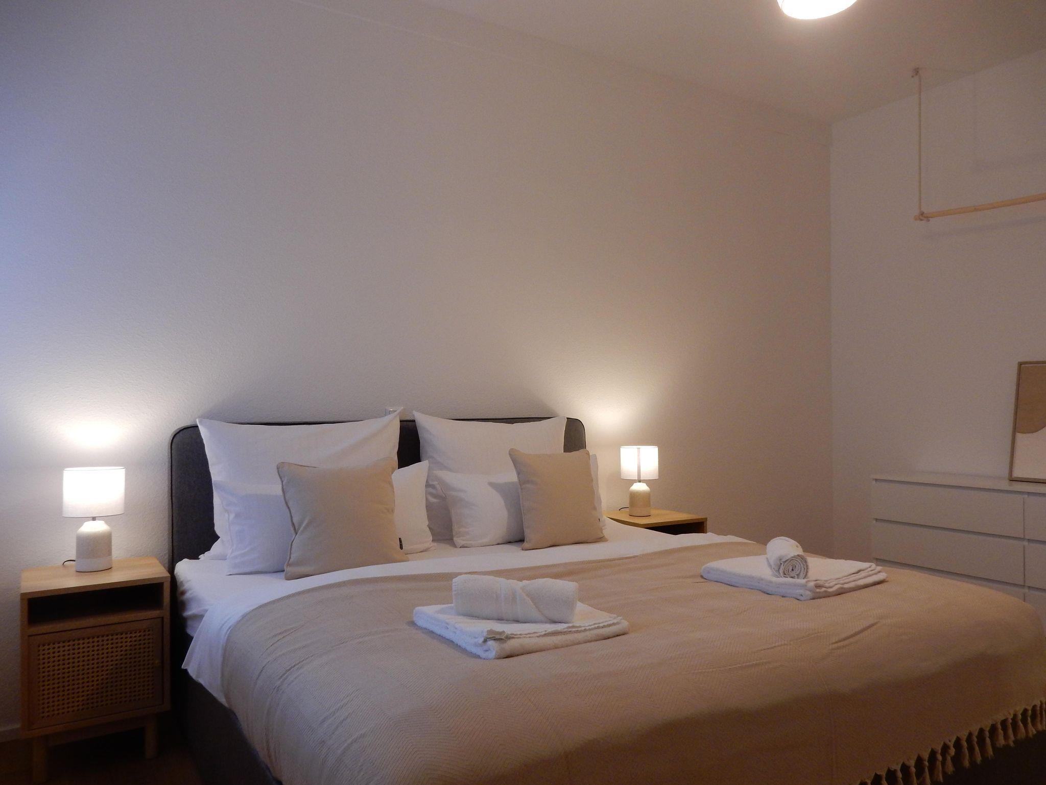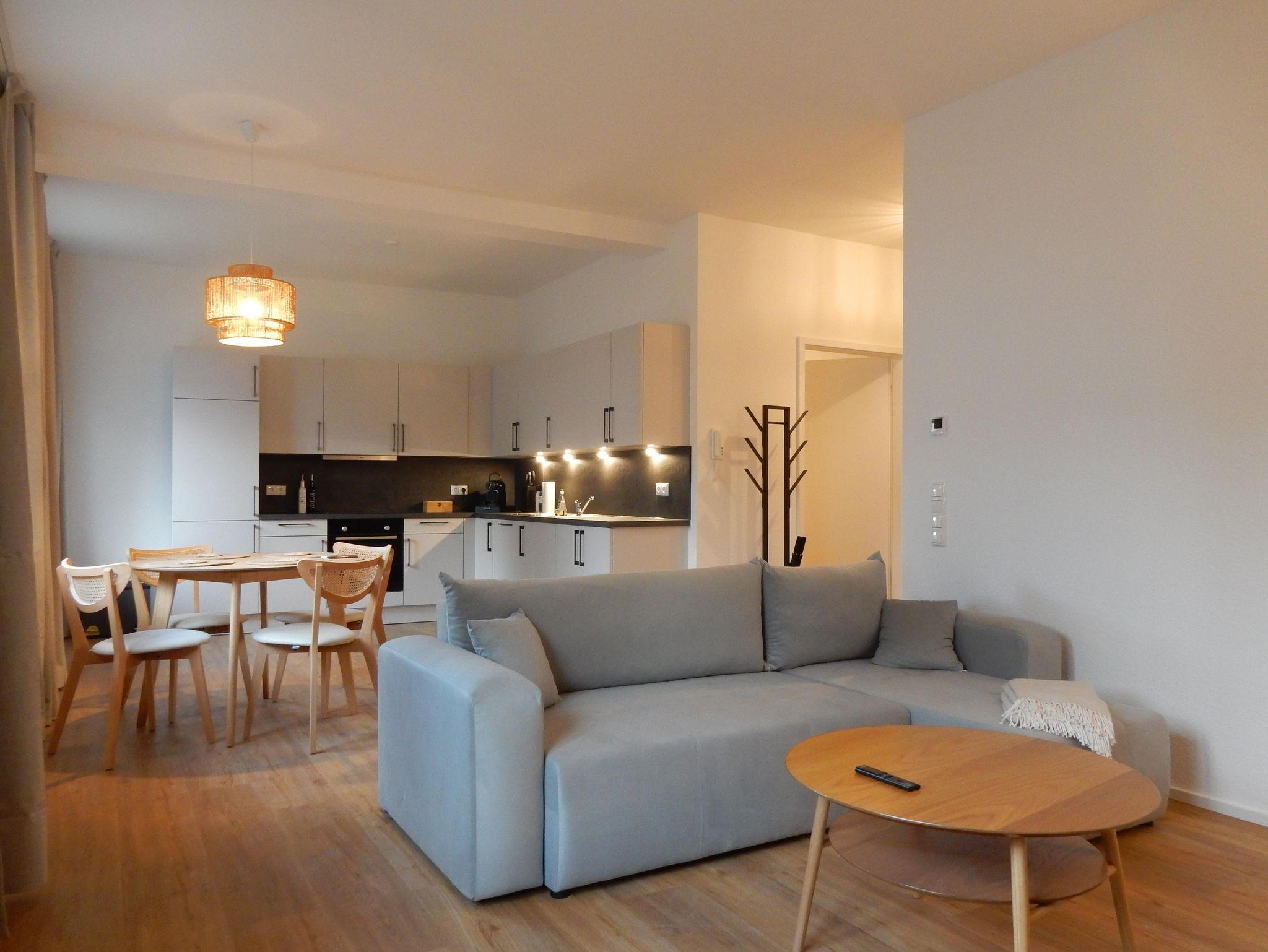 Unsere stilvolle Erdgeschosswohnung im skandinavischen Design ist Eure Wohlfühloase mit 70 qm Wohnfläche. Das helle Schlafzimmer mit King-Size Bett und die bequeme Schlafcouch bieten Platz für bis zu 4 Personen. Die moderne Wohnküche und das luxuriöse Badezimmer machen Euren Aufenthalt perfekt. Entspannt im gemütlichen Wohnzimmer und genießt Entertainment pur auf dem Smart-TV.
