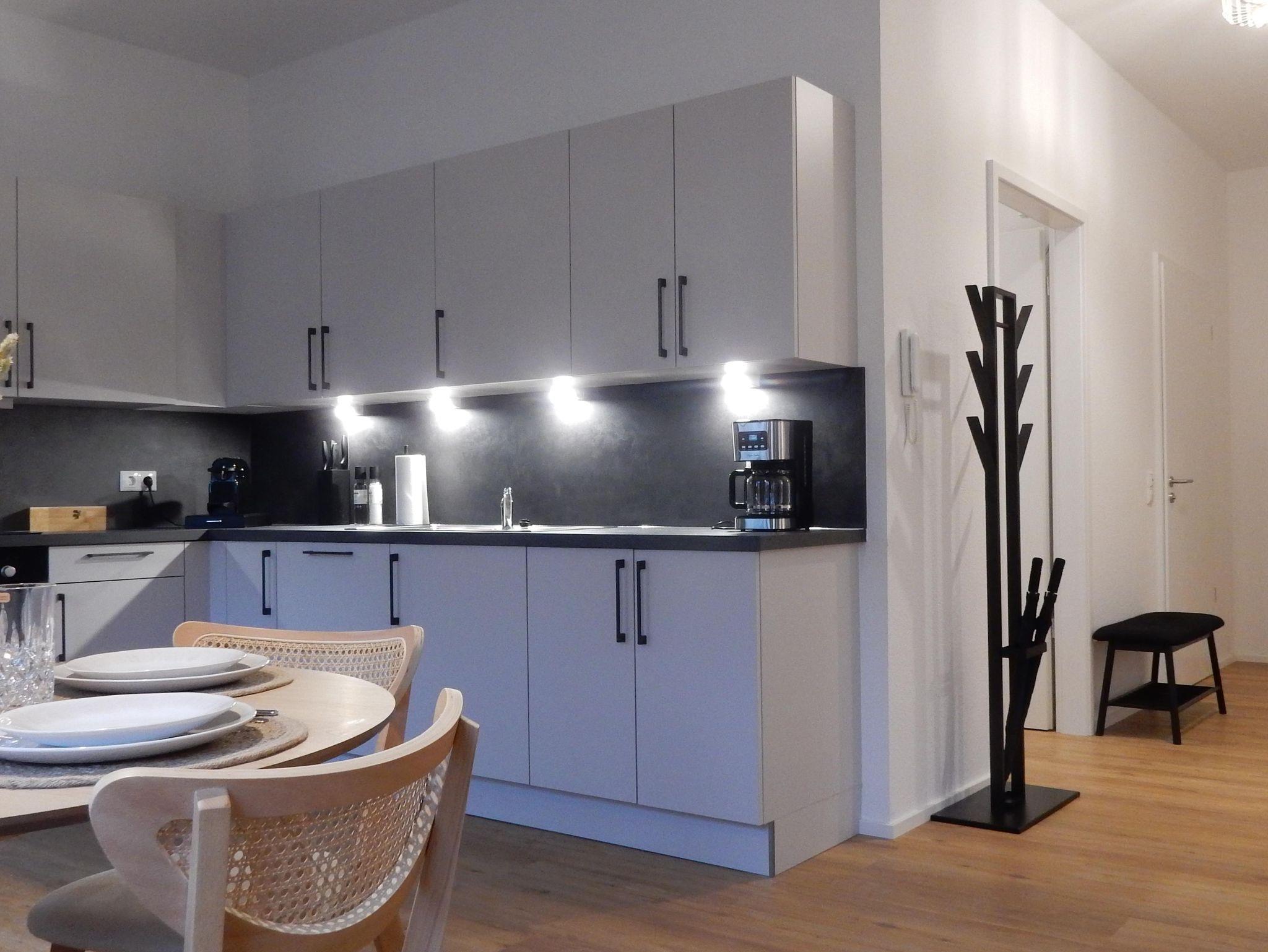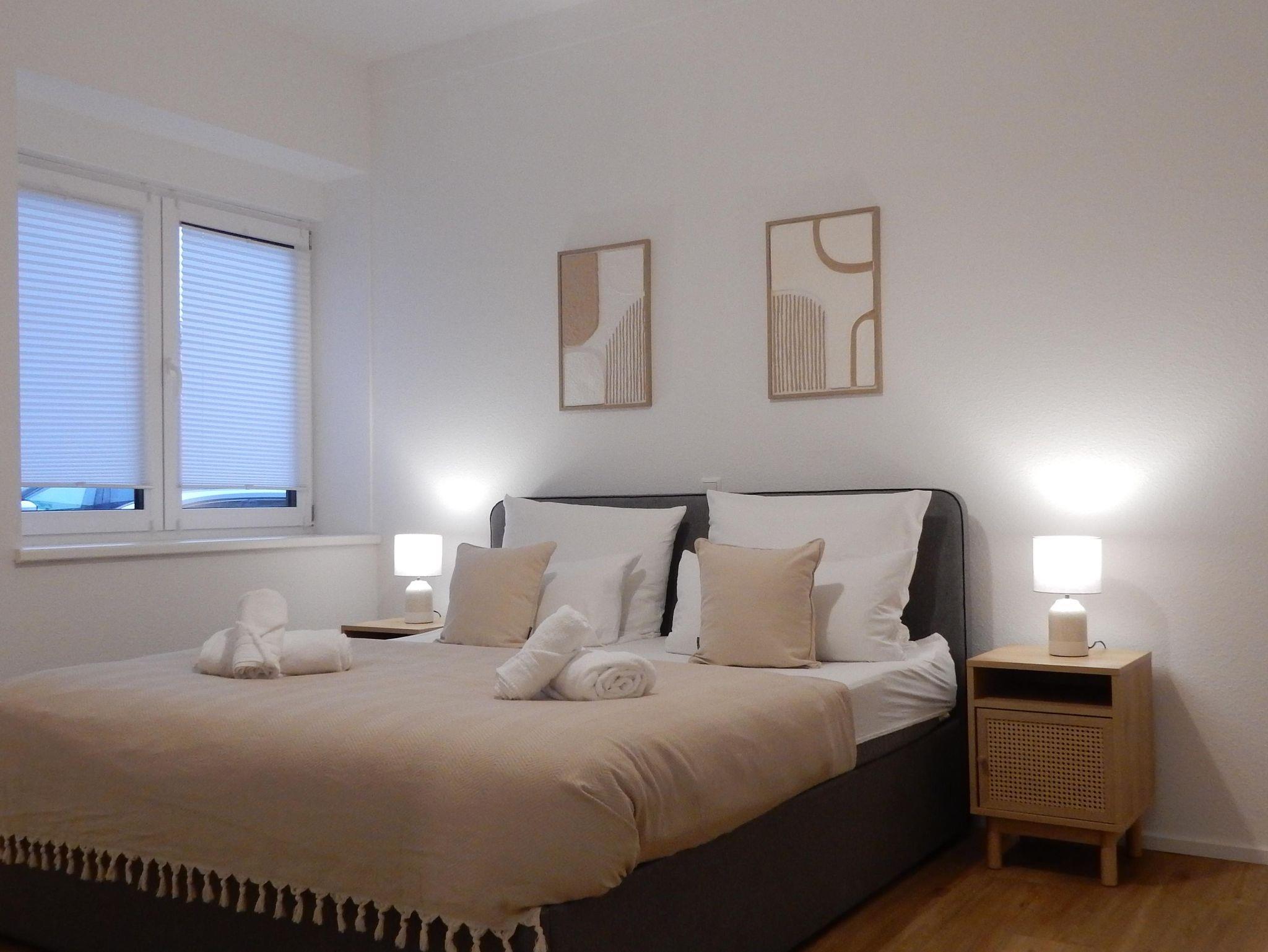 Unsere stilvolle Erdgeschosswohnung im skandinavischen Design ist Eure Wohlfühloase mit 70 qm Wohnfläche. Das helle Schlafzimmer mit King-Size Bett und die bequeme Schlafcouch bieten Platz für bis zu 4 Personen. Die moderne Wohnküche und das luxuriöse Badezimmer machen Euren Aufenthalt perfekt. Entspannt im gemütlichen Wohnzimmer und genießt Entertainment pur auf dem Smart-TV.