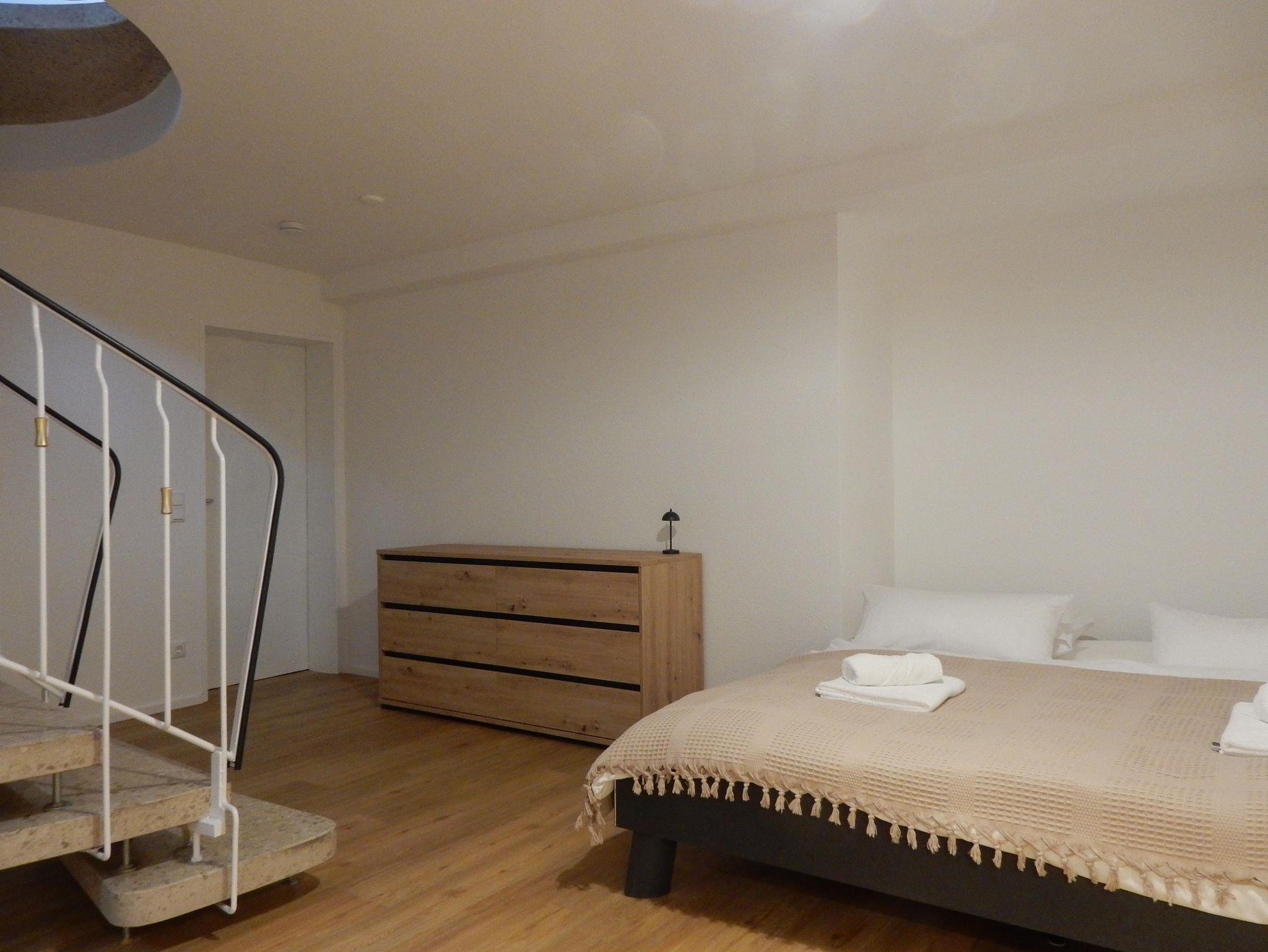 Auf drei Etagen erwartet Euch die moderne Maisonette Wohnung im Industrial-Stil mit Platz für bis zu 6 Personen. Zwei großzügige Schlafzimmer mit King-Size Betten und eine bequeme Schlafcouch bieten viel Raum zum Erholen. Die voll ausgestattete Küche, das elegante Badezimmer und das lichtdurchflutete Wohnzimmer mit Fußbodenheizung sorgen für ein einzigartiges Wohnerlebnis.