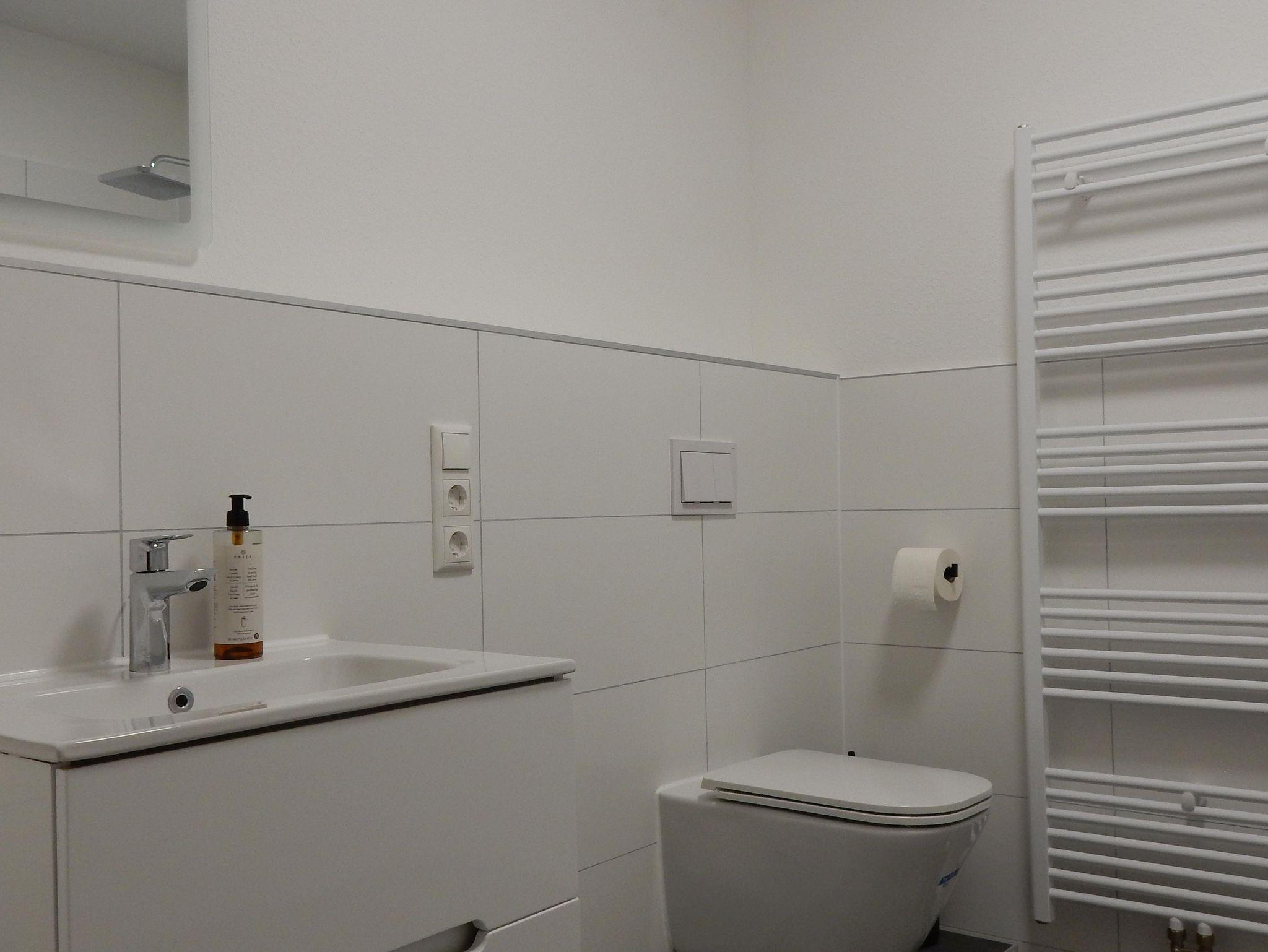 Ein Highlight der Wohnung sind die beiden Badezimmer. Das Hauptbad verwöhnt Euch mit einem Doppelwaschbecken, einer großzügigen Dusche und WC. Hygieneartikel wie Seife, Shampoo und Duschgel stehen Euch selbstverständlich zur Verfügung. Zusätzlich gibt es ein weiteres Gäste-WC, sodass auch bei mehreren Personen kein morgendlicher Stress aufkommt.