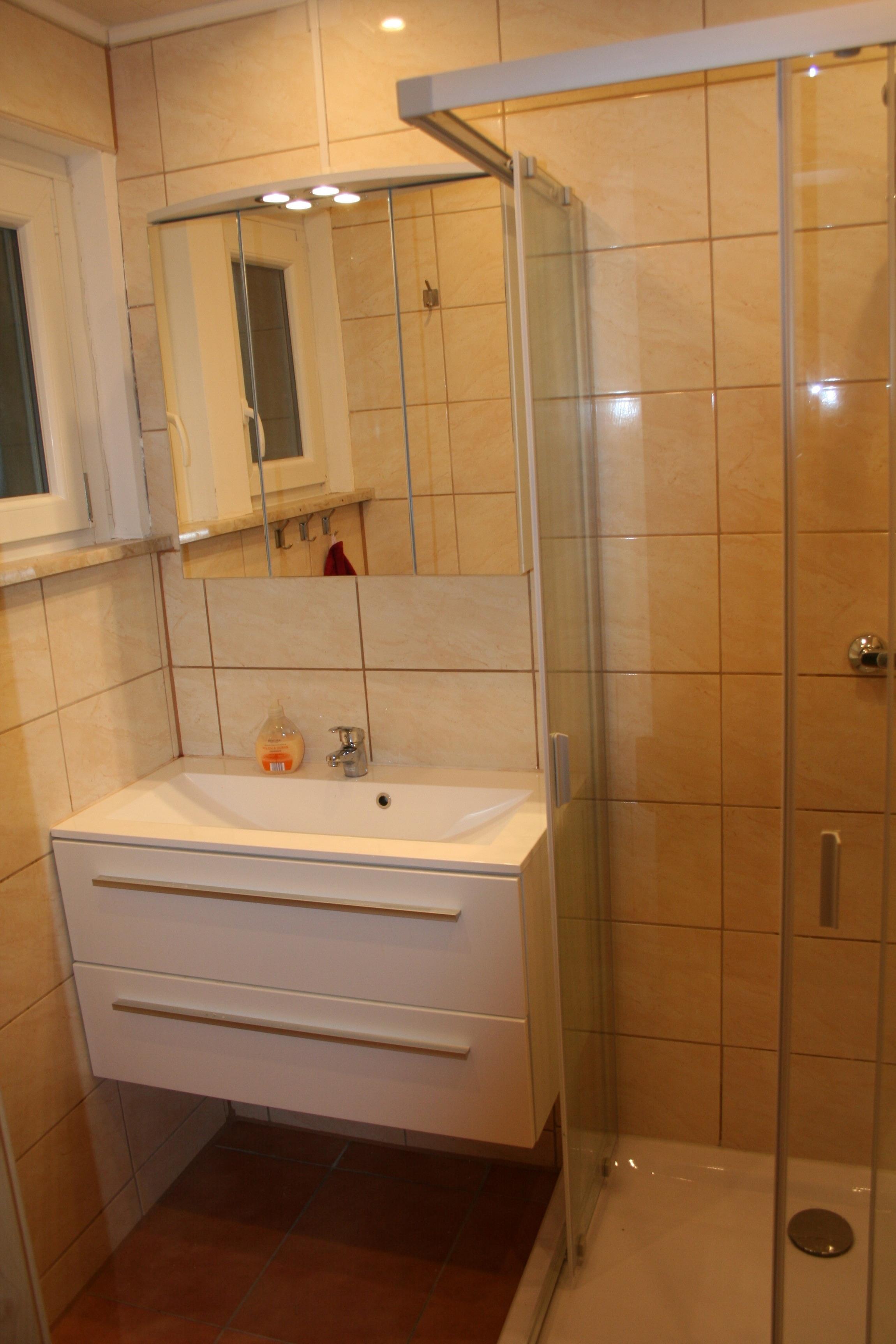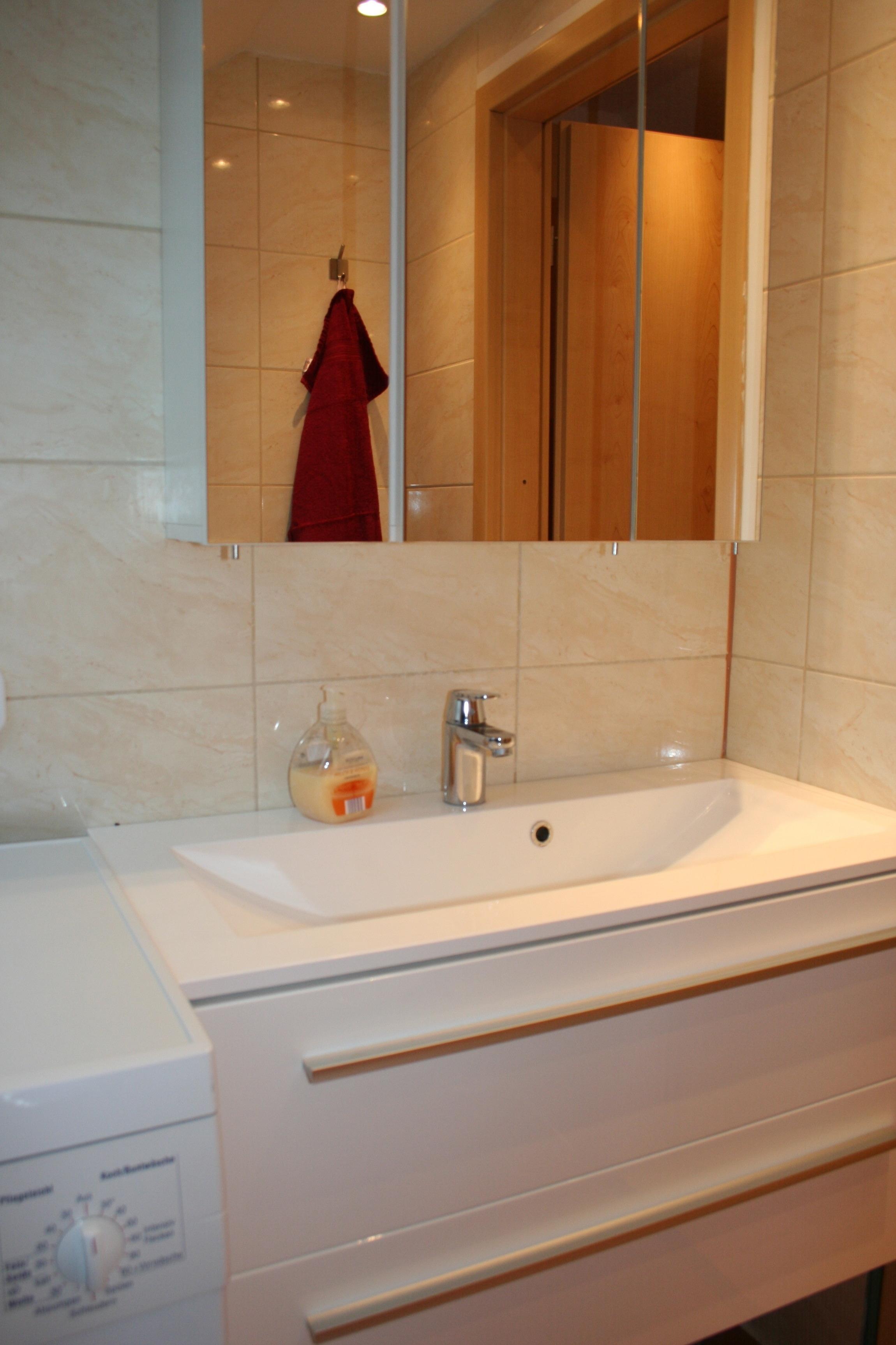 Die Toilette im Erdgeschoss ist mit einem WC, einem großzügigen Waschplatz sowie einer Dusche ausgestattet. Eine weitere Toilette mit WC und Waschplatz befindet sich im Obergeschoss. Diese Toilette verfügt auch über eine Waschmaschine und einen Trockner.