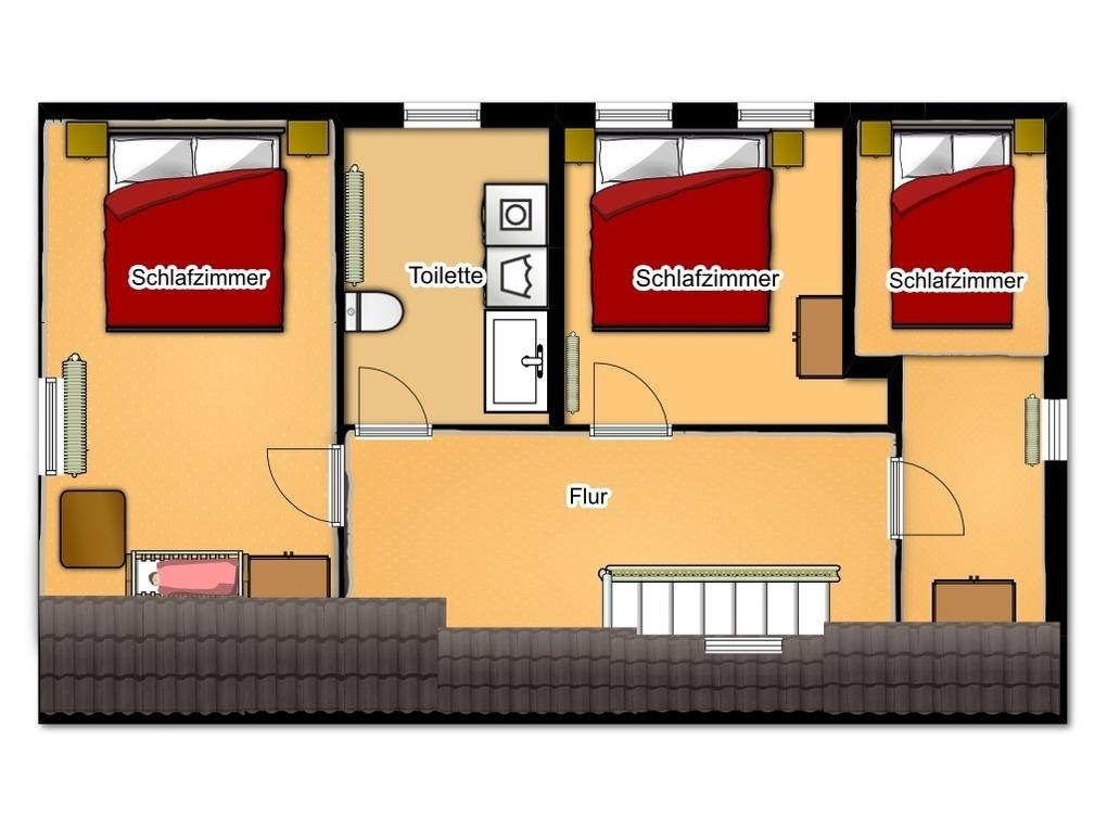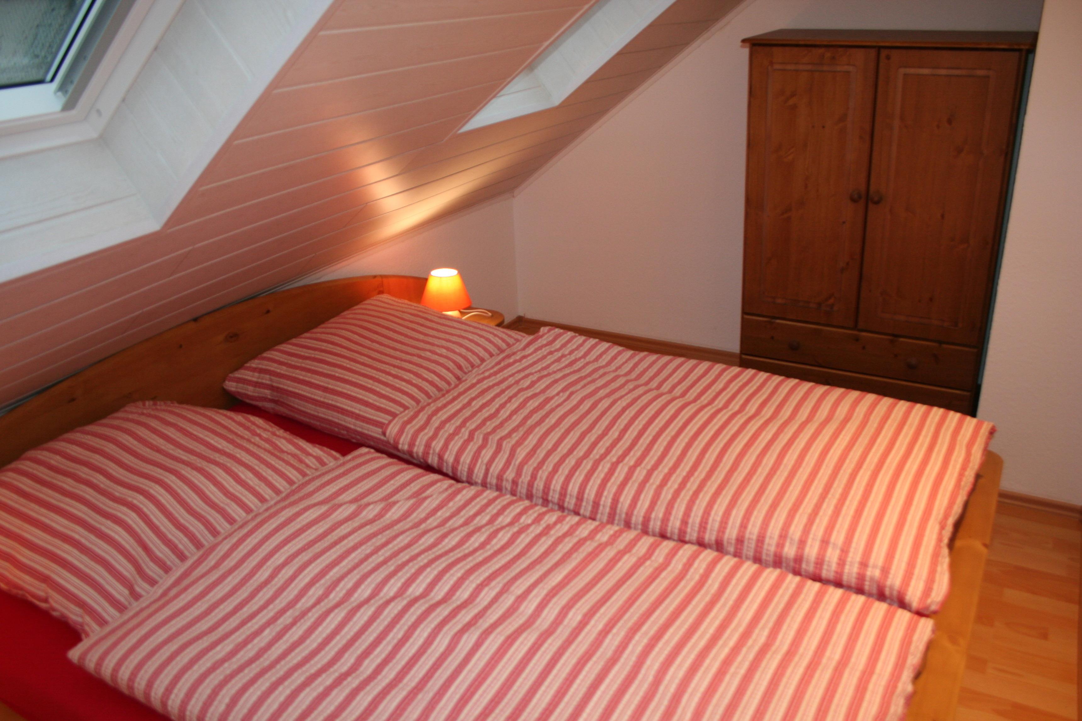 Die vier der fünf separaten Schlafzimmer sind jeweils mit einem Doppelbett, Nachttischen und einem großzügigem Kleiderschrank ausgestattet. Ein größeres Schlafzimmer im Erdgeschoss verfügt über ein Doppel- und ein Einzelbett. Die Schlafzimmer sind im Schnitt 9 bis 15qm groß und gemütlich eingerichtet. Zwei Schlafzimmer befindet sich im Erdgeschoss, während alle weiteren Schlafräume im Obergeschoss untergebracht sind.