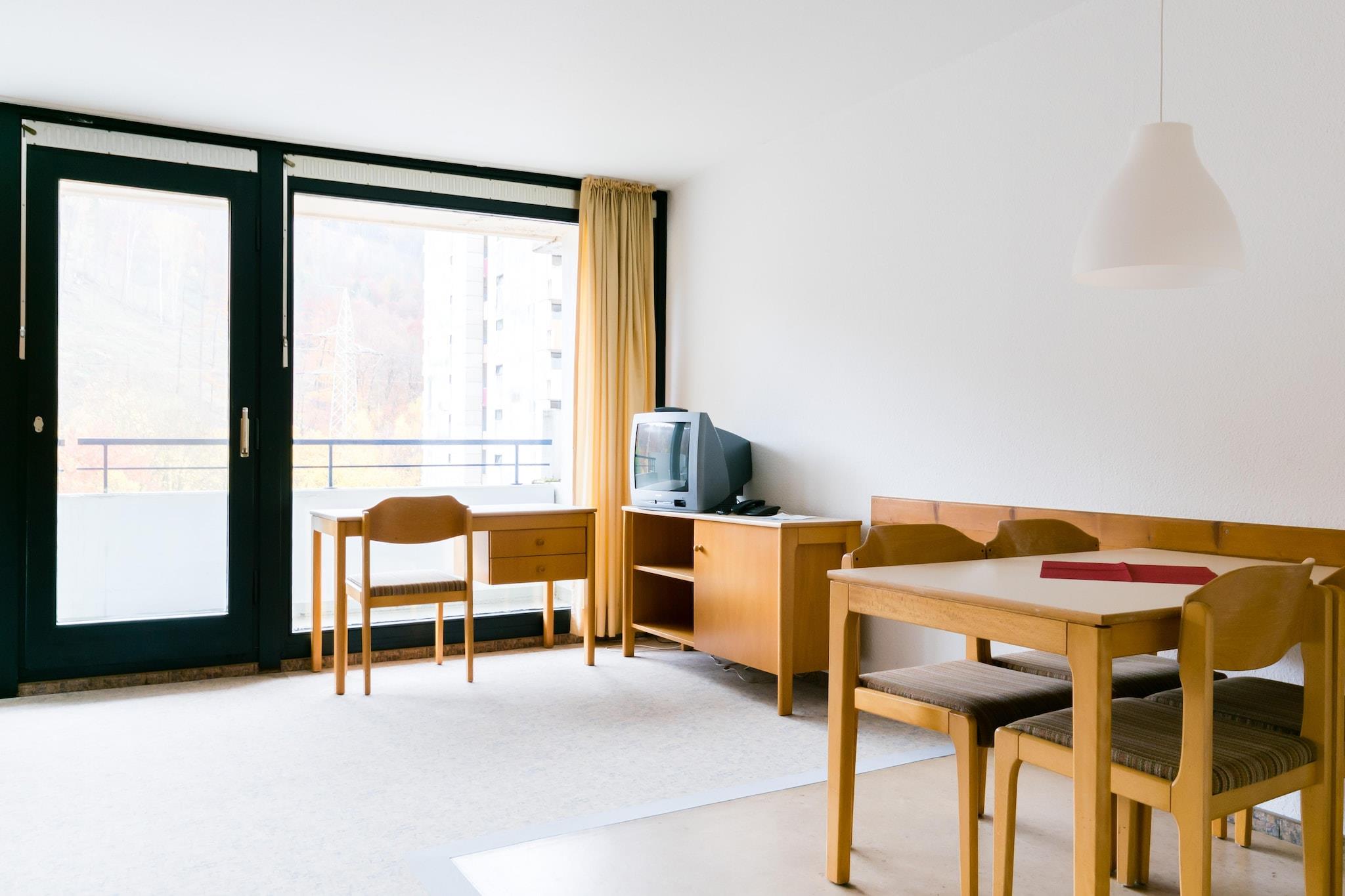 Åbent køkken(kogeplade(Komfur med fire kogeplader), elkedel, brødrister, kaffemaskine, køleskab), stue / spisestue(enkeltsovesofa, enkeltsovesofa, Fjernsyn(fladskærm, parabol), spisebord), soveværelse(enkeltseng, enkeltseng), badeværelse(bruser, håndvask, toilet), Massage, Restaurant, Indendørs legeområde, Børneklub, sauna(deles med andre gæster, betalt), balkon, havemøbler, parkering, swimmingpool(deles med andre gæster, opvarmet, indendørs, inkl. separat børne swimmingpool (maks. dybde 50 cm)), elevator, Håndklæder/sengelinned (inkl.)