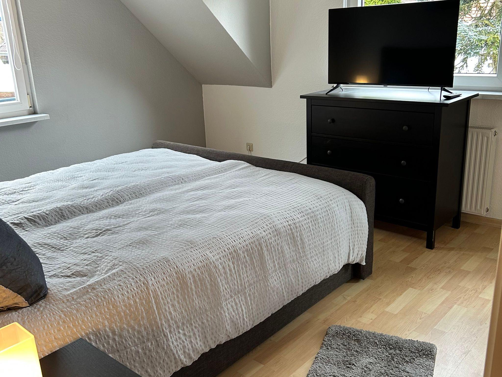 Die Wohnung bietet zwei Schlafzimmer: eines mit einem bequemen Doppelbett ( 1,80 m x 2,0 m) und Streaming-TV für entspannte Abende, das zweite mit zwei Einzelbetten ( 0,90 m x 2,0 m ) - ideal für Kinder und Freunde. Im hellen Esszimmer können Sie gemeinsam speisen, während die voll ausgestattete Küche alles bereithält, was Sie zum Kochen brauchen. Egal ob Air Fryer, Eierkocher oder Rührgerät: hier finden Sie alles, um Ihre Familie mit Leckereien zu verwöhnen.