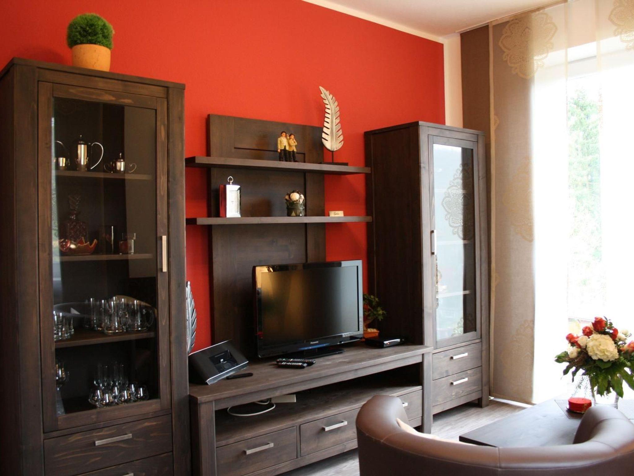 Ein wunderschön gestaltetes Wohnzimmer mit Schlafcouch, Essecke und Flachbild-Sat-TV lädt zum Verweilen ein. Die gemütliche Couch im Wohnzimmer lässt sich schnell zu einem Bett (1.60x2.00m) verwandeln.