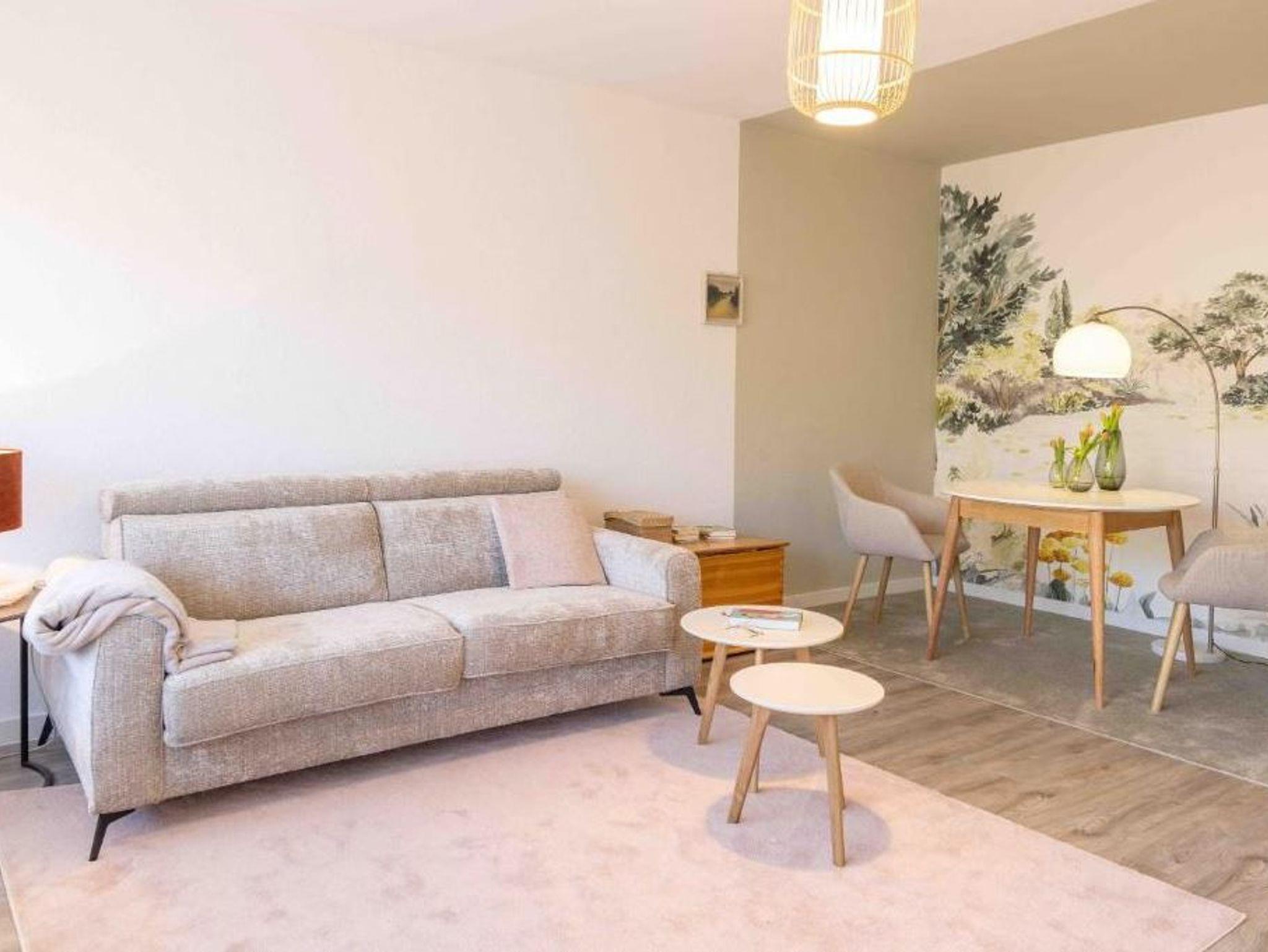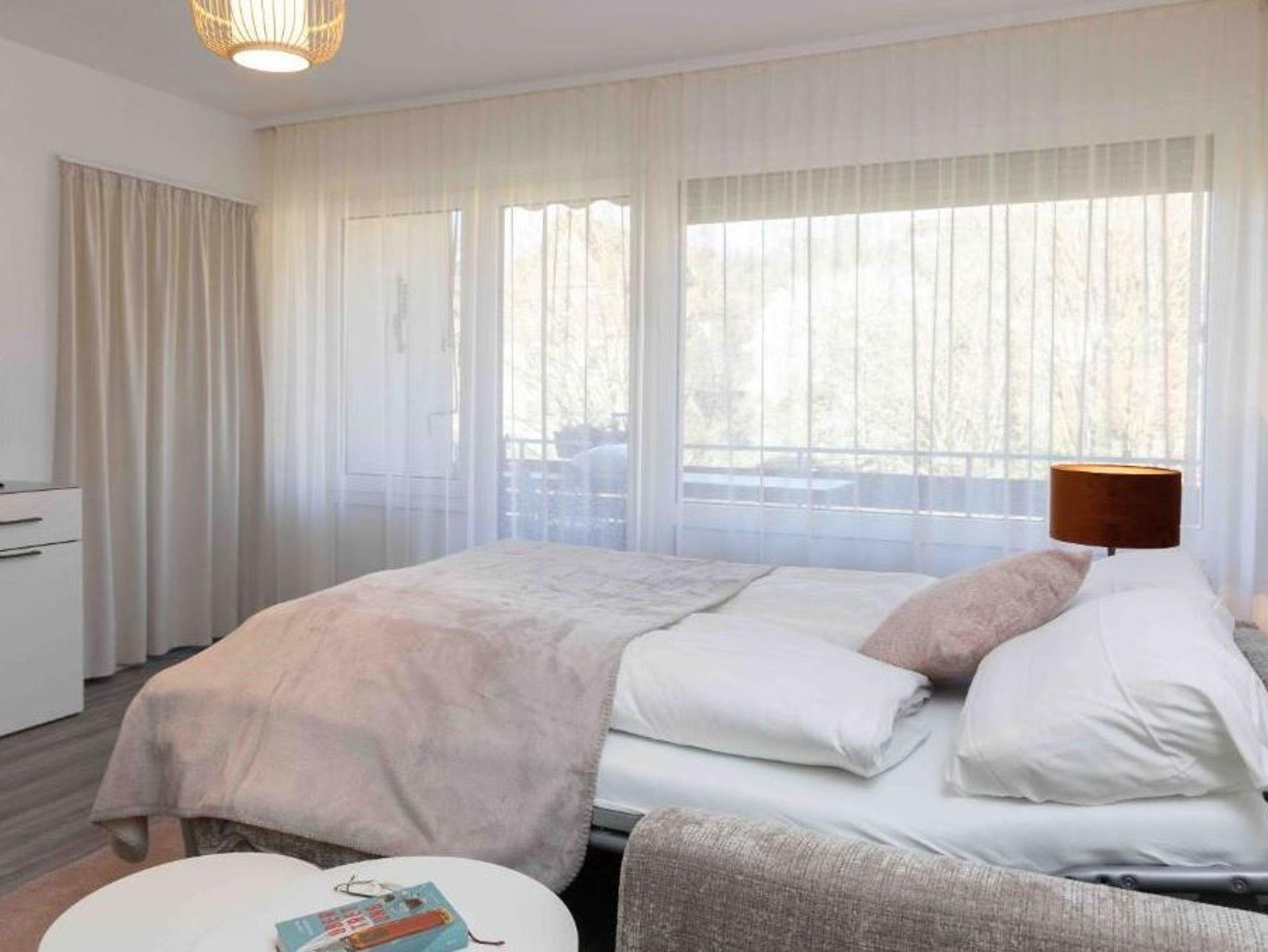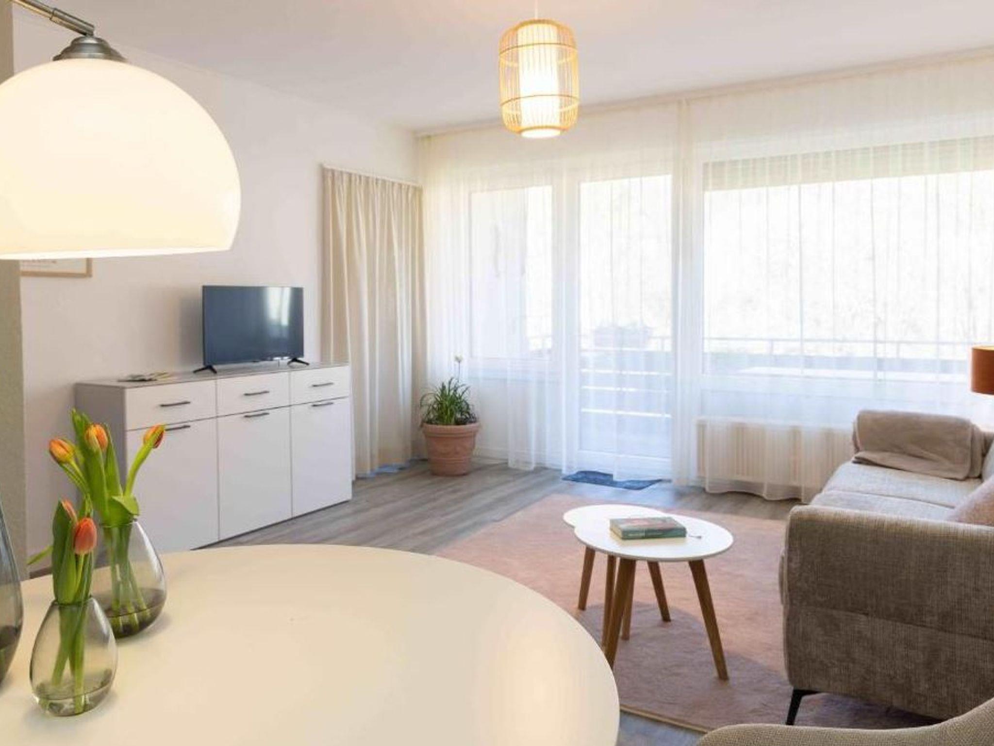 Das Apartment ist komplett renoviert und verfügt über eine neue Einbauküche mit Spülmaschine, Mikrowelle und Dunstabzugshaube, was das Kochen sehr angenehm macht. Die Wohnung ist eine Nichtraucherwohnung und hat einen schönen Design-Vinyl-Belag in heller Eichenoptik, der für eine freundliche Atmosphäre sorgt. Der großzügige Balkon mit Blick ins Grüne ist Entspannung pur,, während die große, helle Fensterfront mit elektrischen Rollos viel Licht ins Apartment lässt. Das renovierte Bad mit Dusche und WC ist modern gestaltet, und die neuen Böden im gesamten Apartment sorgen für ein einheitliches, hochwertiges Ambiente. Der großzügige Flur mit raumhohem Spiegel schafft zusätzlichen Raum, und das bequeme hochwertige Schlafsofa (160x200) bietet eine angenehme Schlafmöglichkeit.