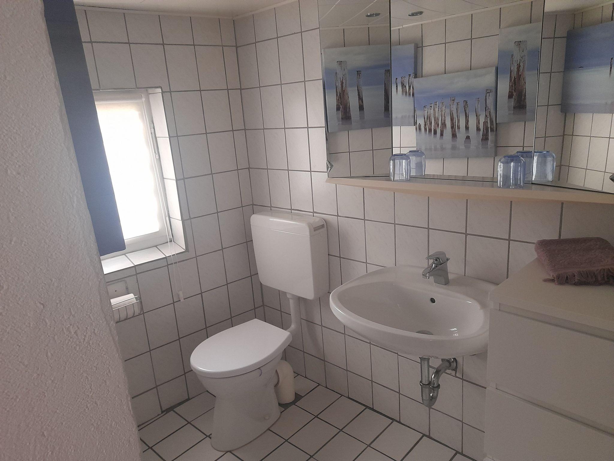Die helle, geräumige Ferienwohnung besteht aus Flur, Wohnzimmer, Küche und 2 Schlafzimmern. An eines davon schließt direkt ein kleines Bad mit WC und Waschbecken an. Darüber hinaus gibt es weiteres großes Bad mit Badewanne, separater Dusche, Waschtisch und WC.