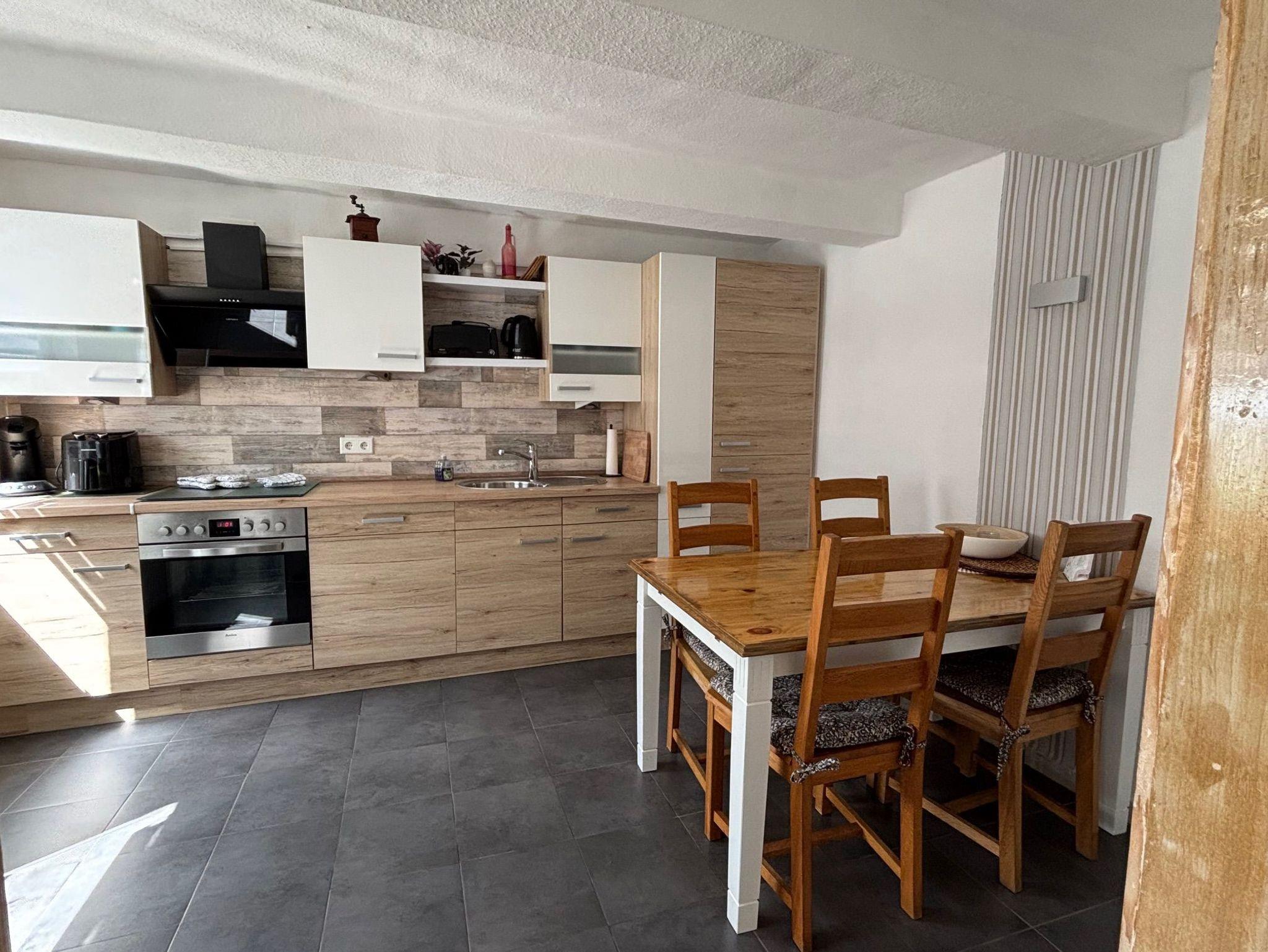 Die neue, moderne Küche lässt keine Wünsche offen. Mit Herd, Backofen, Mikrowelle, Geschirrspüler, Kaffeemaschine, Kühlschrank und Tiefkühlmöglichkeit ist sie mindestens so gut ausgestattet, wie Sie das von zu Hause kennen. In der Küche befindet sich auch ein Eßplatz für bis zu 4 Personen.