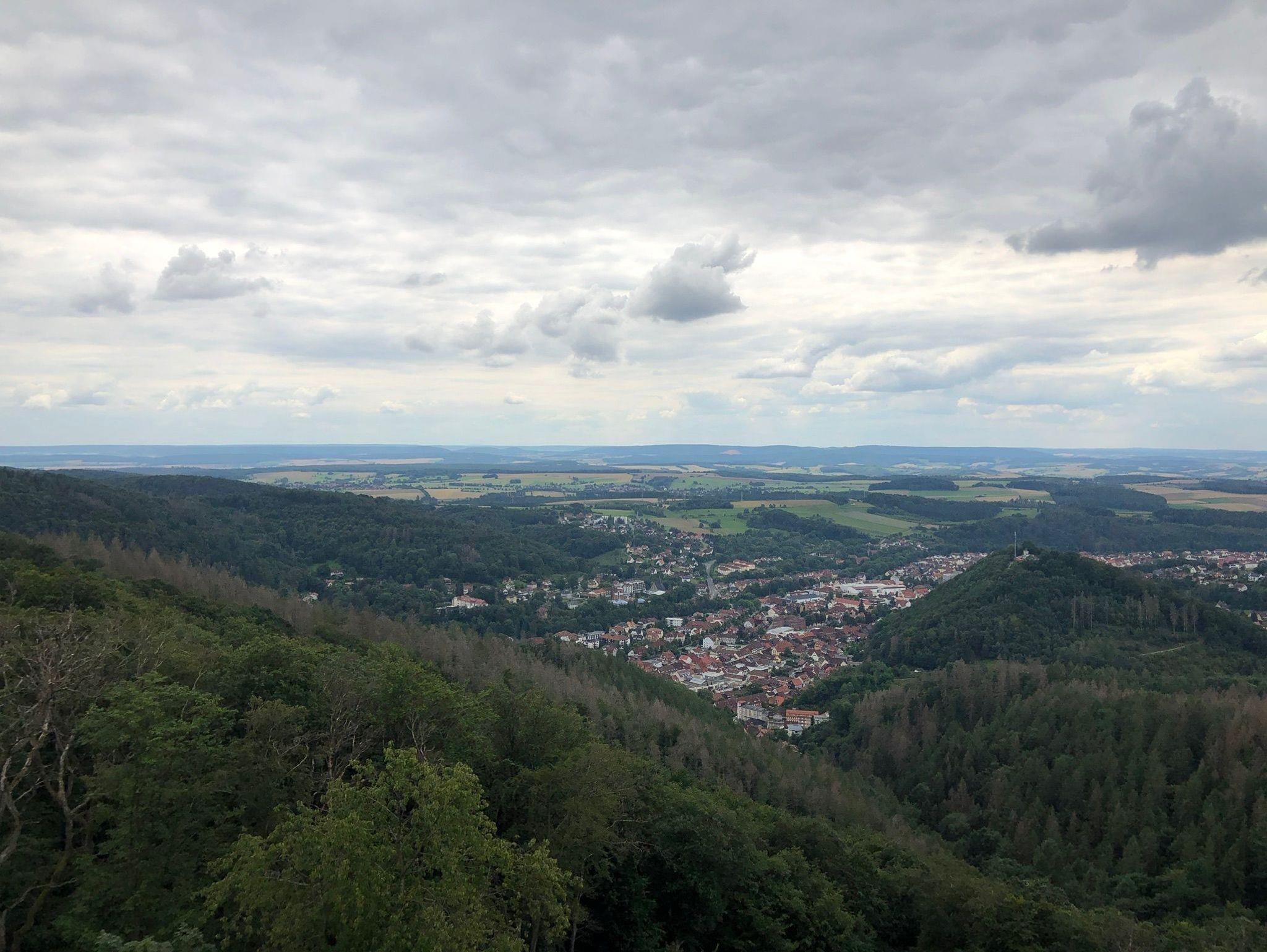 Von hier aus genießen Sie einen atemberaubenden Blick auf den Hausberg, den Bismarckturm sowie die beeindruckende Berglandschaft des Harzes.