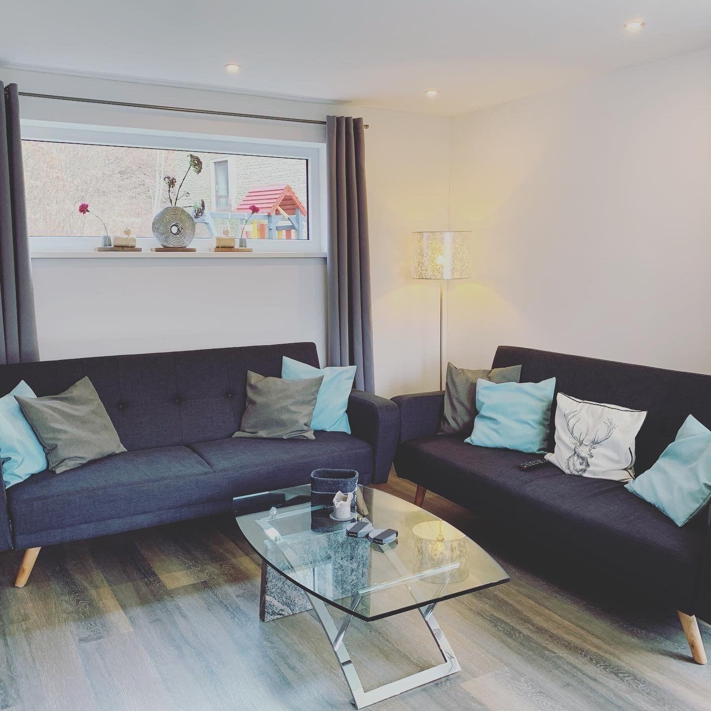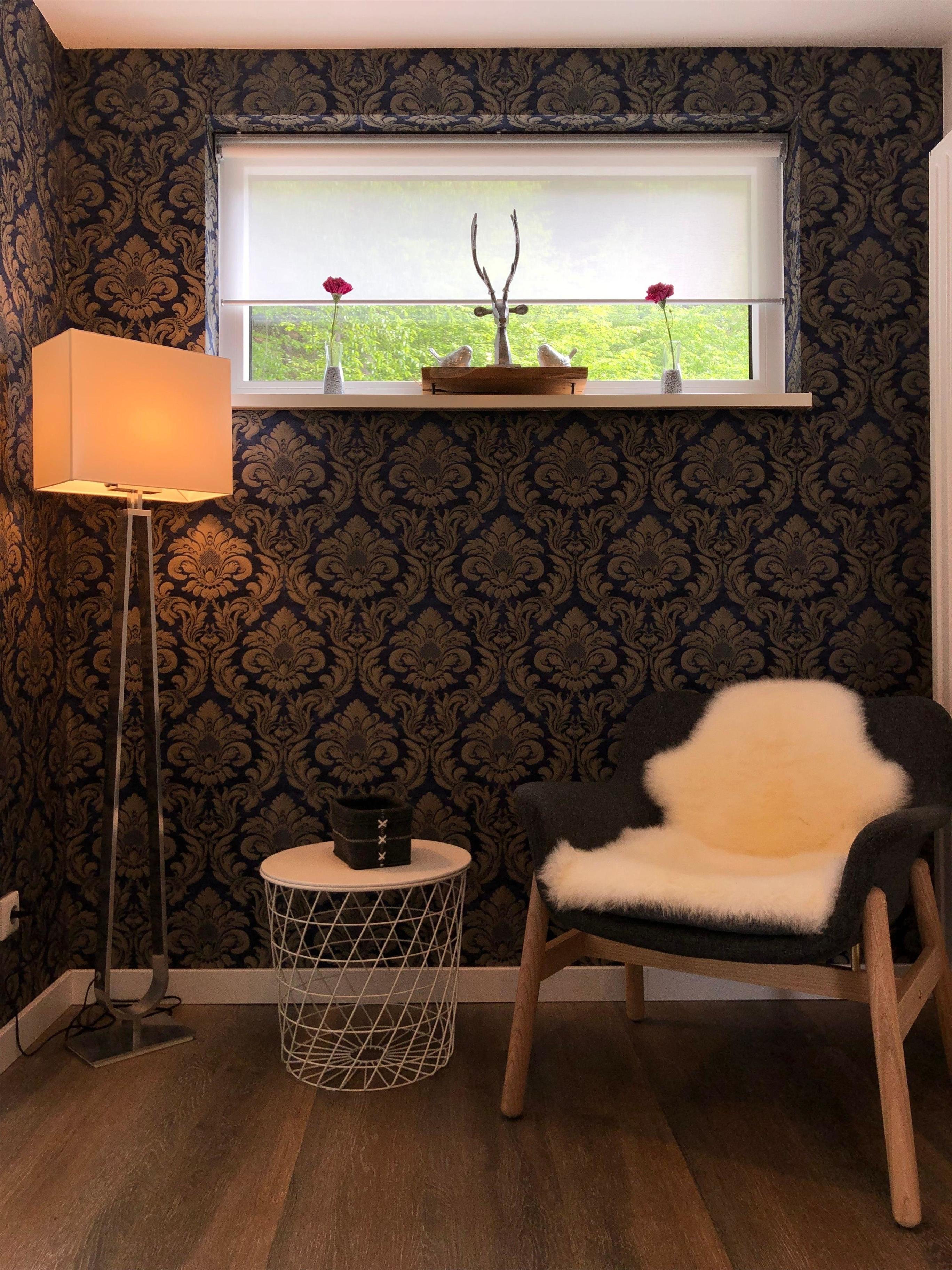 Die Ausstattung: Ein großes Wohnzimmer (ca.22m²), mit großen Panoramafenstern, bietet einen schönen Ausblick auf die umgebende Natur mit seinen Bewohnern.