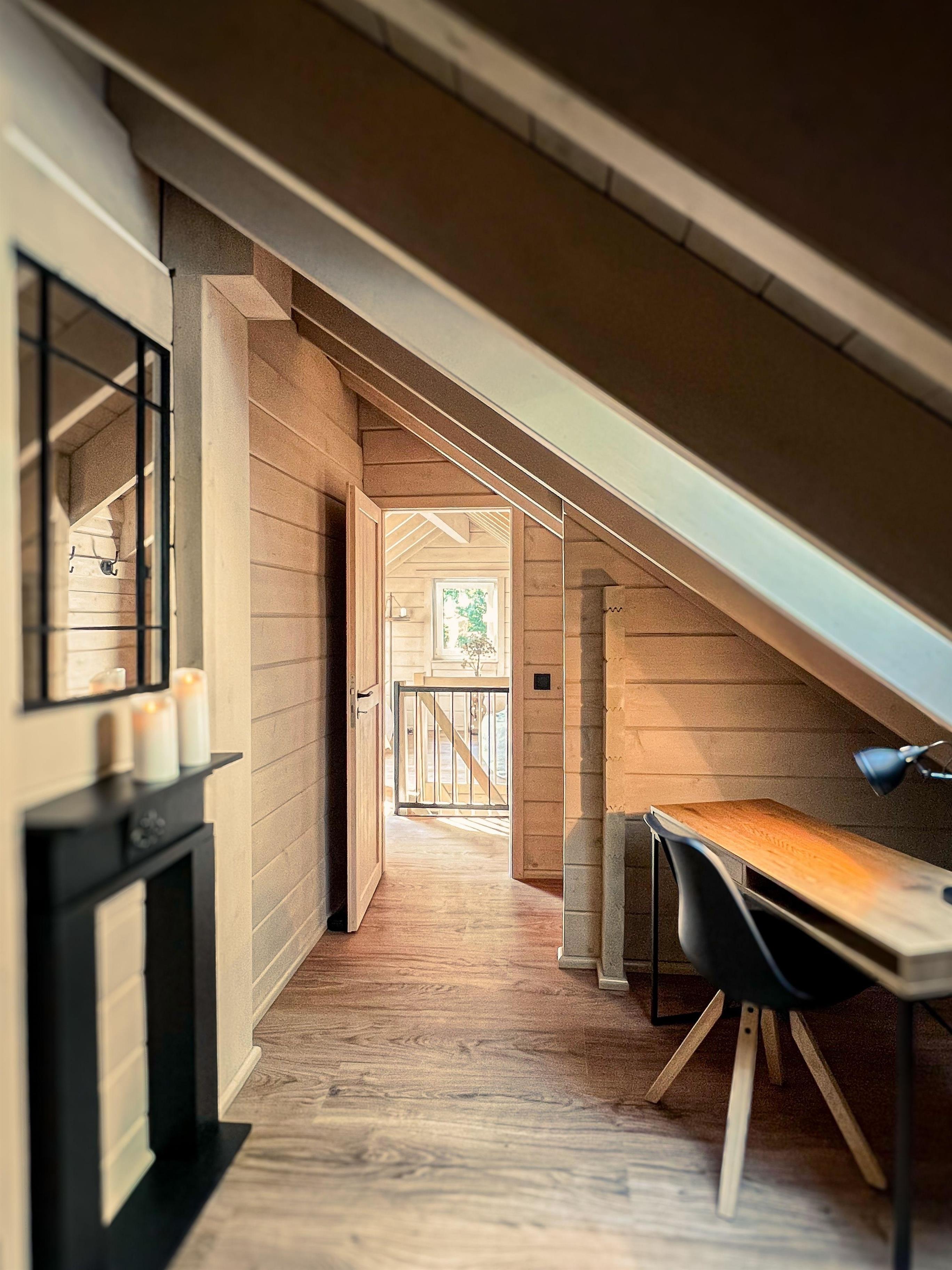 Das Ferienhaus besticht durch seine außergewöhnlichen Besonderheiten, die Ihren Aufenthalt unvergesslich machen. Ein von drei Seiten einsehbarer Kaminofen sorgt für wohlige Wärme und eine gemütliche Atmosphäre. Entspannen Sie in der finnischen Sauna und lassen Sie den Alltagsstress hinter sich. Auf dem überdachten Balkon bzw. der Terrasse können Sie bei jeder Wetterlage grillen und es sich auf den bereitgestellten Liegen im Außenbereich bequem machen. Der herrliche Holzduft, der durch die massive Holzbauweise entsteht, trägt zur Wohlfühlatmosphäre bei. Eine offene Galerie verleiht dem Haus zusätzlichen Charme und ein luftiges Raumgefühl.
