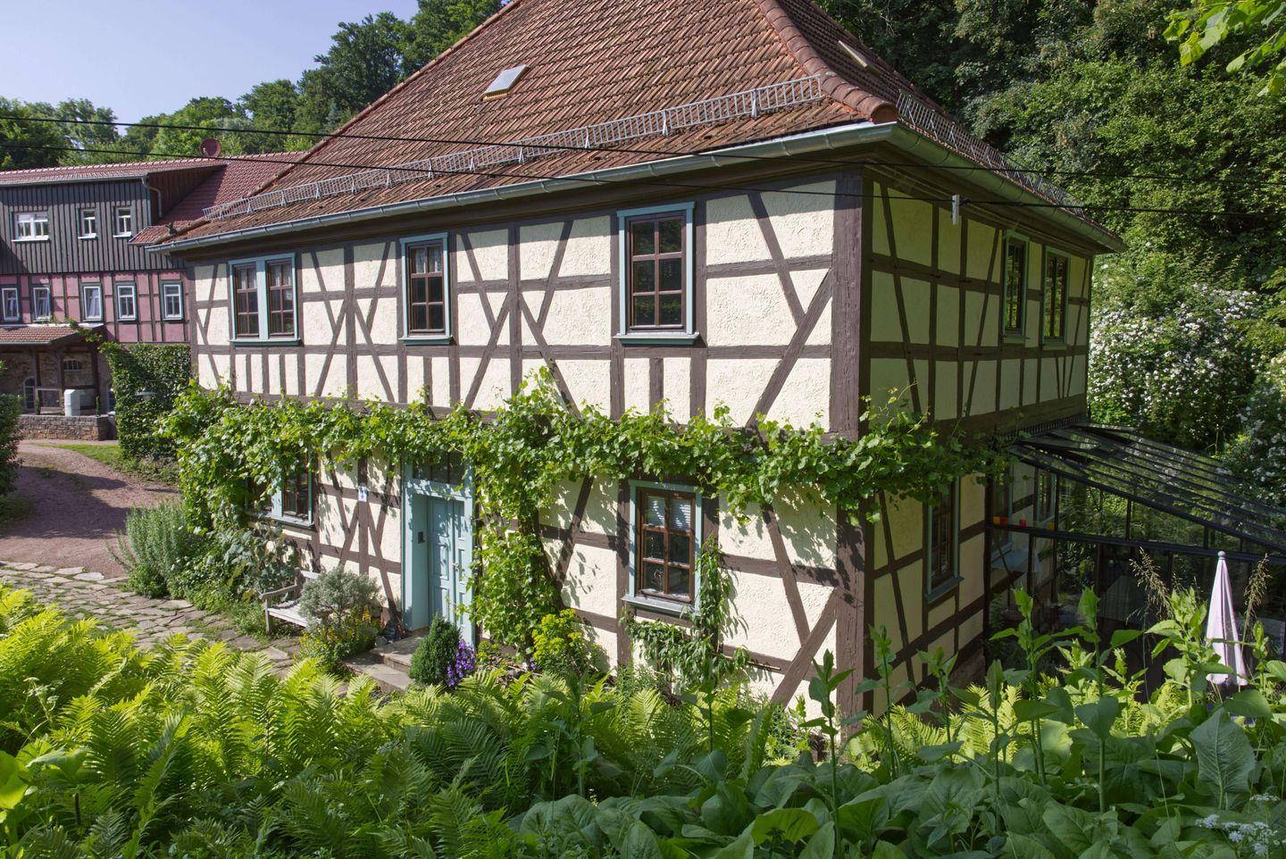 Die Ferienwohnung "Parkblick" in der historischen Lindenmühle bietet Platz für bis zu 2 Erwachsene und 2 Kinder mit Aufbettung im Wohnzimmer. Eine offene Fachwerkwand trennt die gemütliche Wohnküche vom Wohnbereich. Kostenfreies WLAN steht zur Verfügung. Im wildromantischen Garten laden Freisitze, ein Grillplatz und der Forellenteich zur Erholung ein. Die Lage direkt am Altensteiner Park ist perfekt für Wanderer und Naturliebhaber.