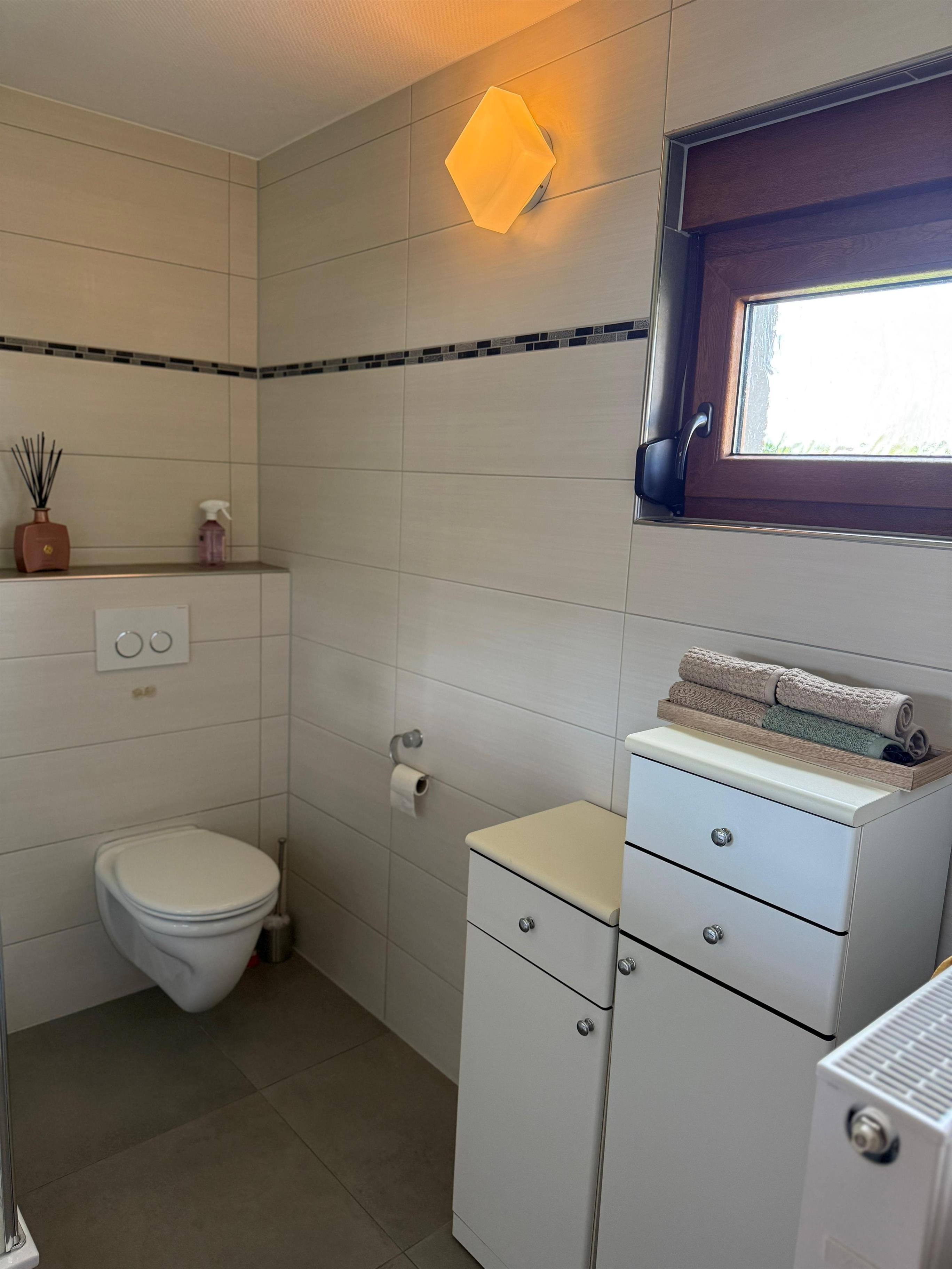 Das Wohnzimmer war ein weiteres Highlight unseres Aufenthalts. Der riesengroße Esstisch bot Platz für mindestens 8 Personen und war perfekt für unser Gesellschaftsspiele-Wochenende. Wir haben die gemeinsamen Abende sehr genossen, und der große Tisch sorgte für eine gesellige Atmosphäre.