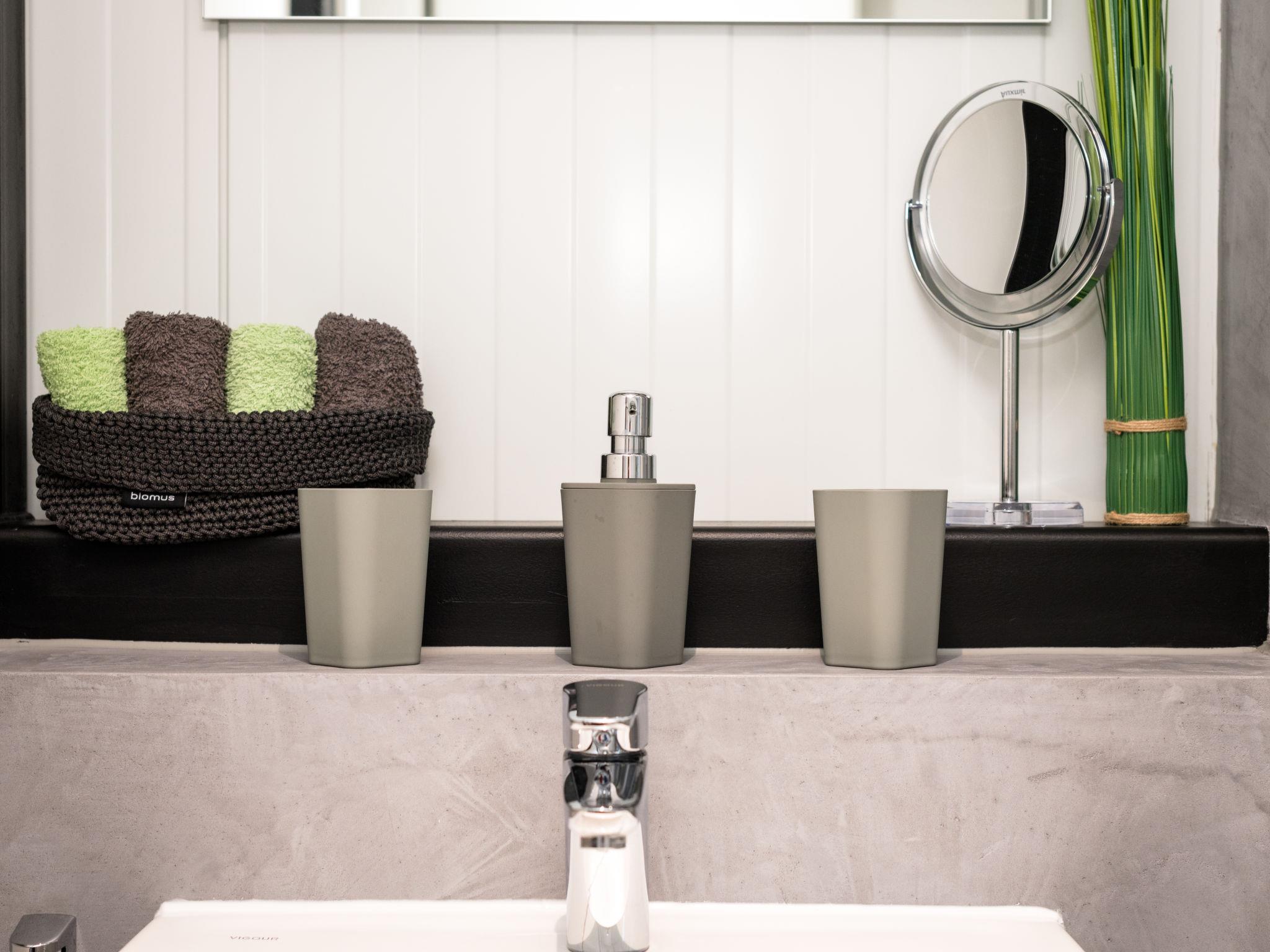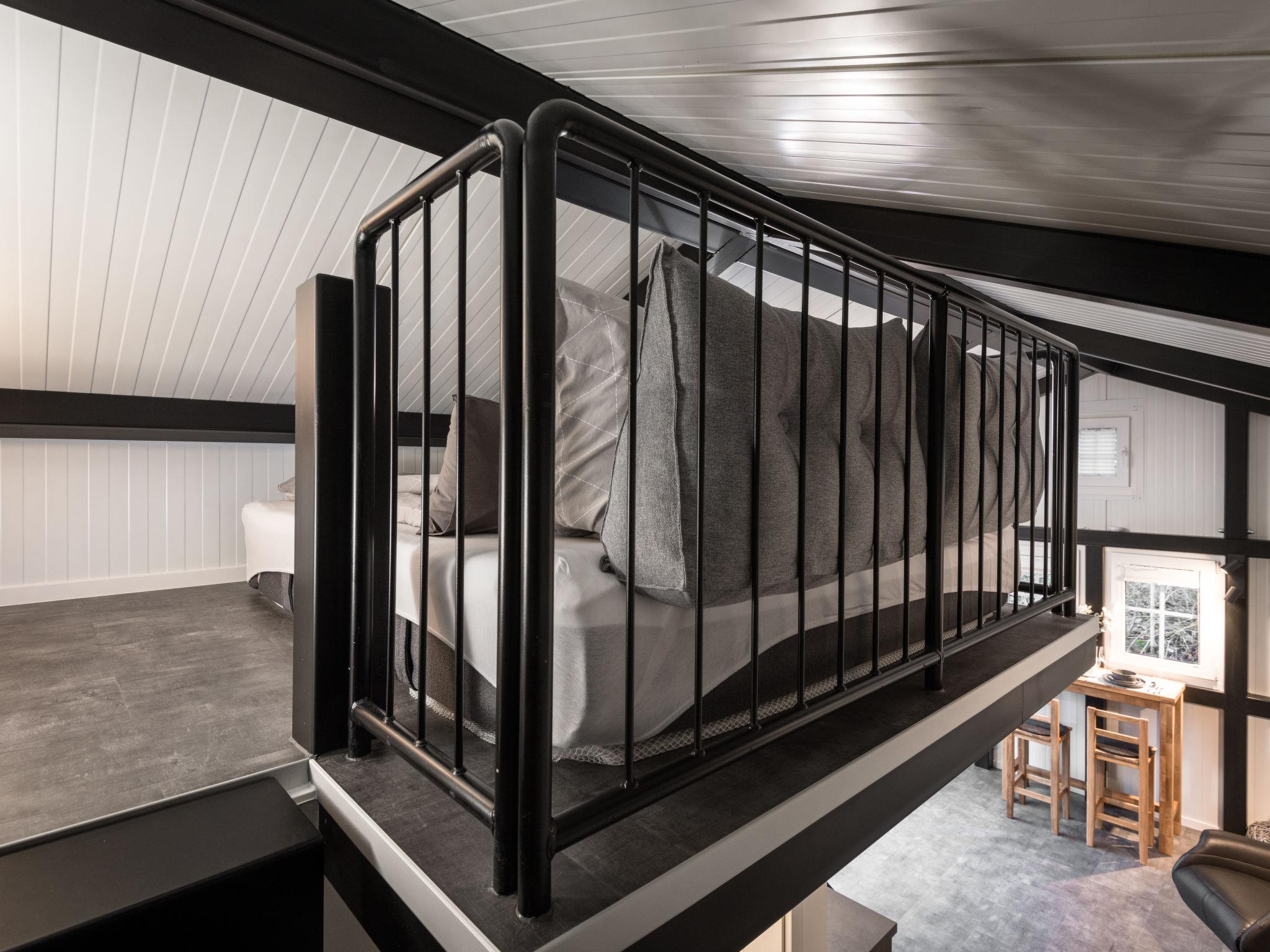 "Tiny Haus Westerwald 16 Red", 1-room house 28 m2. Modern and cosy furnishings: living/dining room, on 2 levels with TV. Exit to the terrace. Open gallery with sloping ceilings, ceiling height 1 - 120 cm, without wardrobe with 1 double bed (160 cm, length 200 cm). Kitchenette (2 ceramic glass hob hotplates, toaster, kettle, electric coffee machine). Shower/WC. Terrace. Terrace furniture. Parking at the house. Please note: non-smoking house. Smoke alarm. Instead of an enclosed bedroom, some sleeping areas are located in an open-plan area (gallery, alcove, etc.).