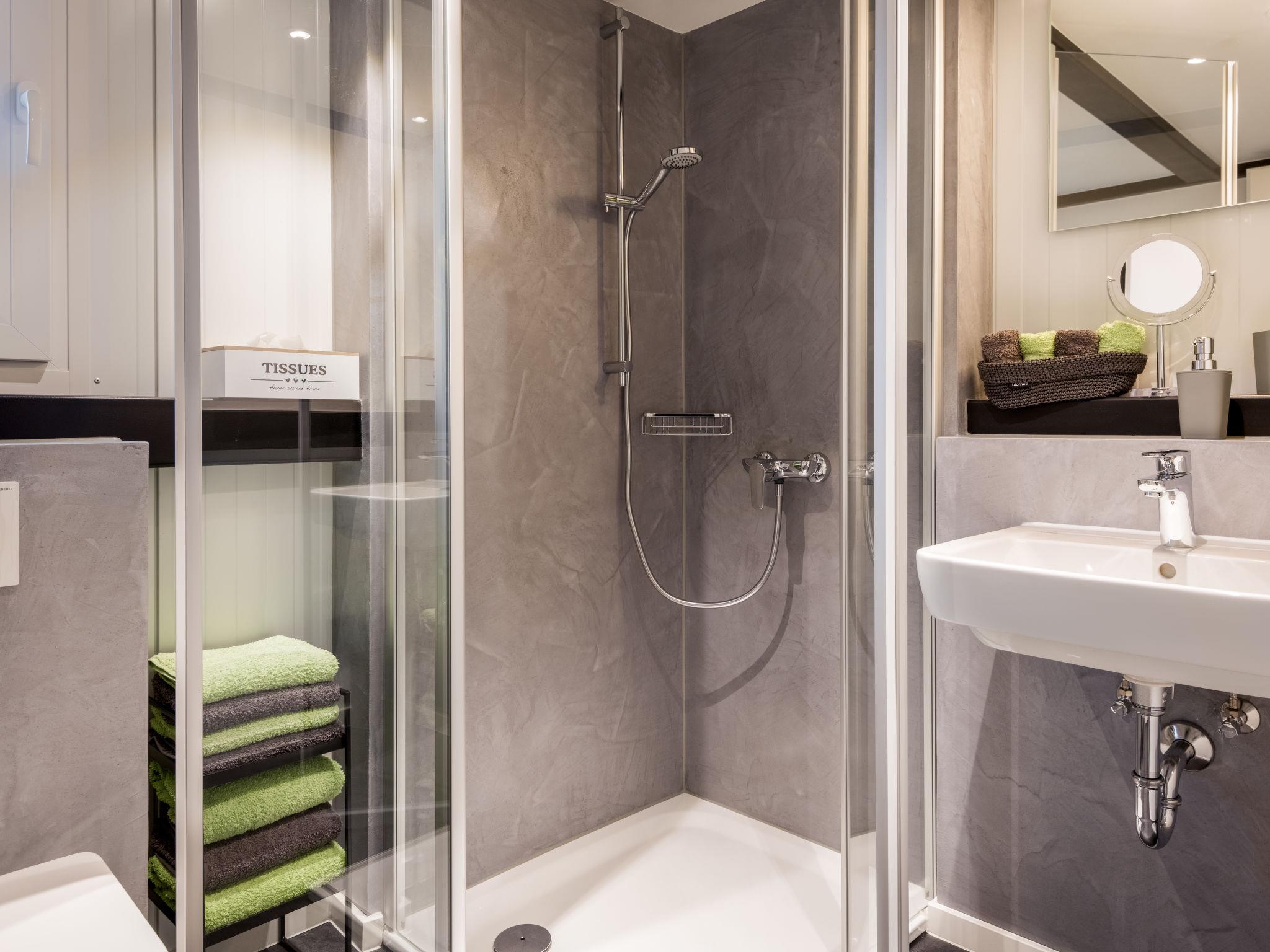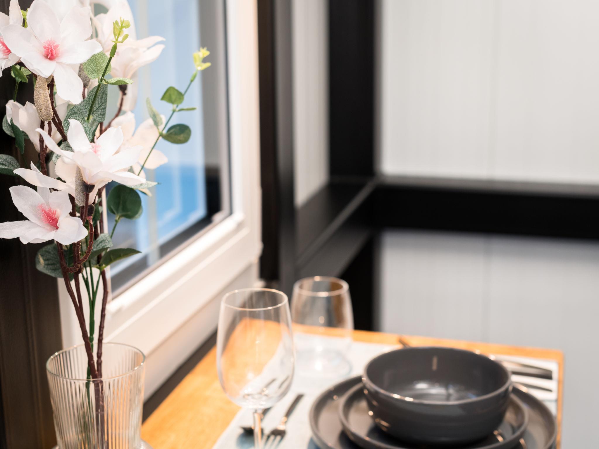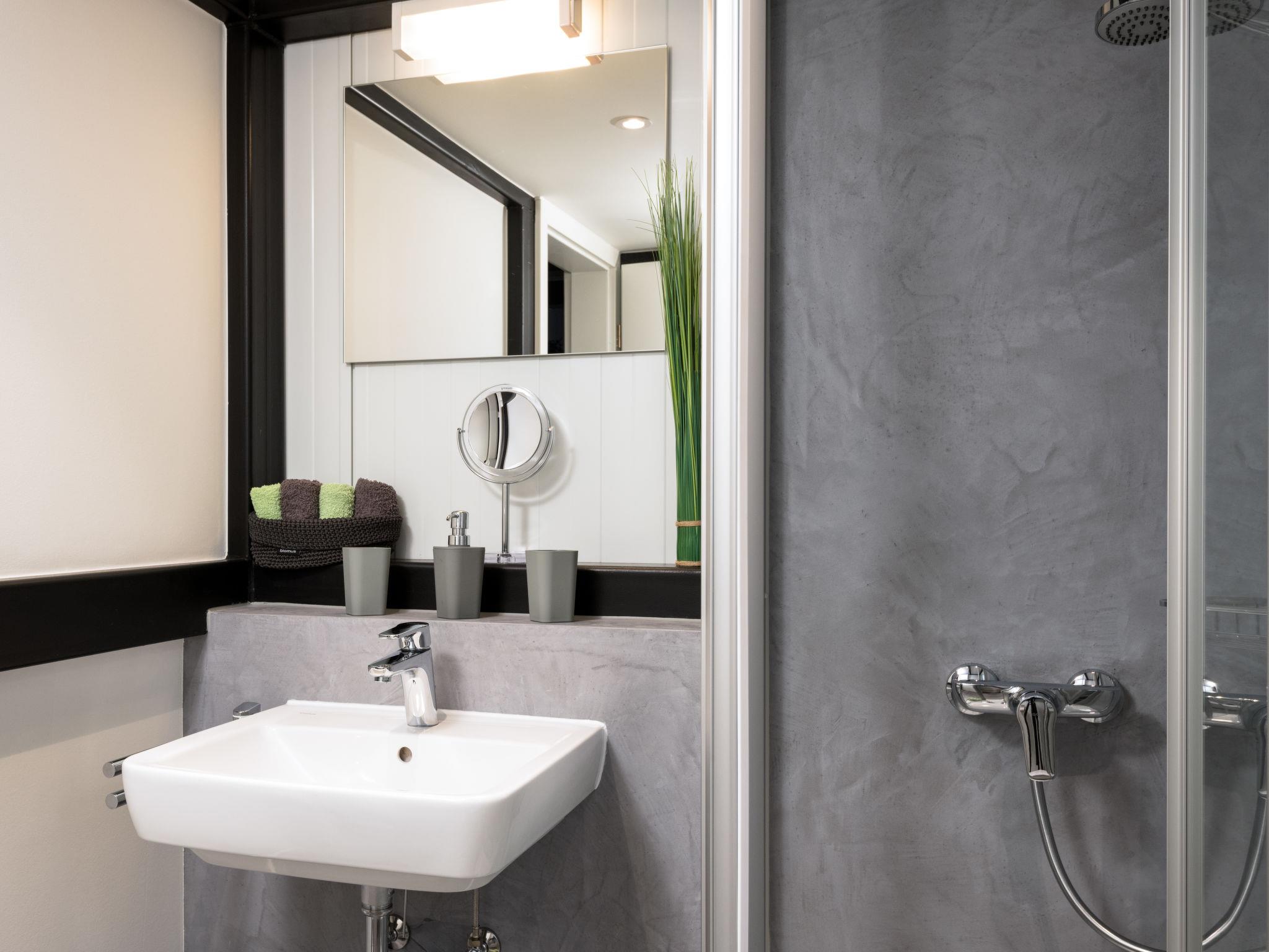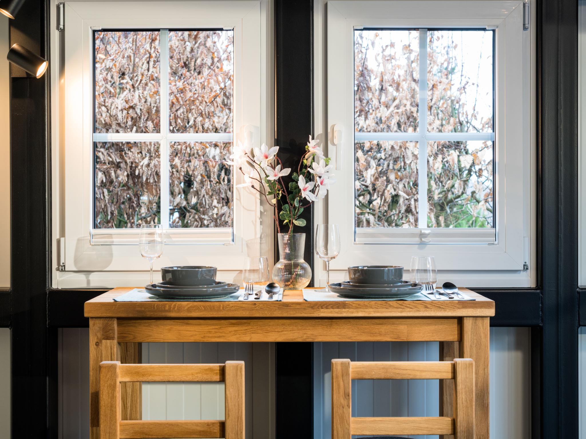 "Tiny Haus Westerwald 16 Green", 1-room house 28 m2. Modern and cosy furnishings: living/dining room, on 2 levels with TV. Exit to the terrace. Open gallery with sloping ceilings, ceiling height 1 - 120 cm, without wardrobe with 1 double bed (160 cm, length 200 cm). Kitchenette (2 ceramic glass hob hotplates, toaster, kettle, electric coffee machine). Shower/WC. Terrace. Terrace furniture. Parking at the house. Please note: non-smoking house. Smoke alarm. Instead of an enclosed bedroom, some sleeping areas are located in an open-plan area (gallery, alcove, etc.).