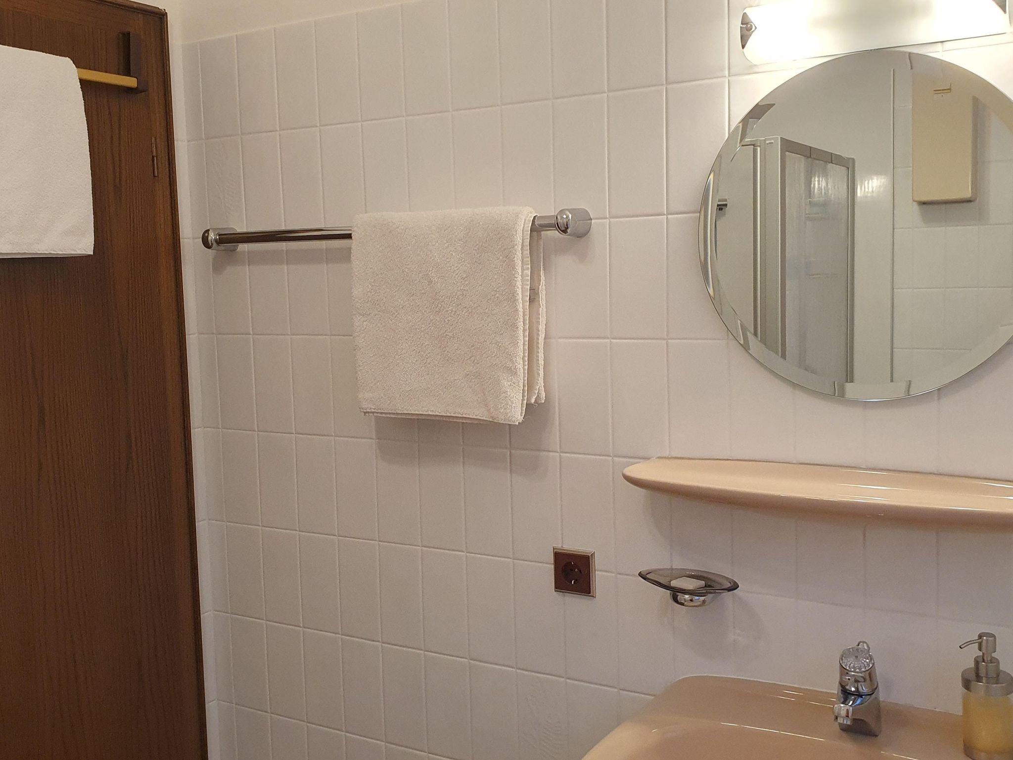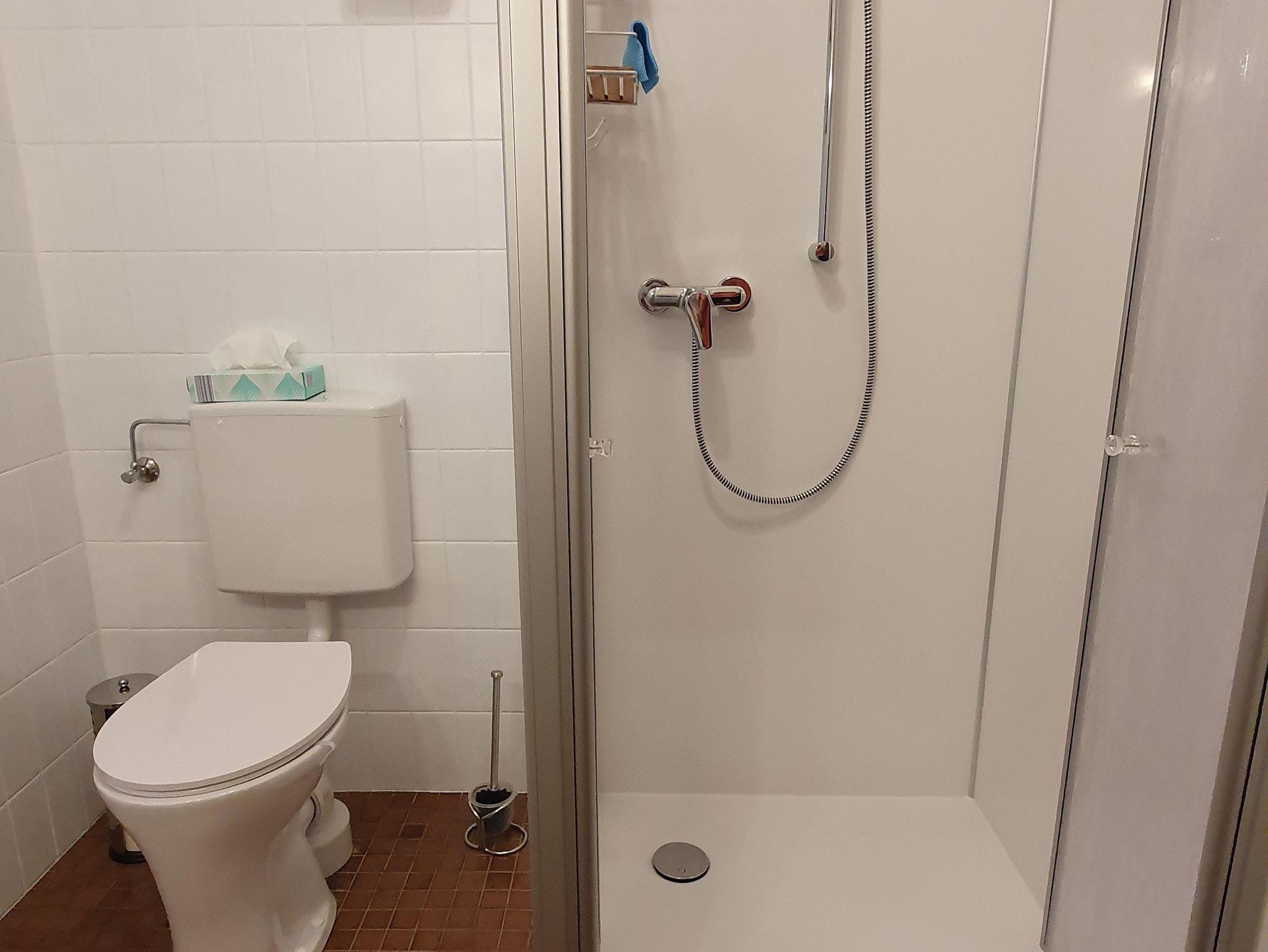 Die Dusche im angrenzenden Badezimmer ist ebenerdig ausgeführt.