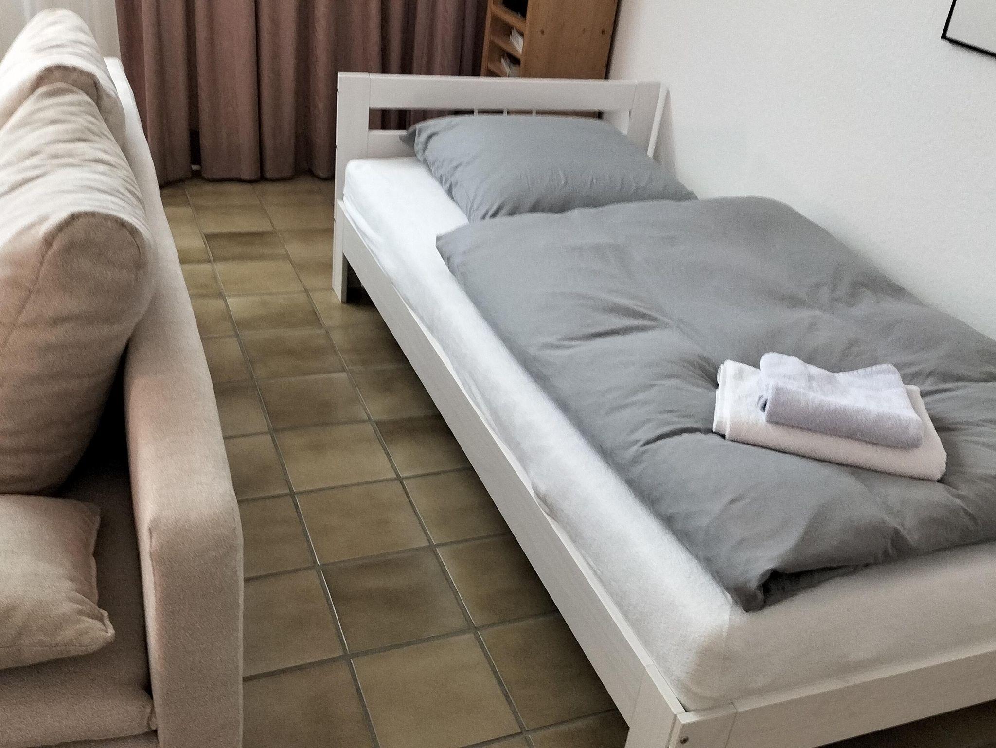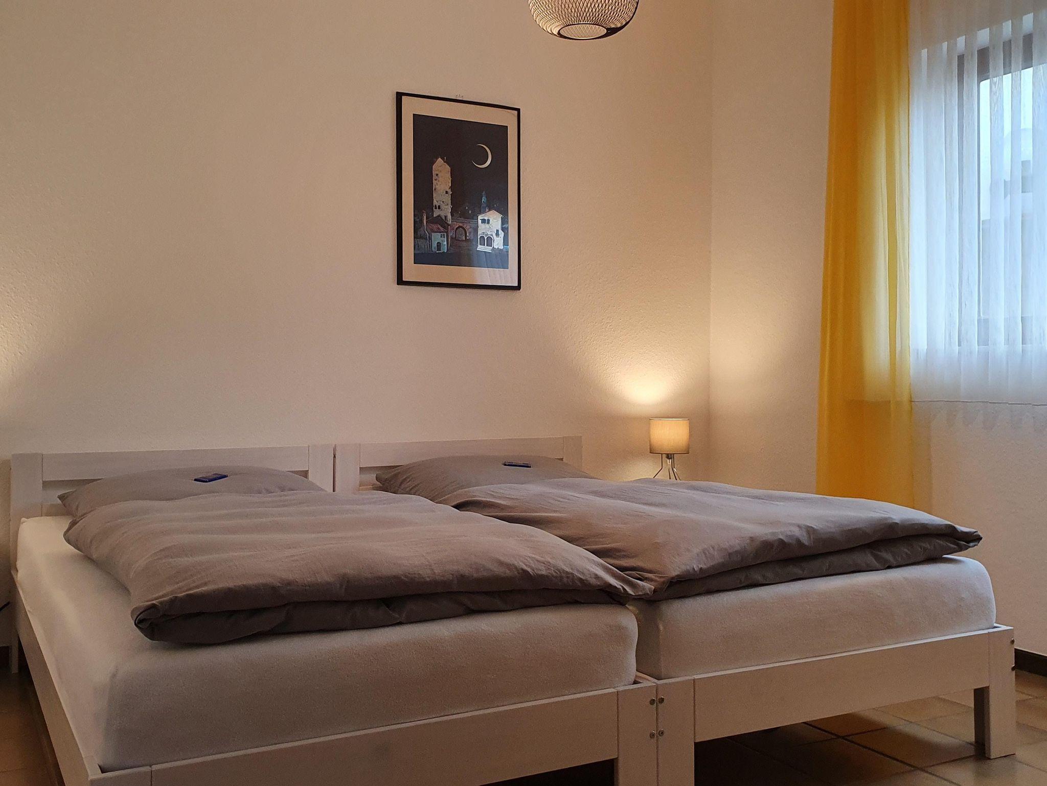 verbringen Sie die Nacht in zwei Einzelbetten ohne überstehende Fußteile.