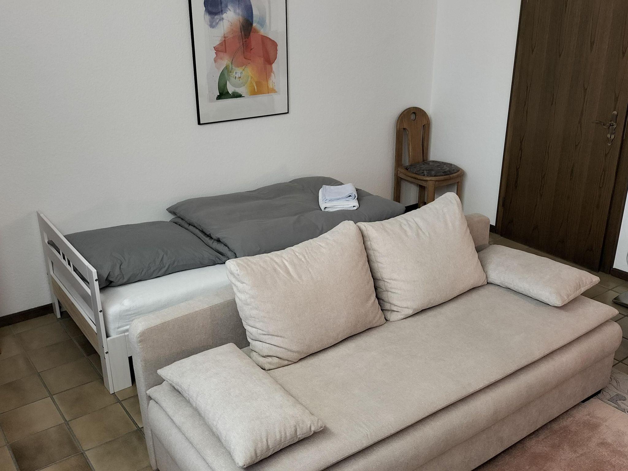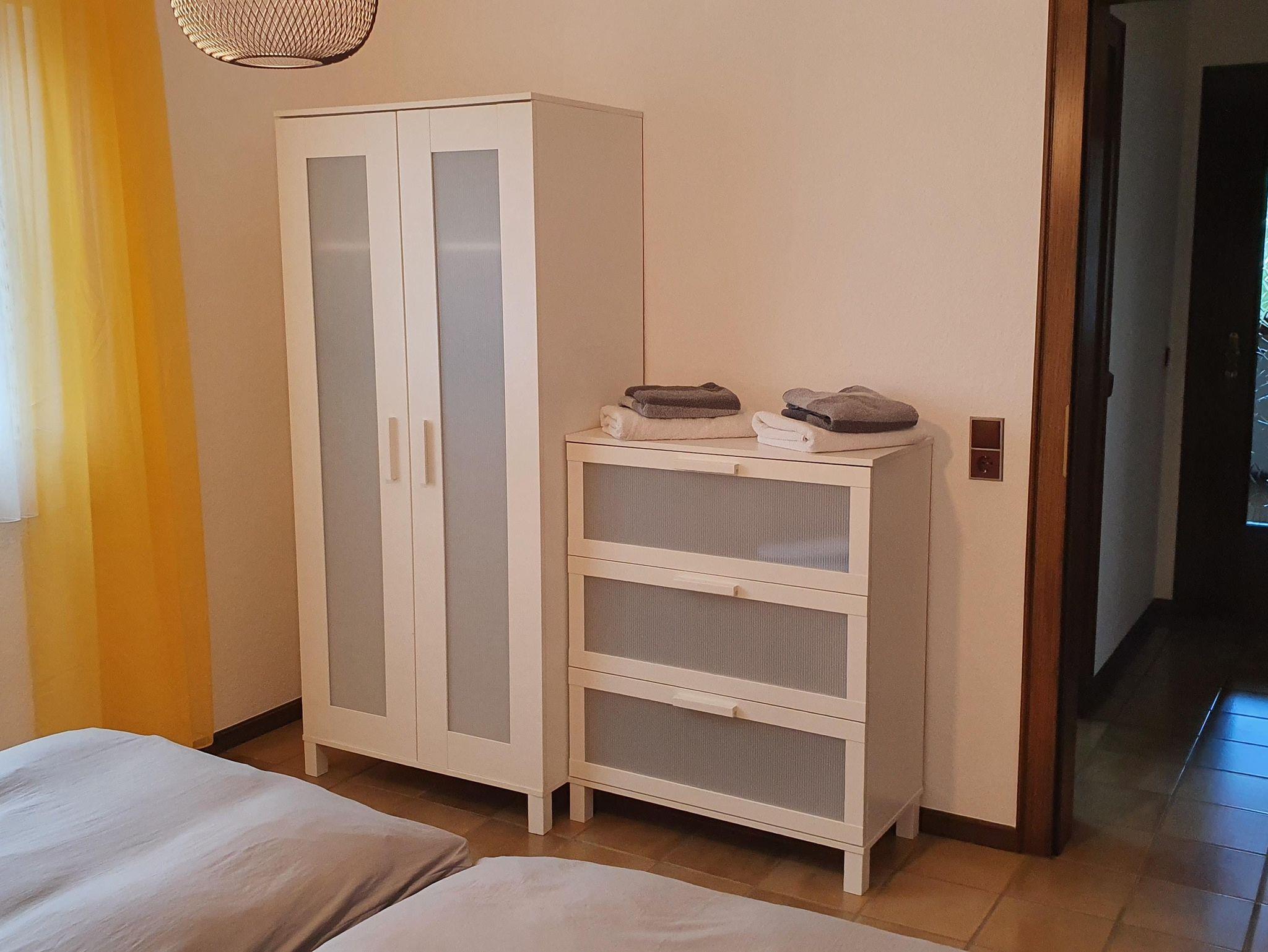 Ein Schrank und eine Kommode stehen Ihnen für Ihre Kleidung zur Verfügung.