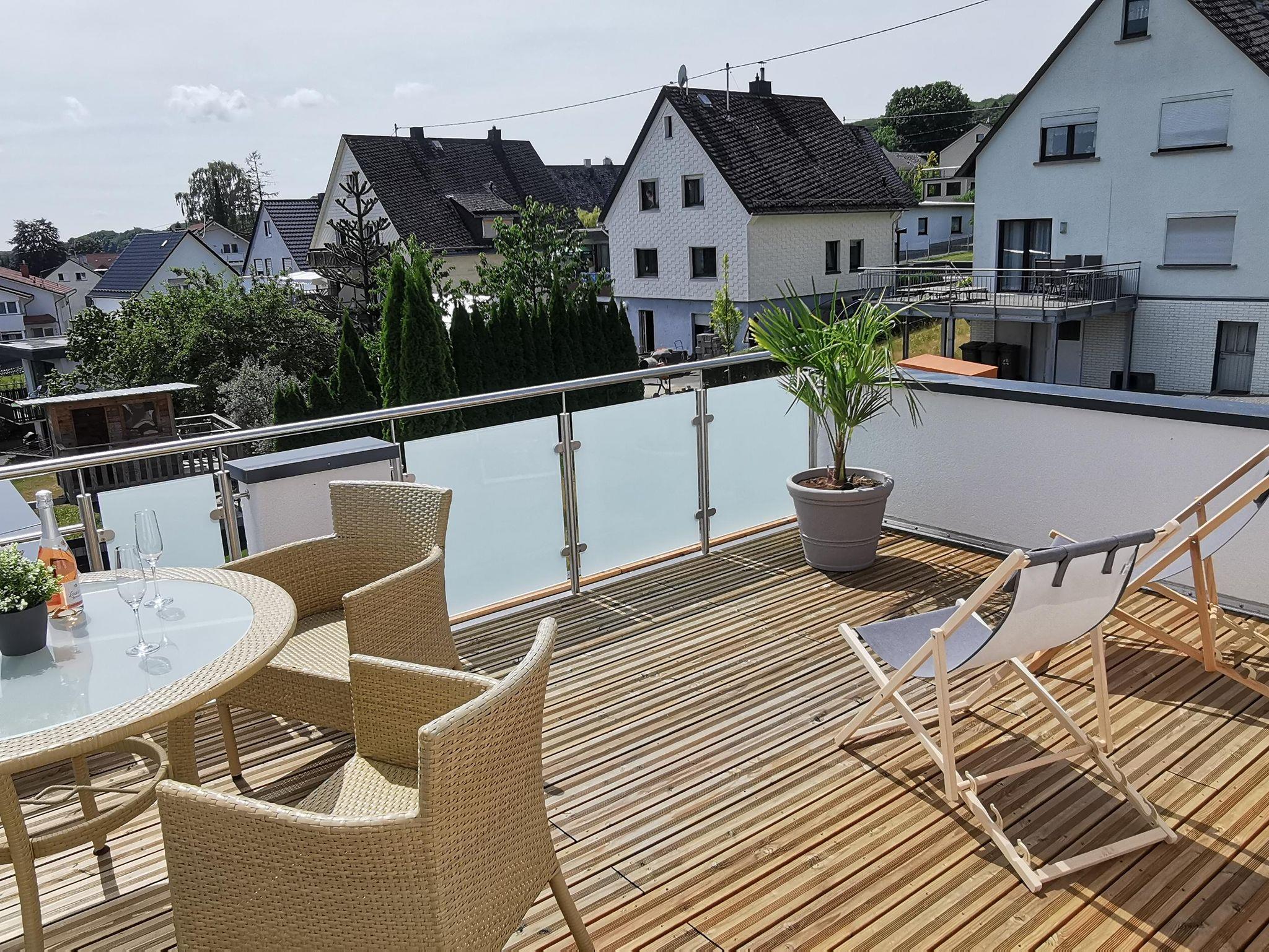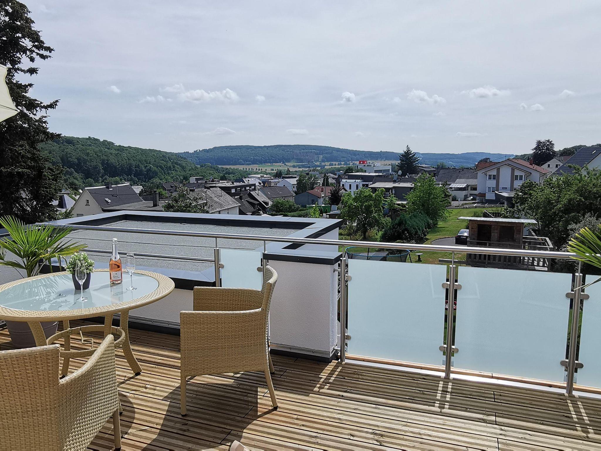 großzügigen, neu sanierten Balkon mit einer traumhaften Aussicht über Bad Marienberg.