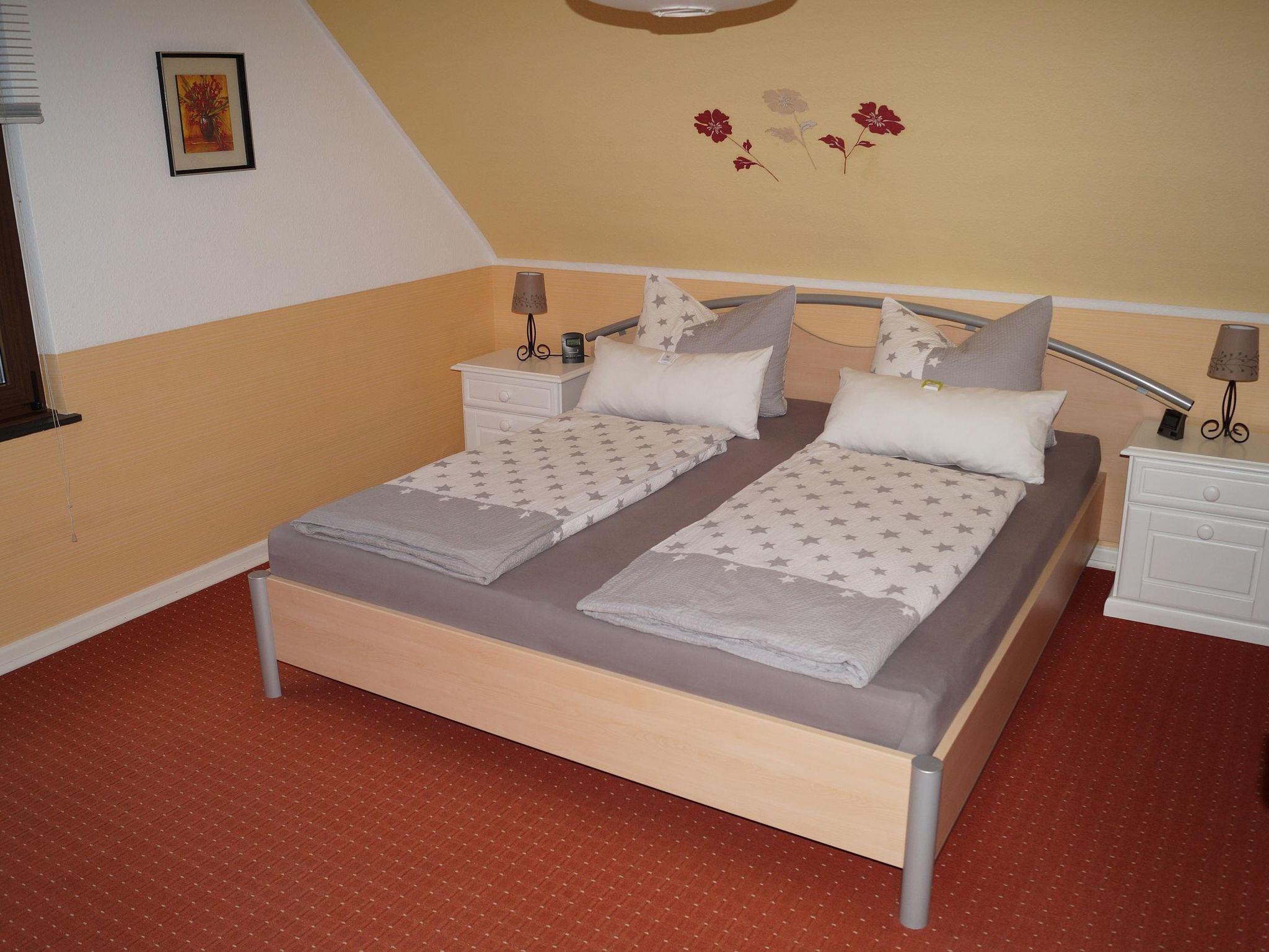 Ein großes Doppelbett steht im Schlafzimmer zur Verfügung.