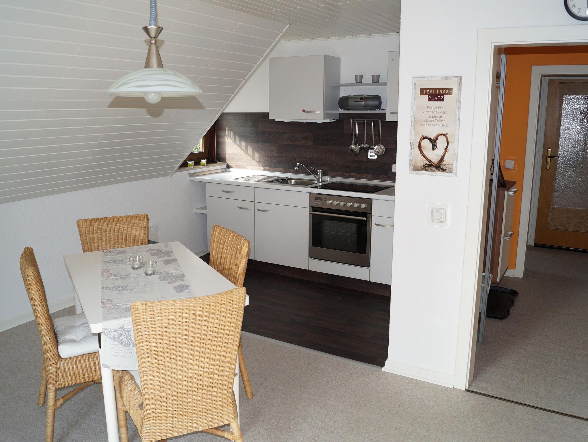 Die Ferienwohnung verfügt über eine komplett eingerichtete Küche mit Esszimmer.