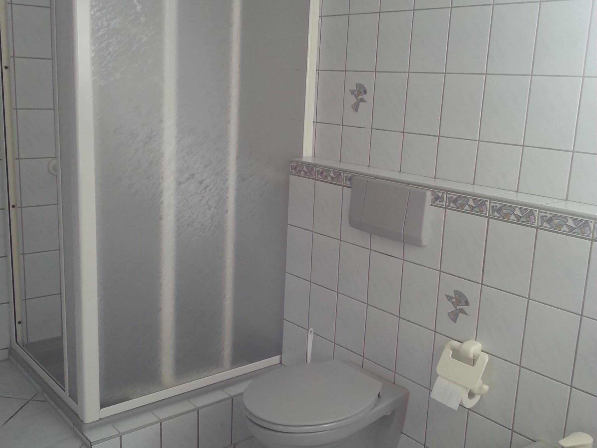 Badezimmer: Duschkabine, WC, Bidet, Waschbecken, Spiegelschrank, Handtuchheizkörper. Handtücher, Toilettenpapier & Hygieneartikel inklusive.