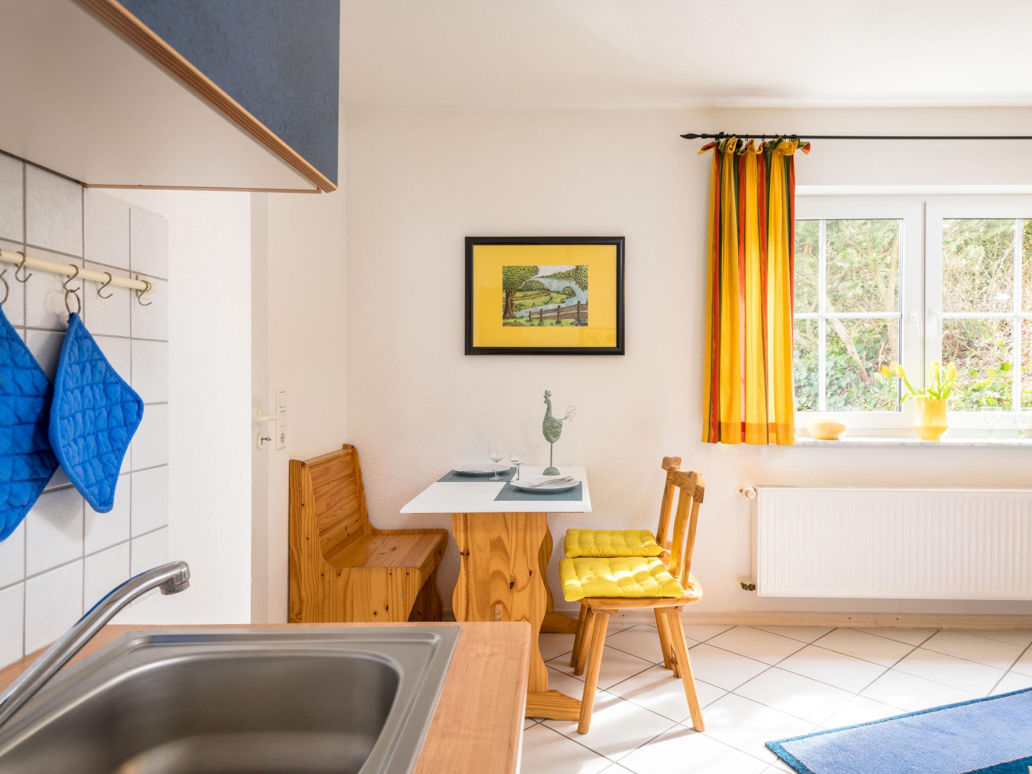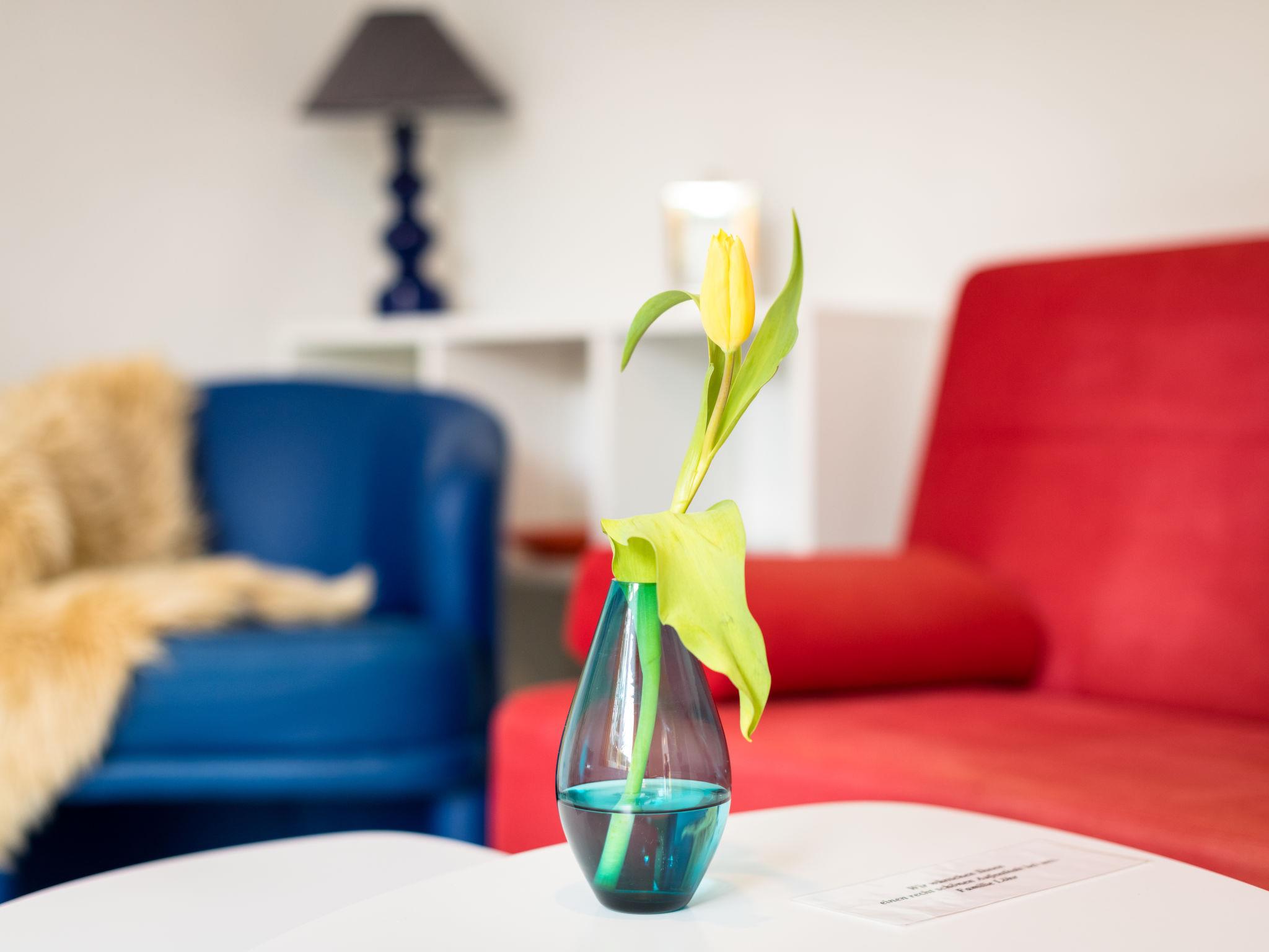 2-room granny flat 45 m2, on the lower ground floor. Modern and cosy furnishings: living/dining room with 1 sofabed, dining nook and satellite TV (flat screen), radio. 1 room with 2 beds. Kitchenette (2 hot plates, toaster, kettle, microwave, electric coffee machine). Shower/WC. Patio. Terrace furniture. Facilities: Internet (WiFi, free). Parking at the house. Please note: non-smokers only. Private entrance, smoke alarm, fire extinguisher. No pets allowed.