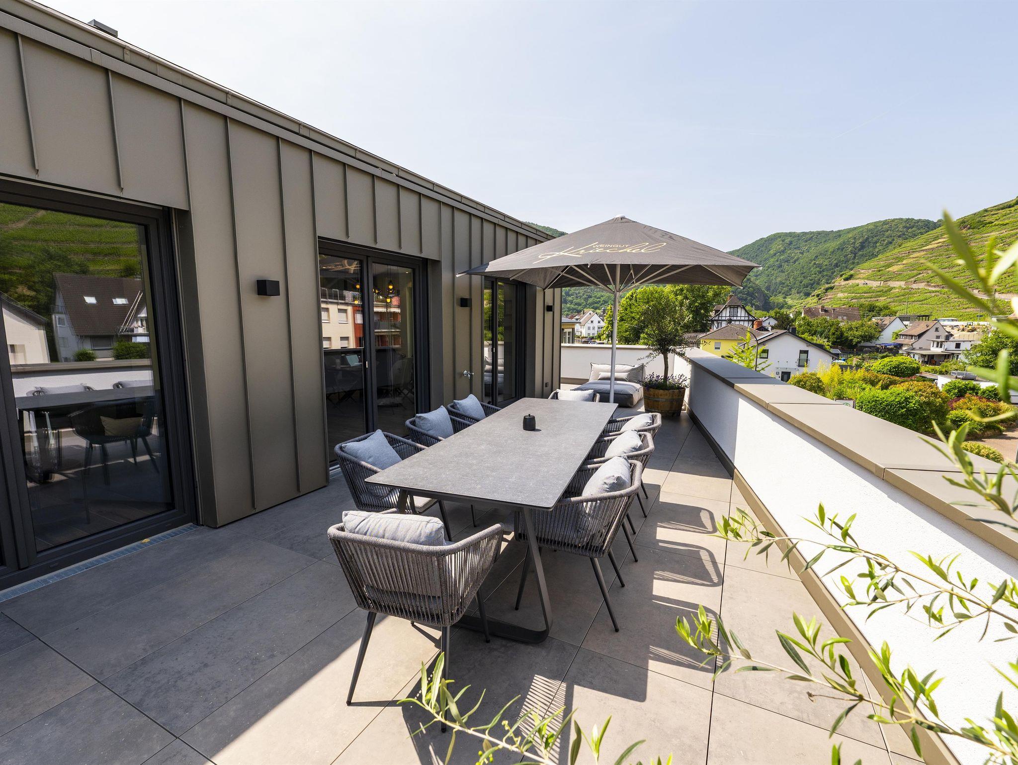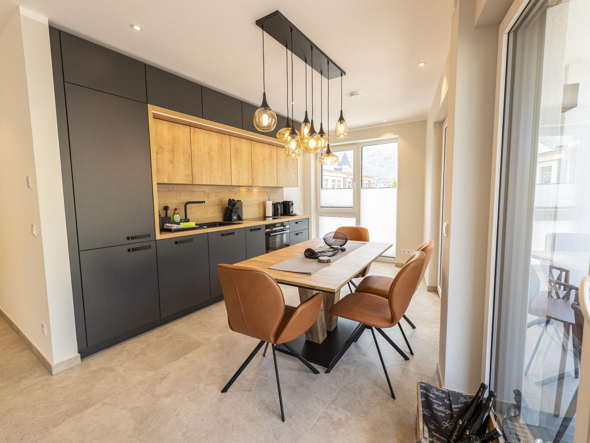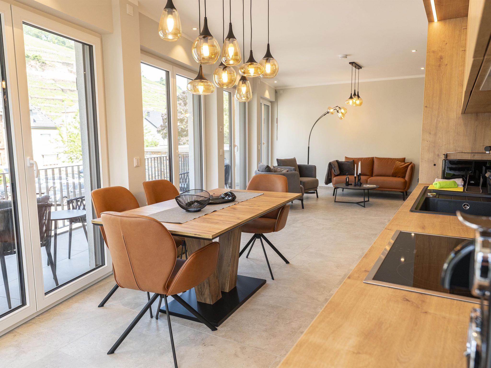 Das Apartment ist lichtdurchflutet, hochwertig ausgestattet und ideal für Familien, Paare, kleine Gruppen oder Geschäftsreisende. Genießen Sie Ihren Morgenkaffee auf dem Balkon mit Panorama-Aussicht – oder ein Glas unseres Ahrweins zum Sonnenuntergang.