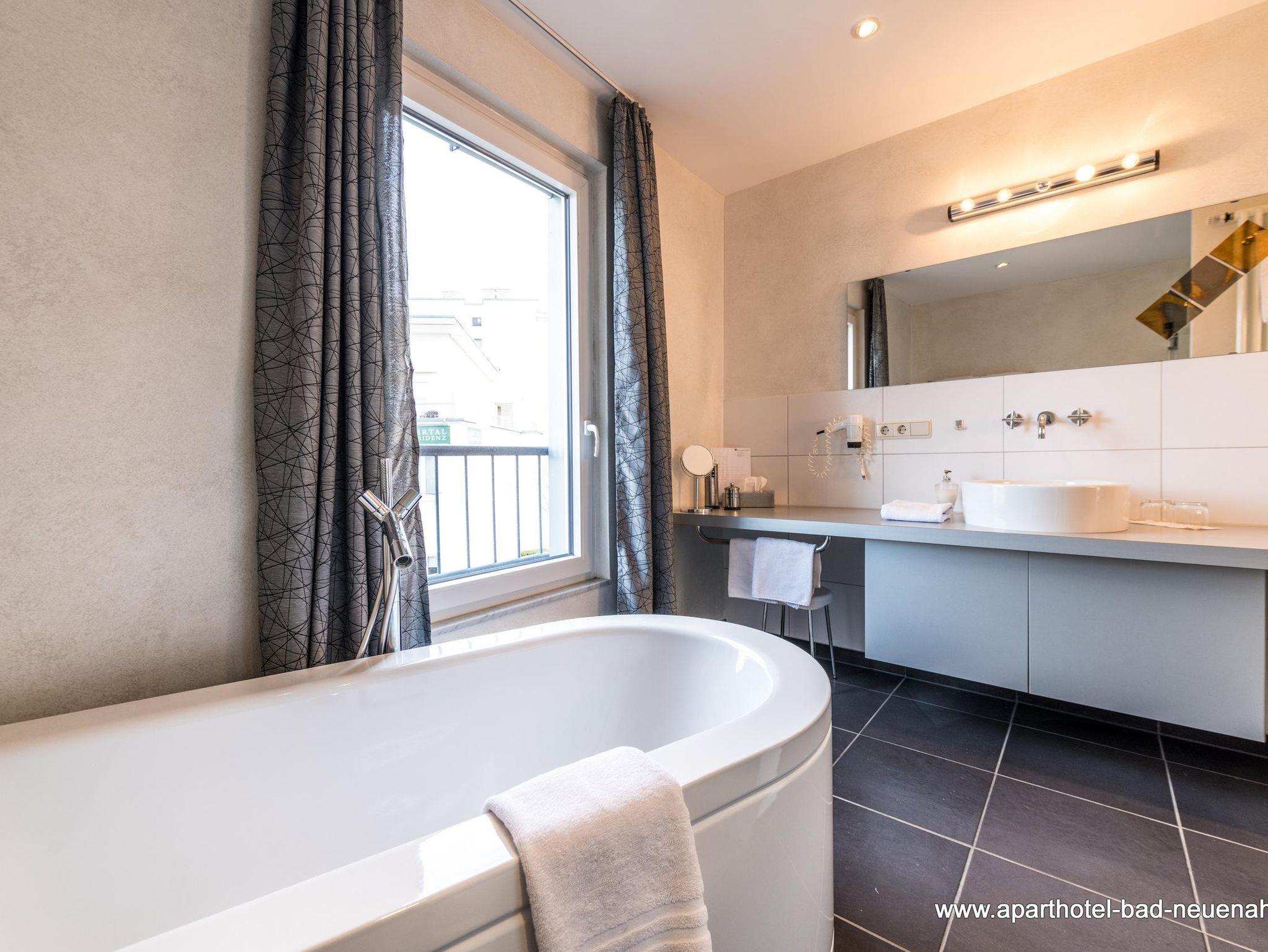 Stilvolles Badezimmer Das Badezimmer des Apartments Gloria ist ein echtes Highlight: Es bietet eine freistehende Badewanne für entspannende Momente und eine XXL-Erlebnisdusche für ein luxuriöses Duscherlebnis. Zusätzlich stehen Ihnen ein Fön, ein Kosmetikspiegel, Handtücher und Duschgel sowie ausreichend Ablagefläche zur Verfügung.